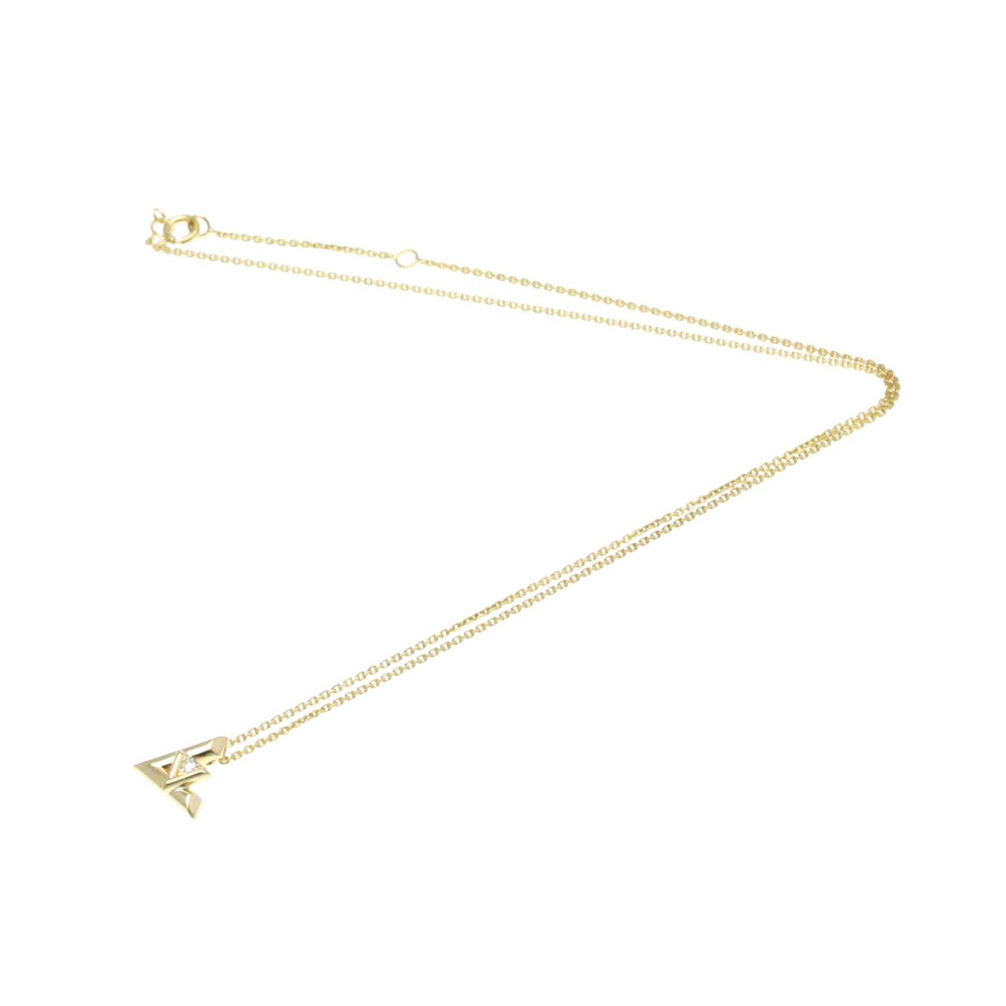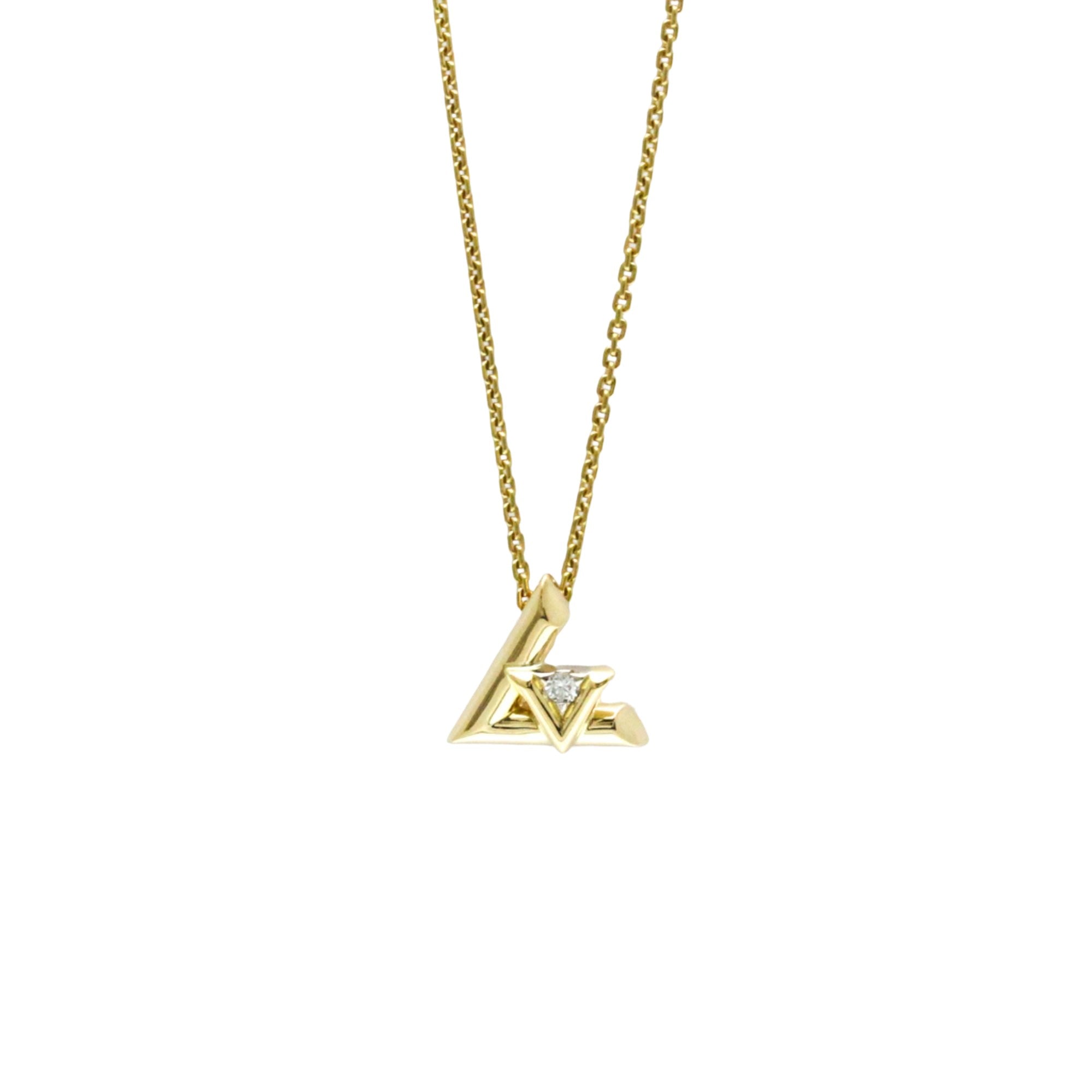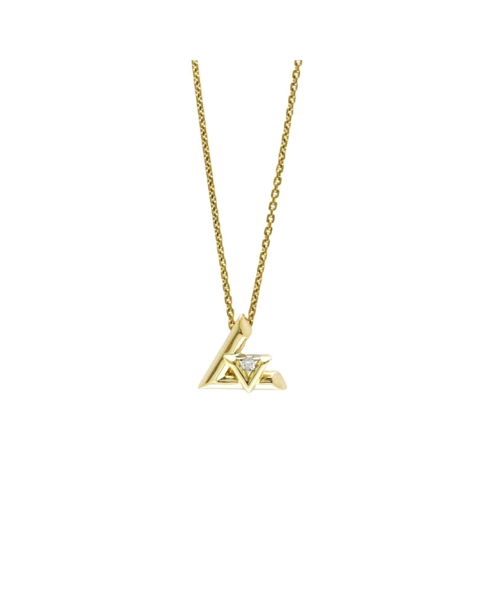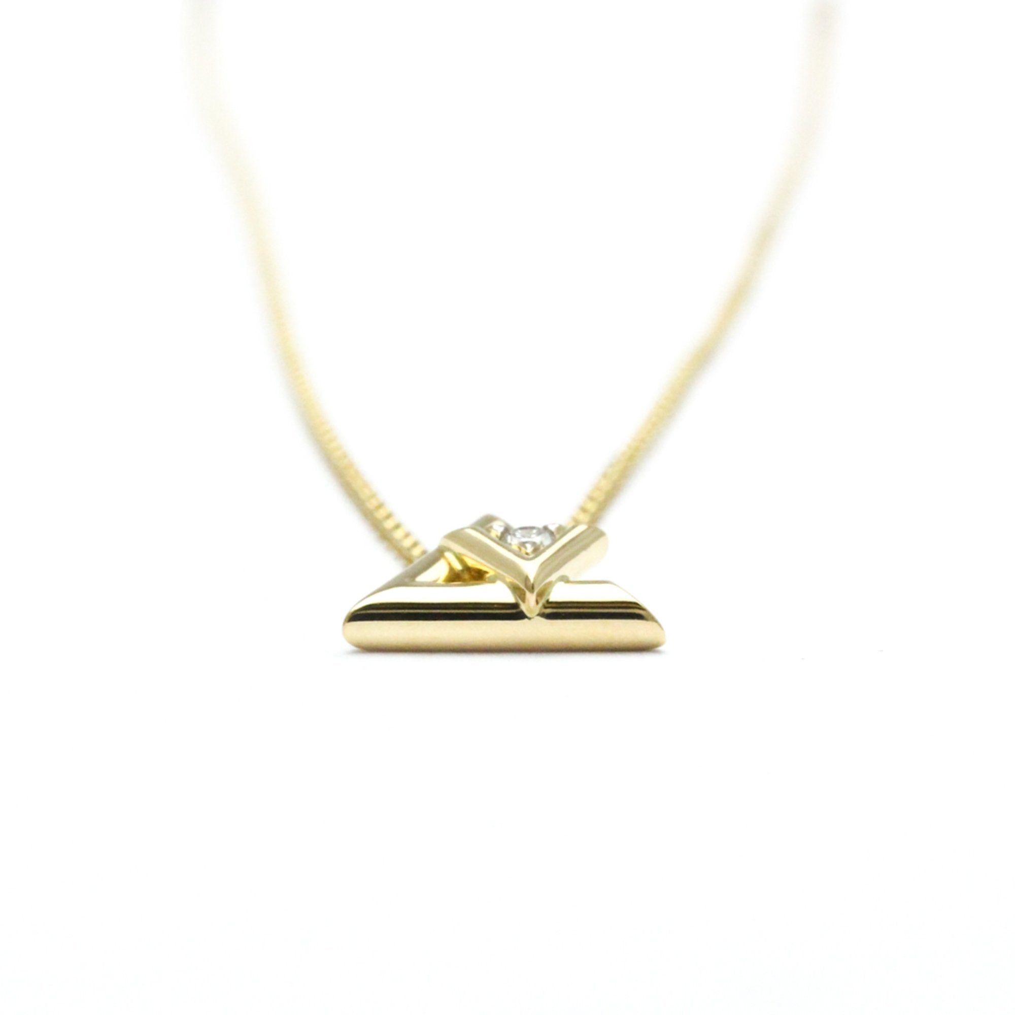 Brand: Louis Vuitton Model: LV volt one Color: Gold Material: Yellow Gold Inclusions: Box Case Dimensions: Weight (ct.) 0.03 Size Weight 5.5g Neck Circumference 42 cm - 45 cm Pendant Size 11.8mm x 12.5mm Serial number: D13600 Country of origin: France Condition: AB - good condition. The Louis Vuitton LV Volt One Small Pendant Necklace originating from France embodies fashion-forward luxury in its pendant design crafted from 18K yellow gold adorned with a sparkling diamond weighing 0.03 carats. Suitable for both men and women this necklace exudes elegance and style.  It has slight scratches. We recommend that you look at all the pictures before making your purchase to ensure that you are satisfied with the condition of the item.