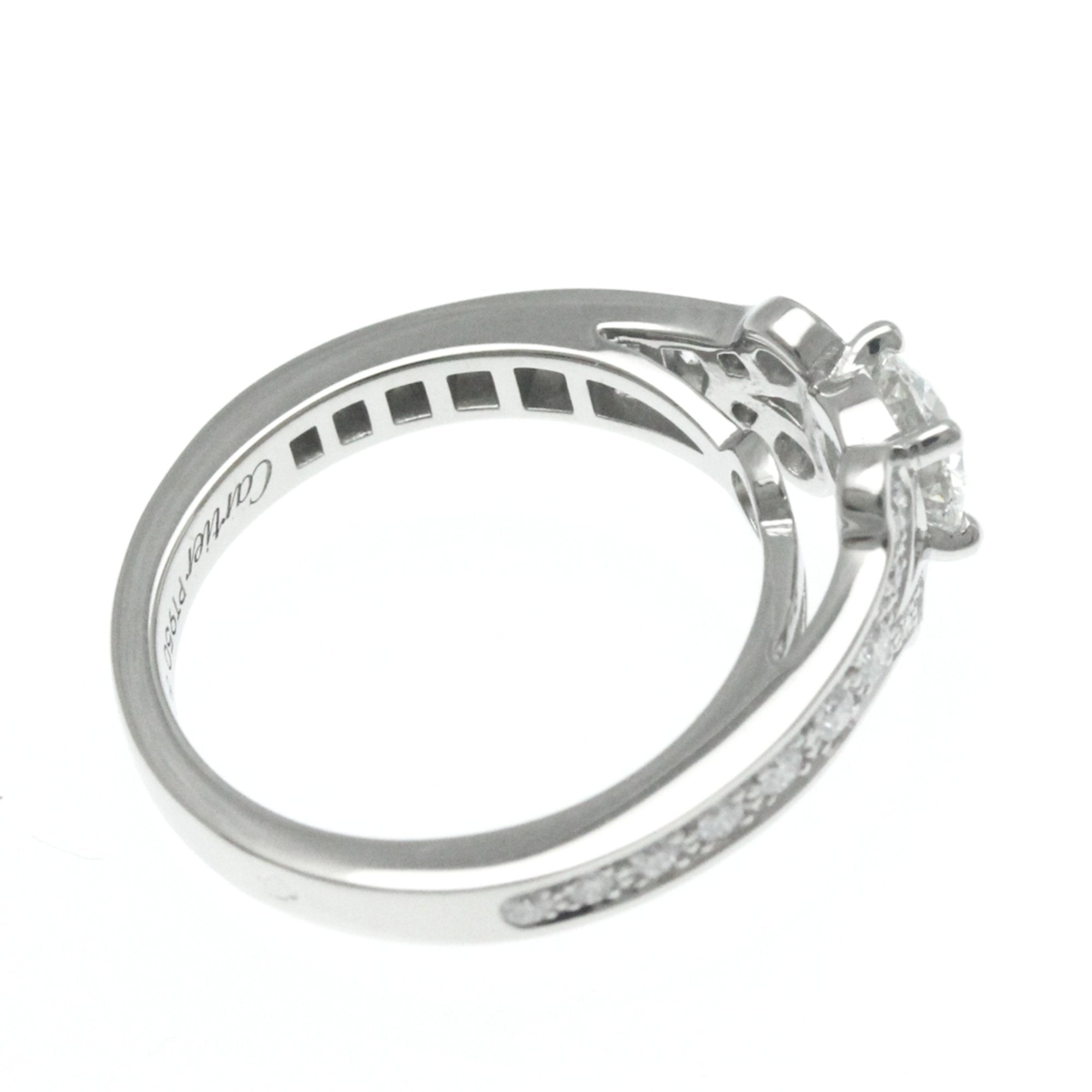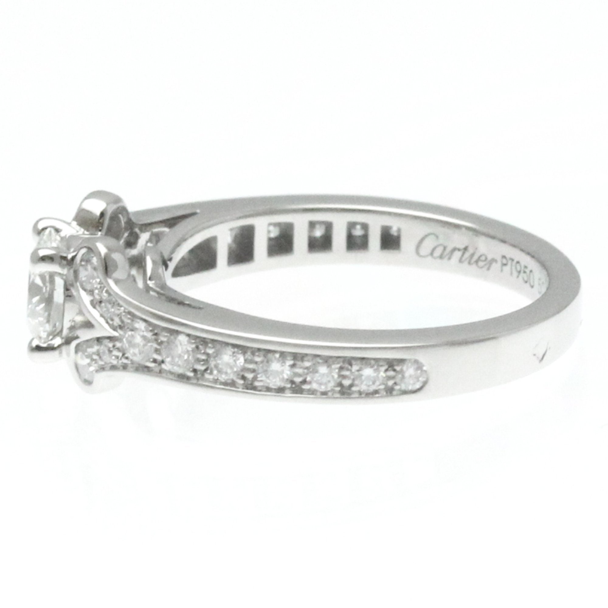 The Cartier Ballerina Band Ring is a chic and stylish accessory designed for women. Crafted from luxurious platinum and adorned with shimmering diamonds it exudes elegance and sophistication. The sleek silver color adds a touch of modern flair to any ensemble making it a perfect choice for fashion-forward individuals.