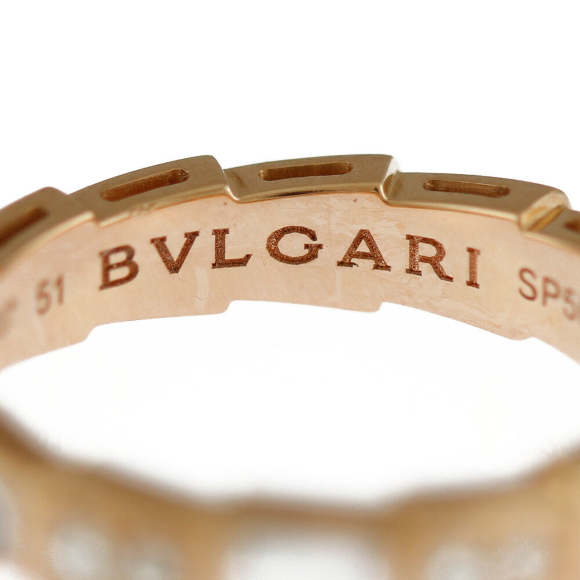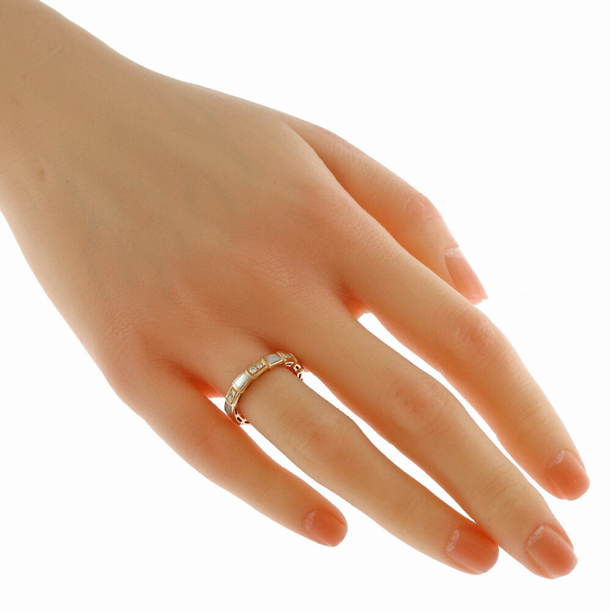 Captivating 18K Rose Gold Serpenti Viper Band Ring with Diamonds and Shell Accents