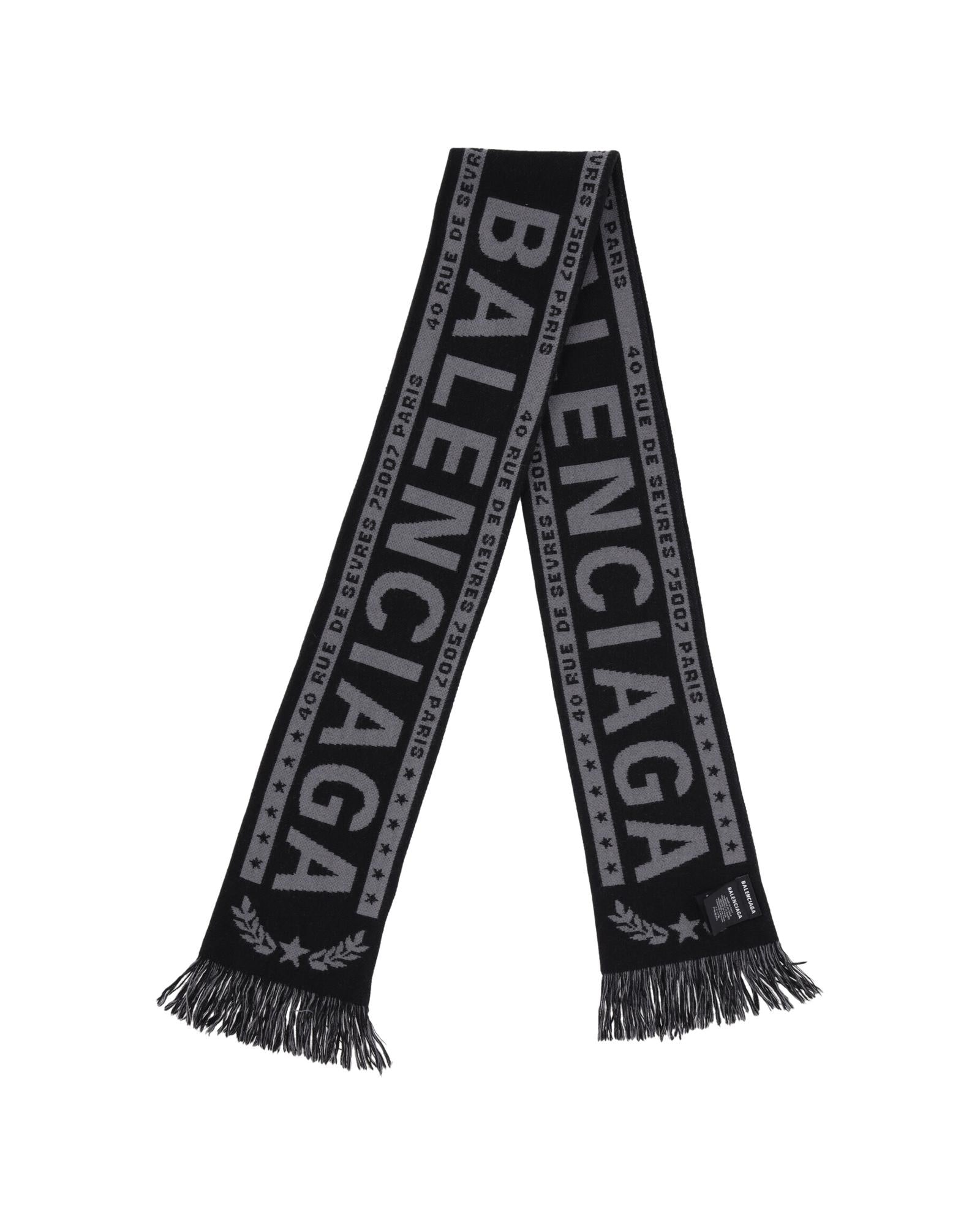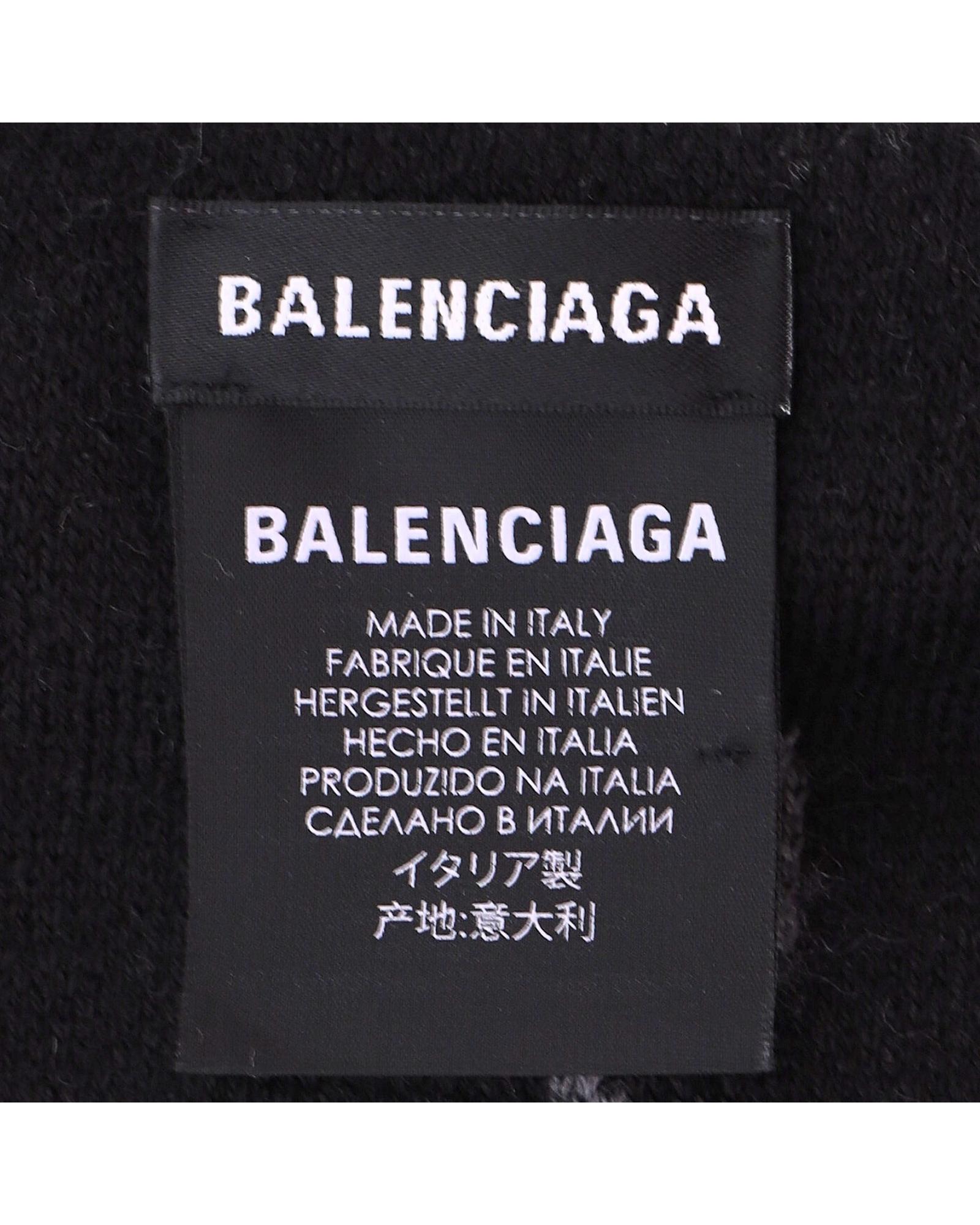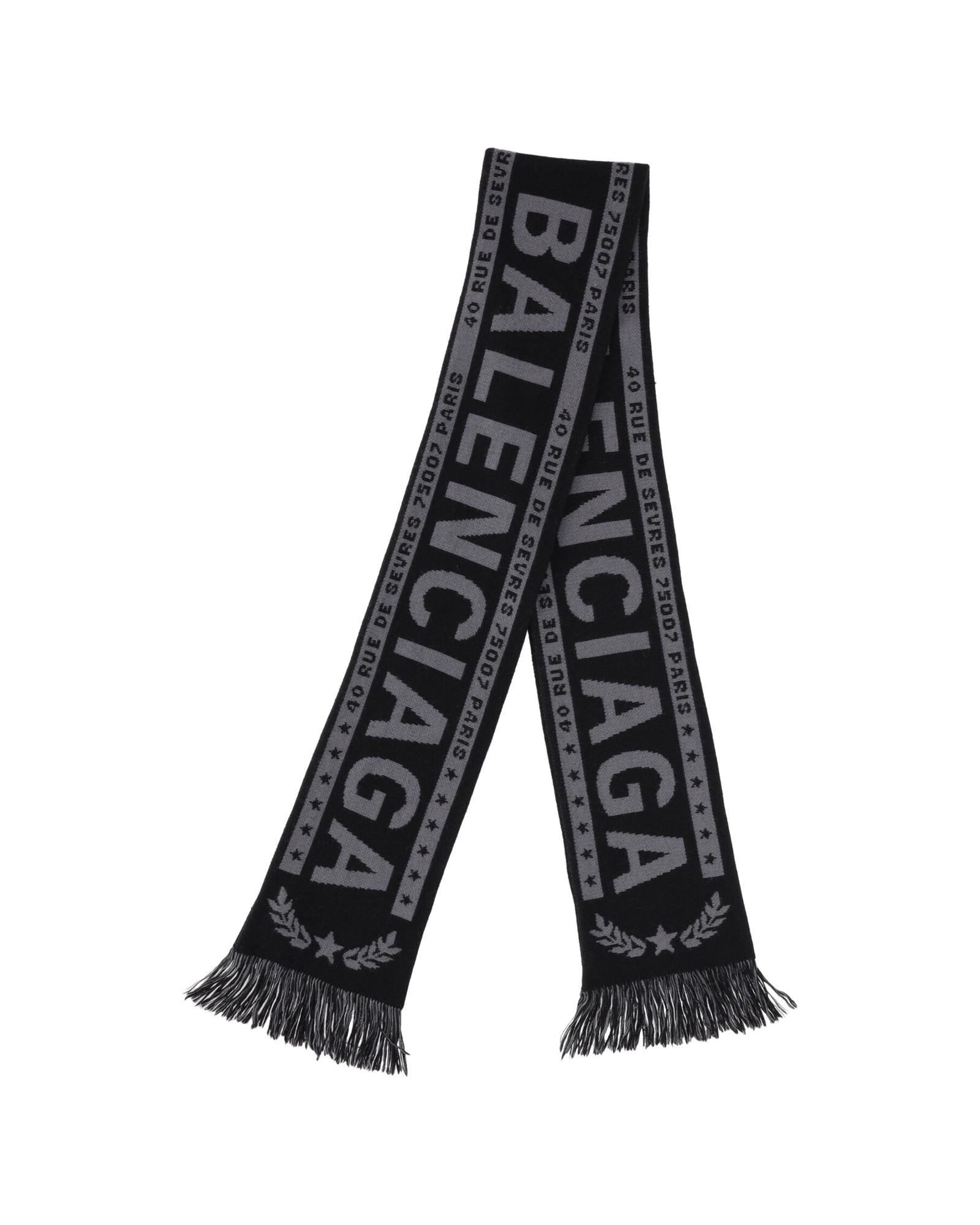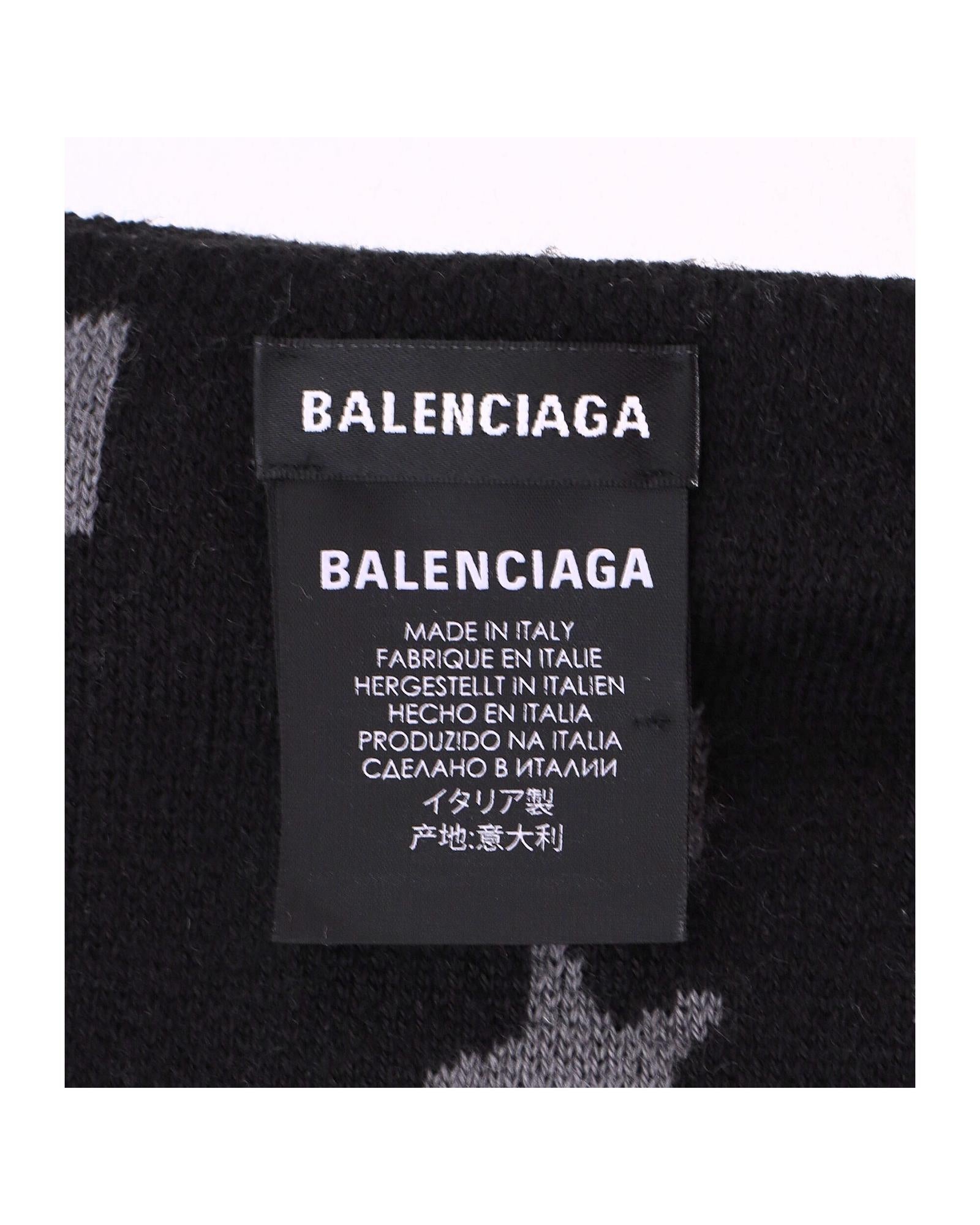 - Balenciaga Logo Fringed Scarf in Grey and Black Wool
