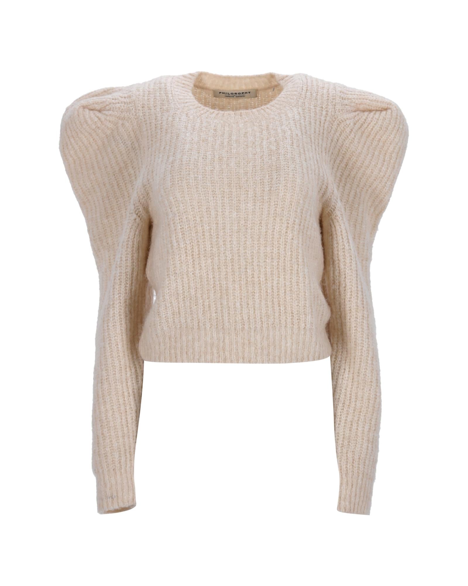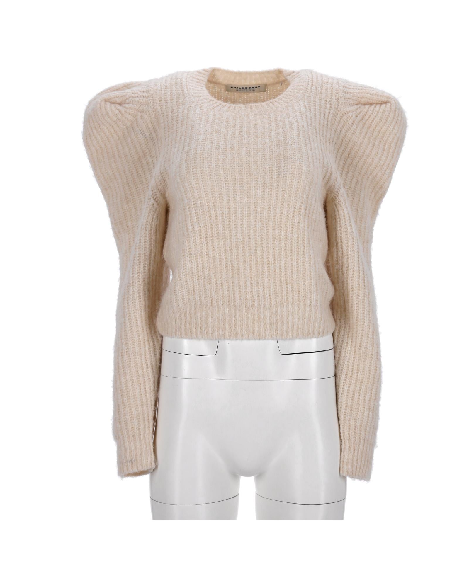 - Philosophy di Lorenzo Serafini Ribbed Knit Cropped Pullover In Cream Acrylic