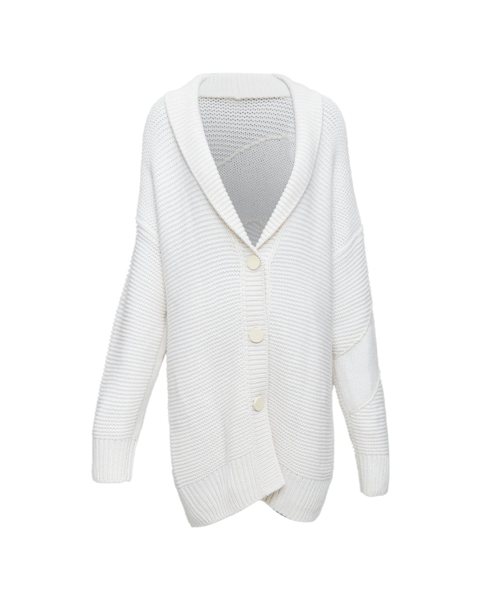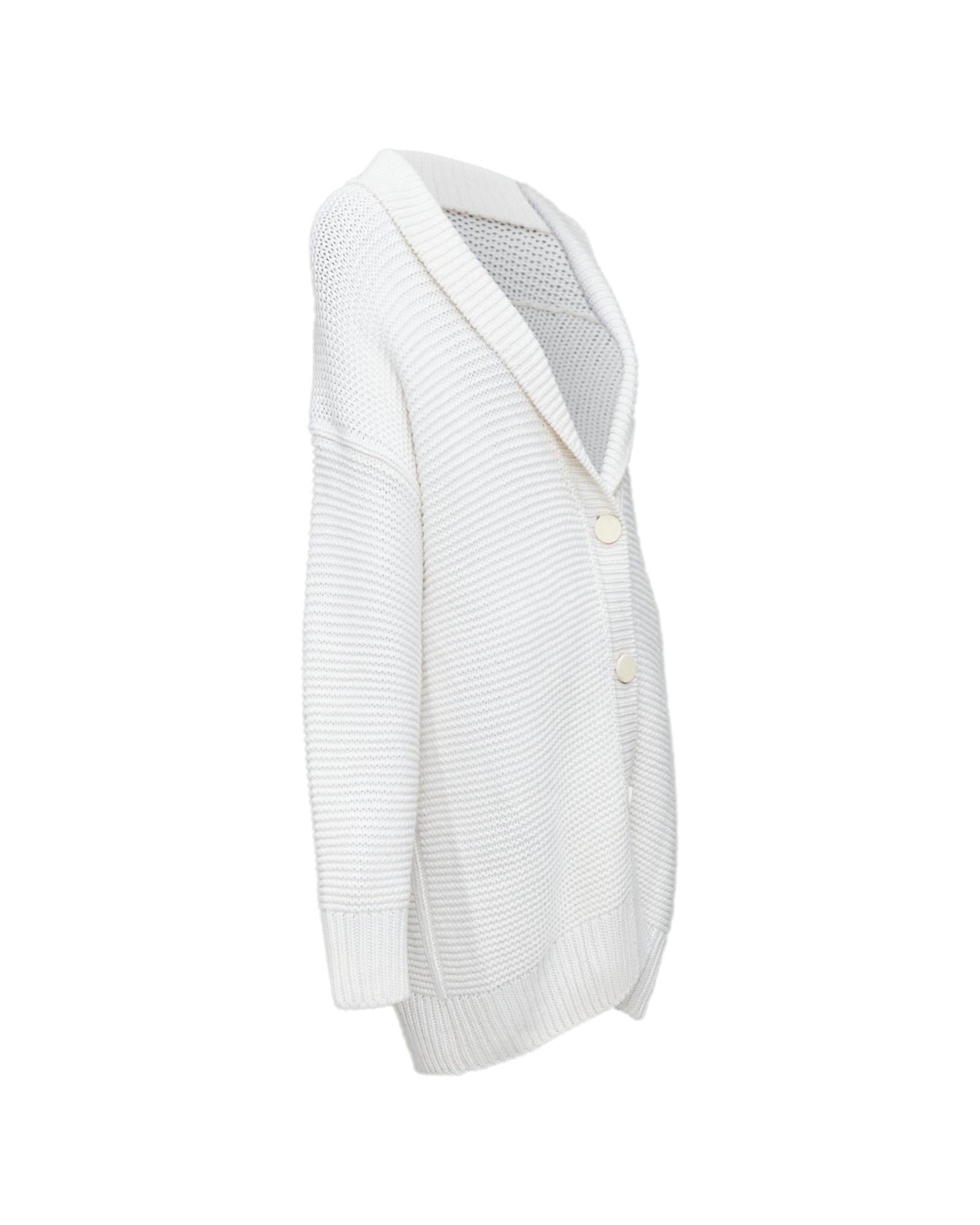 Pre-owned Relaxed Fit Knit Cardigan with Shawl Collar and Button Closure