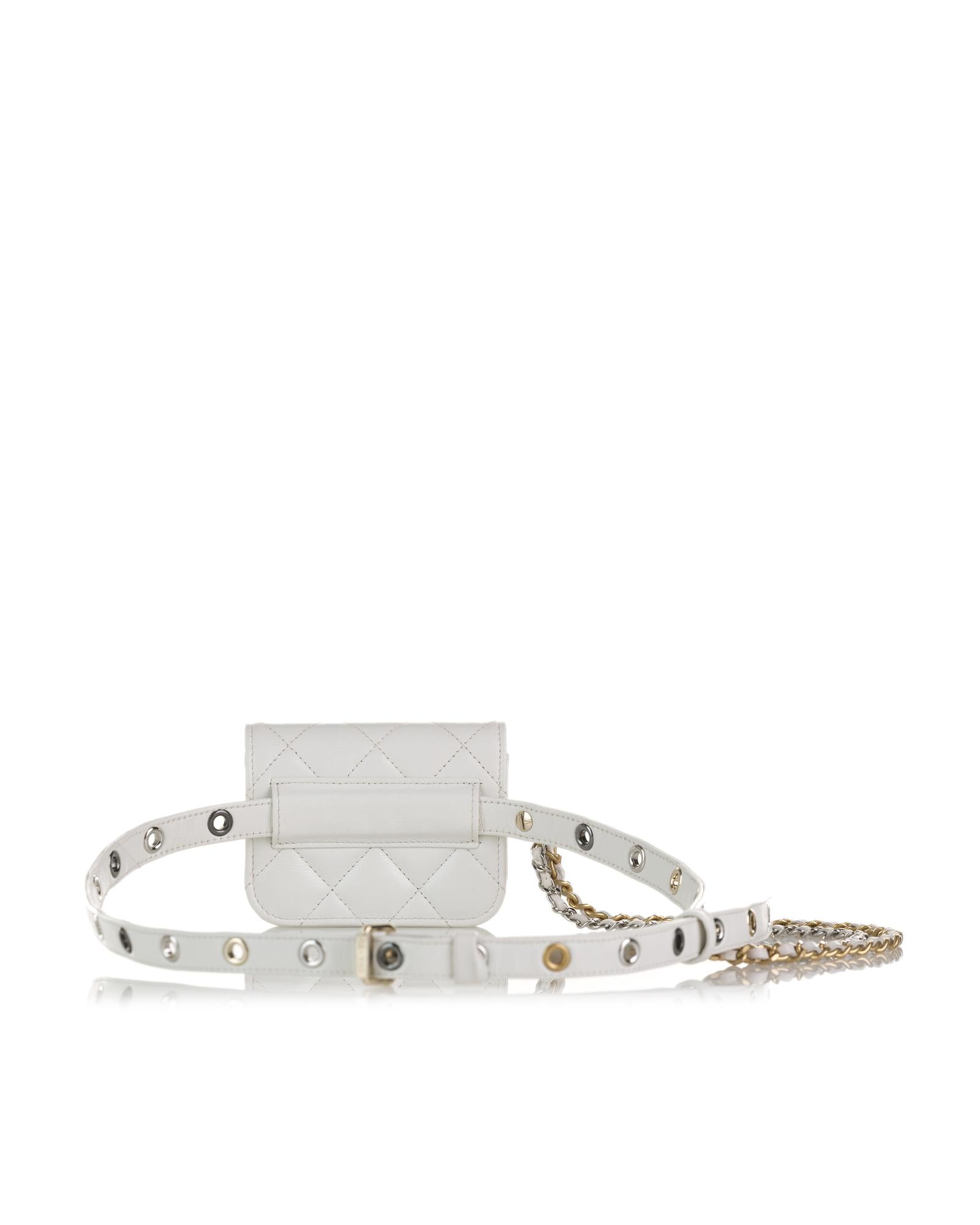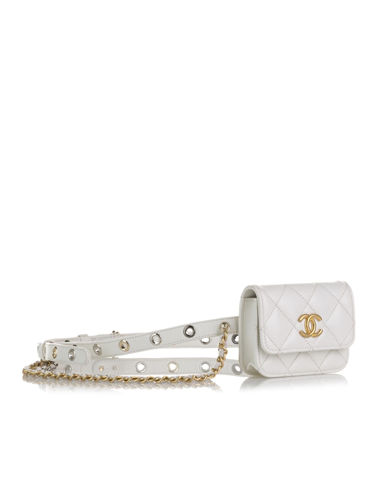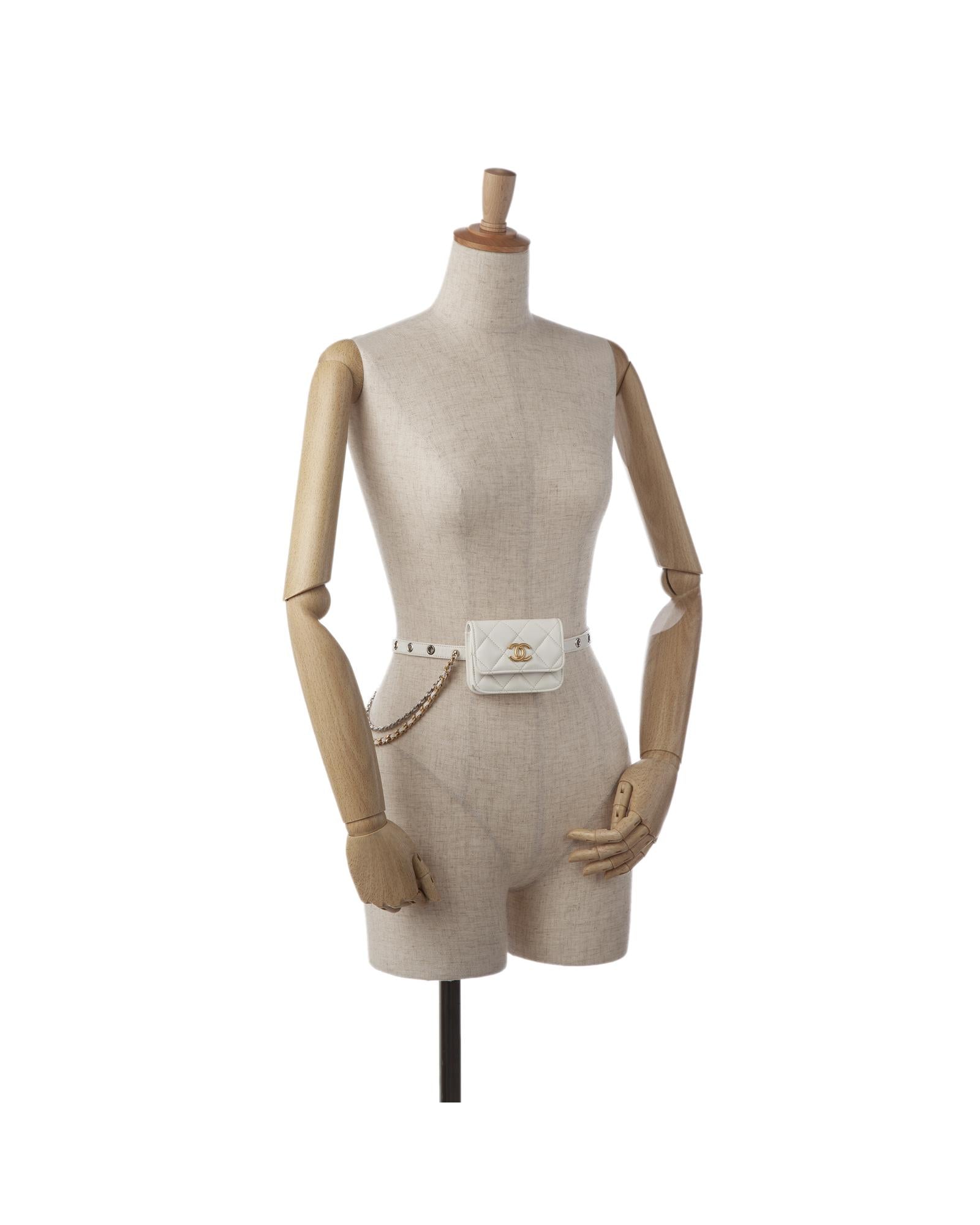 Chanel Mini Flap Belt Bag White Lambskin Leather