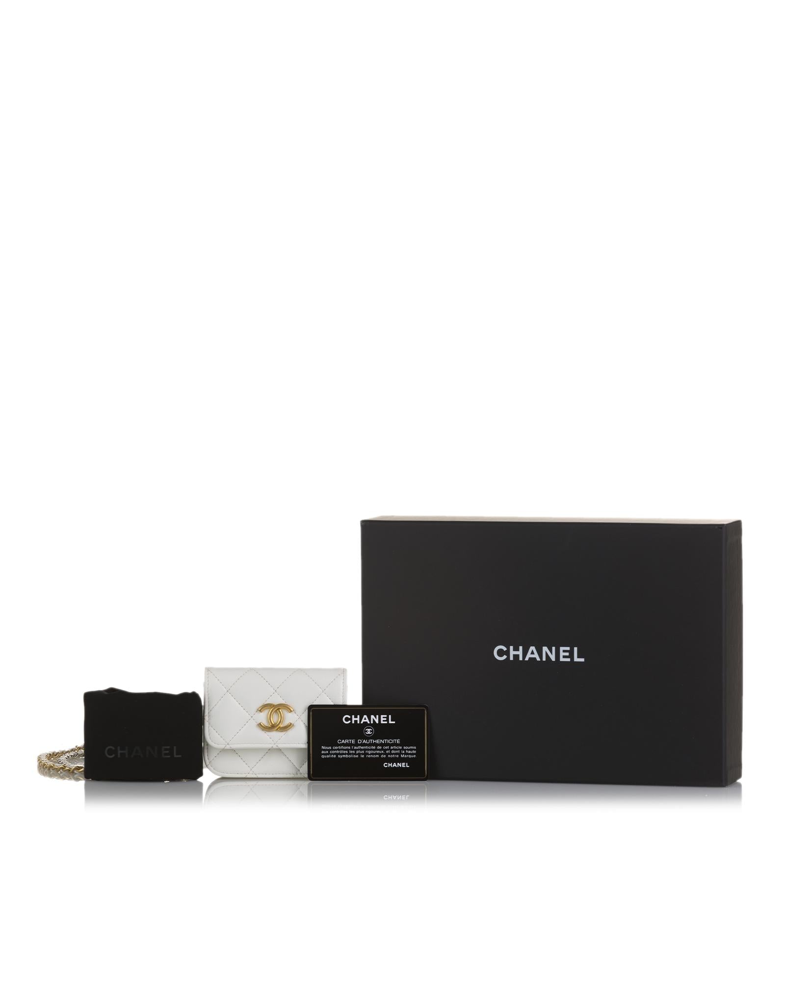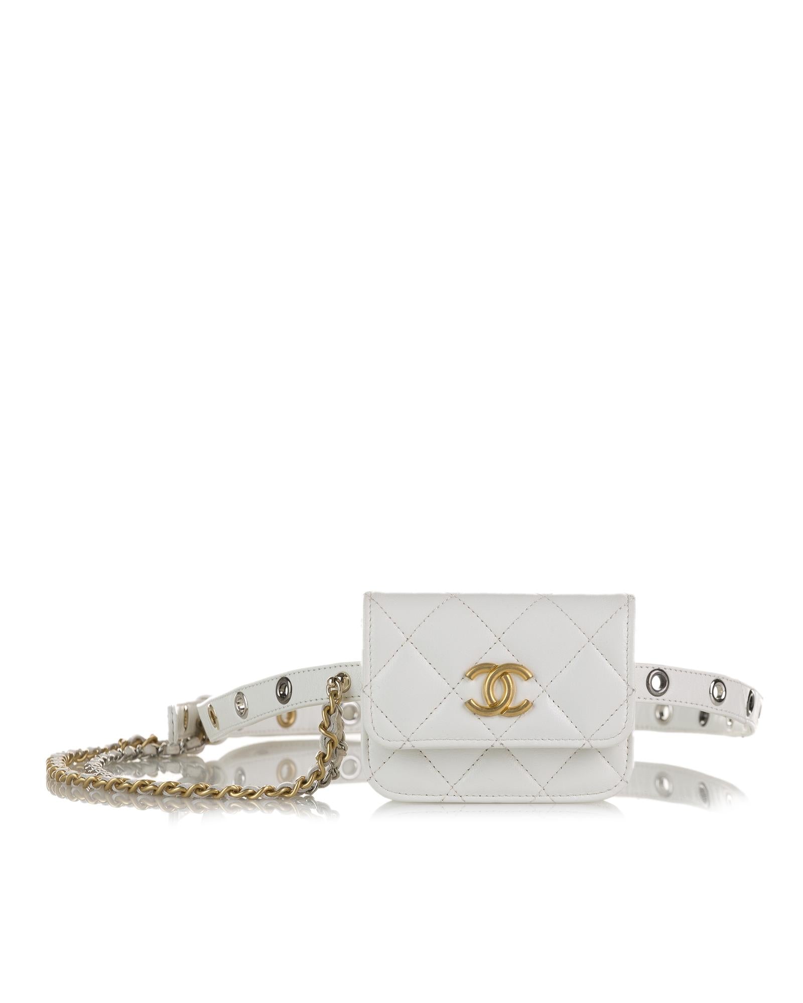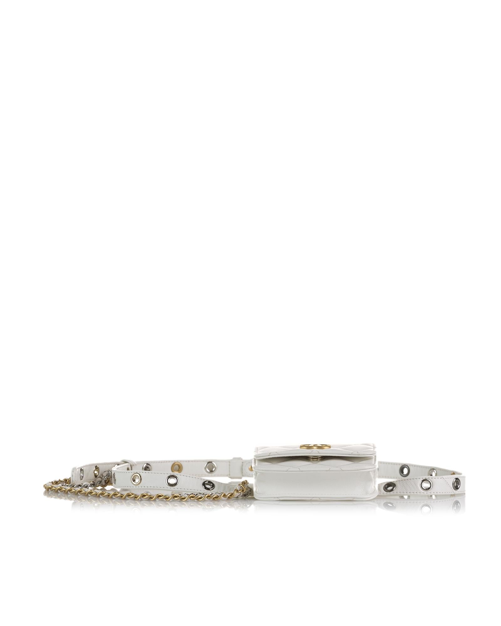 Chanel Mini Flap Belt Bag White Lambskin Leather