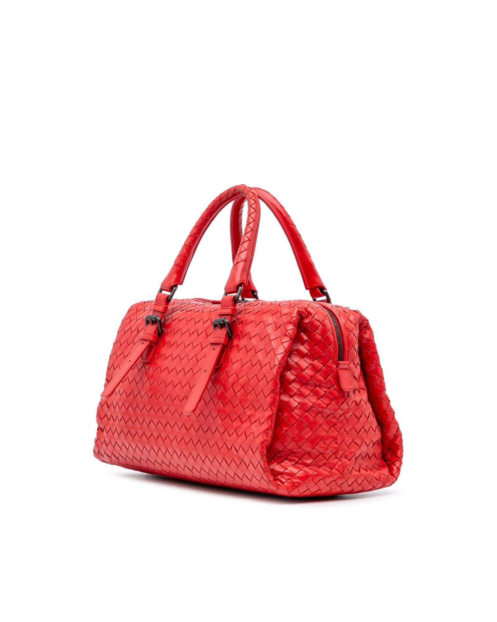 Woven Nappa Leather Boston Bag with Adjustable Handles and Interior Zip Pocket