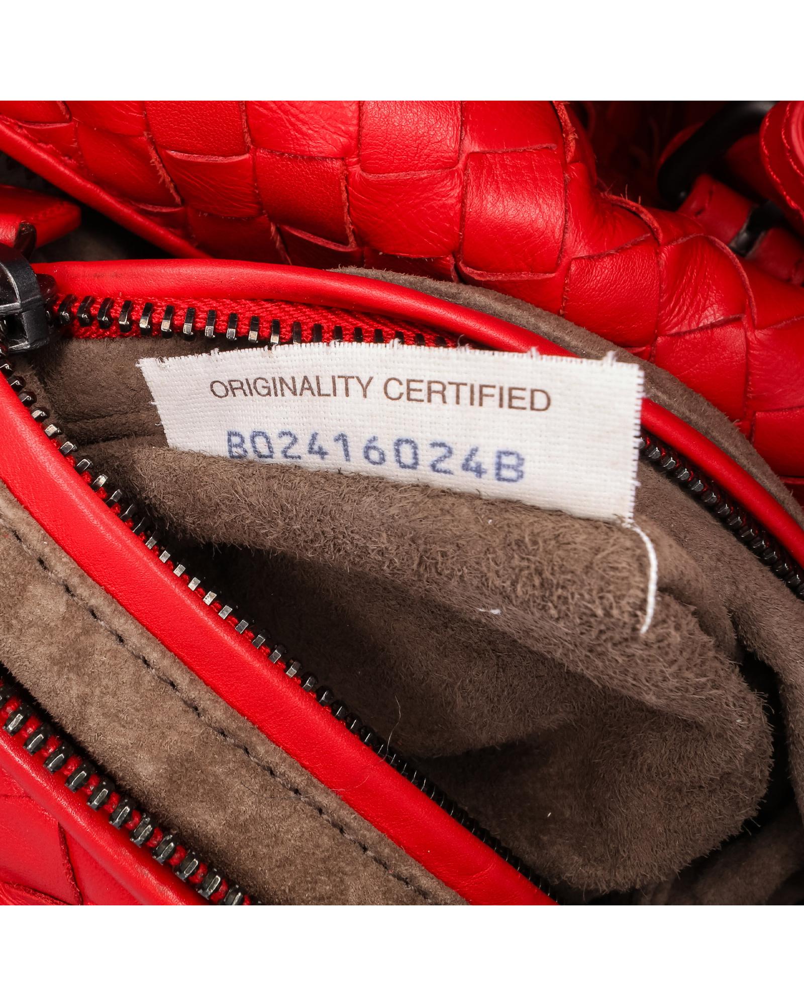 This boston bag features a woven nappa leather body adjustable rolled leather handles a top zip closure and an interior zip pocket.Brand: Bottega Veneta