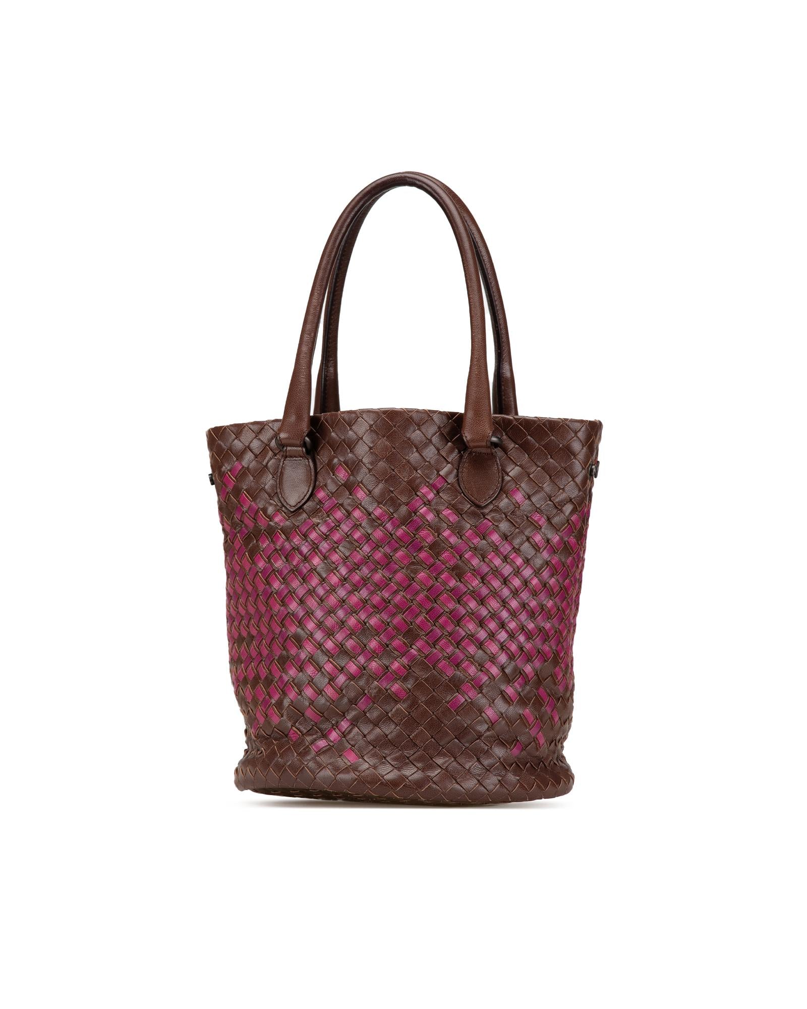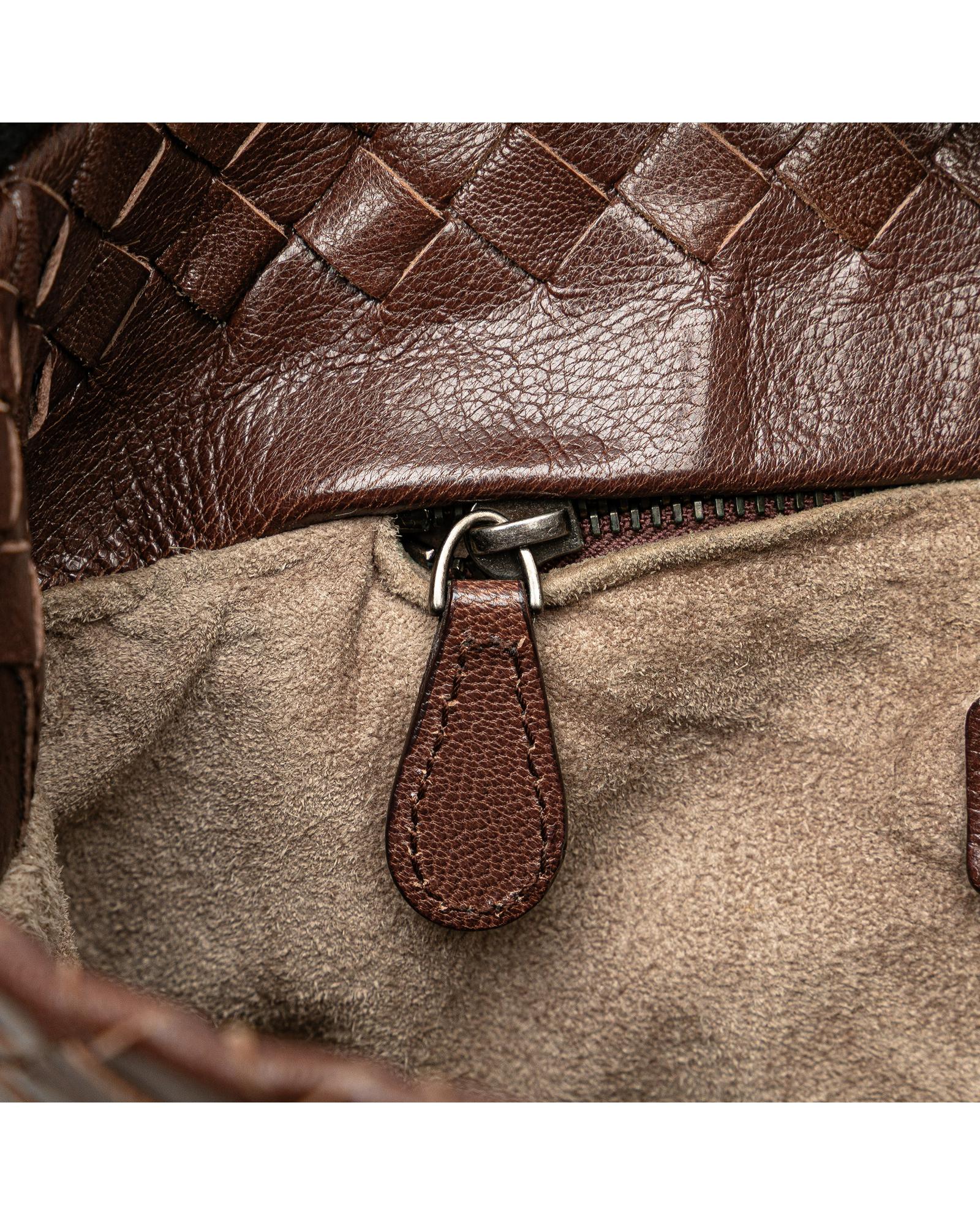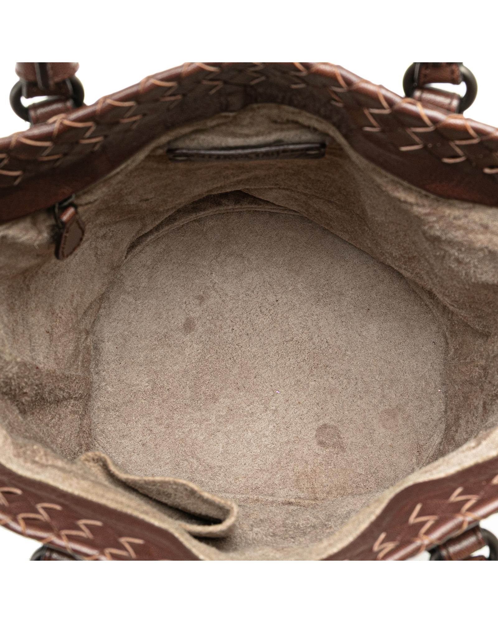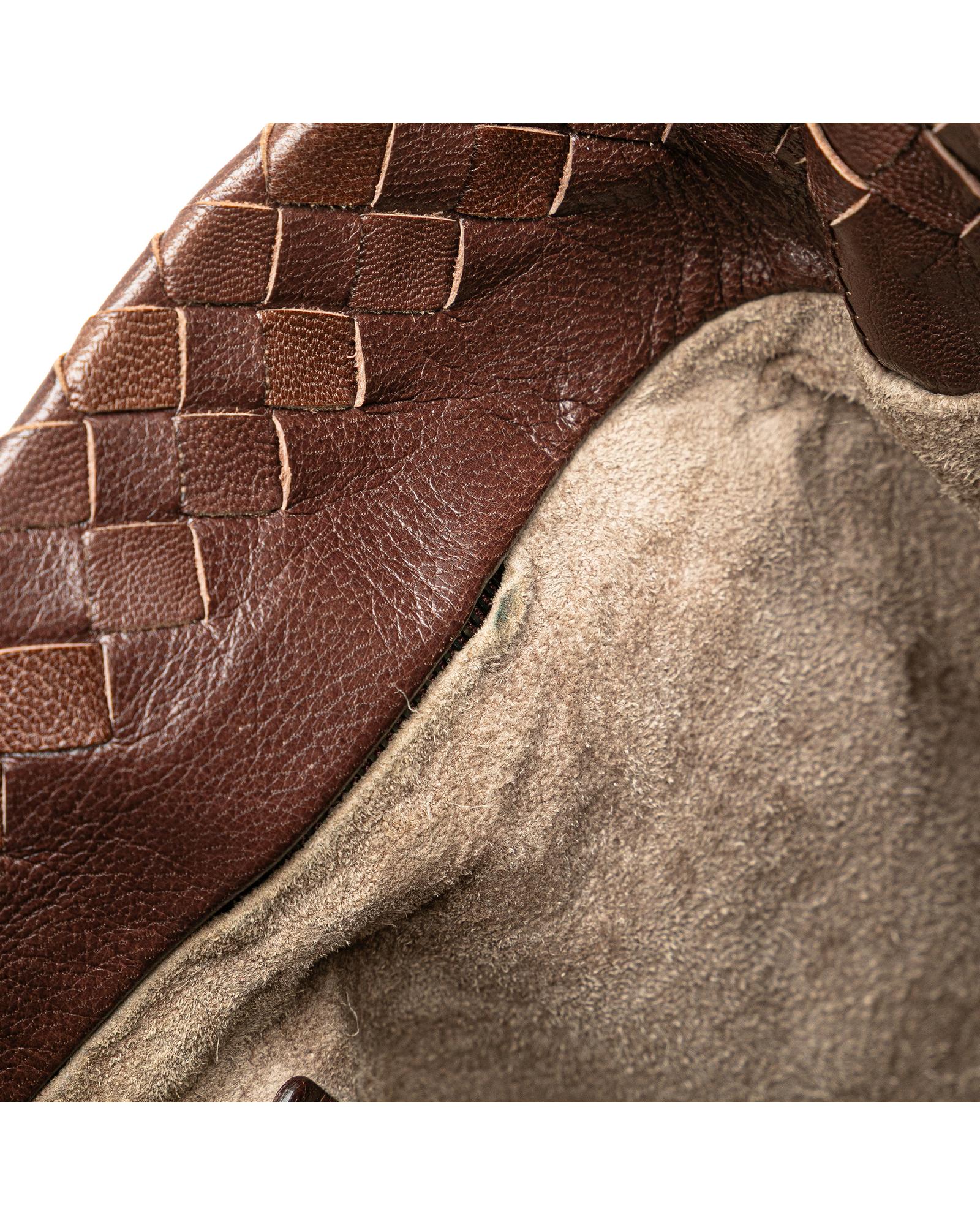 This bucket bag features a woven leather body rolled leather handles an open top and interior zip and slip pockets.Brand: Bottega Veneta