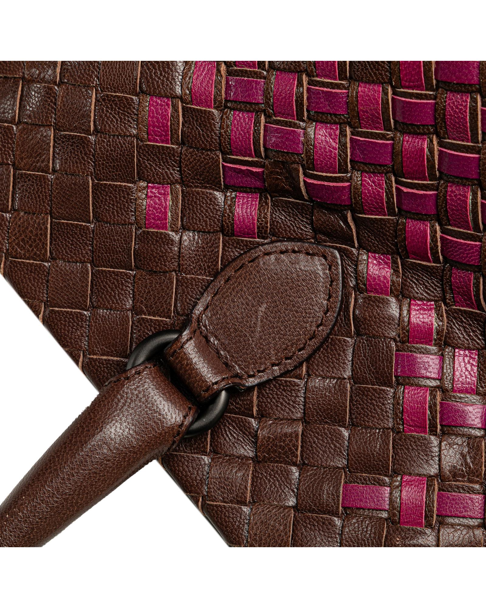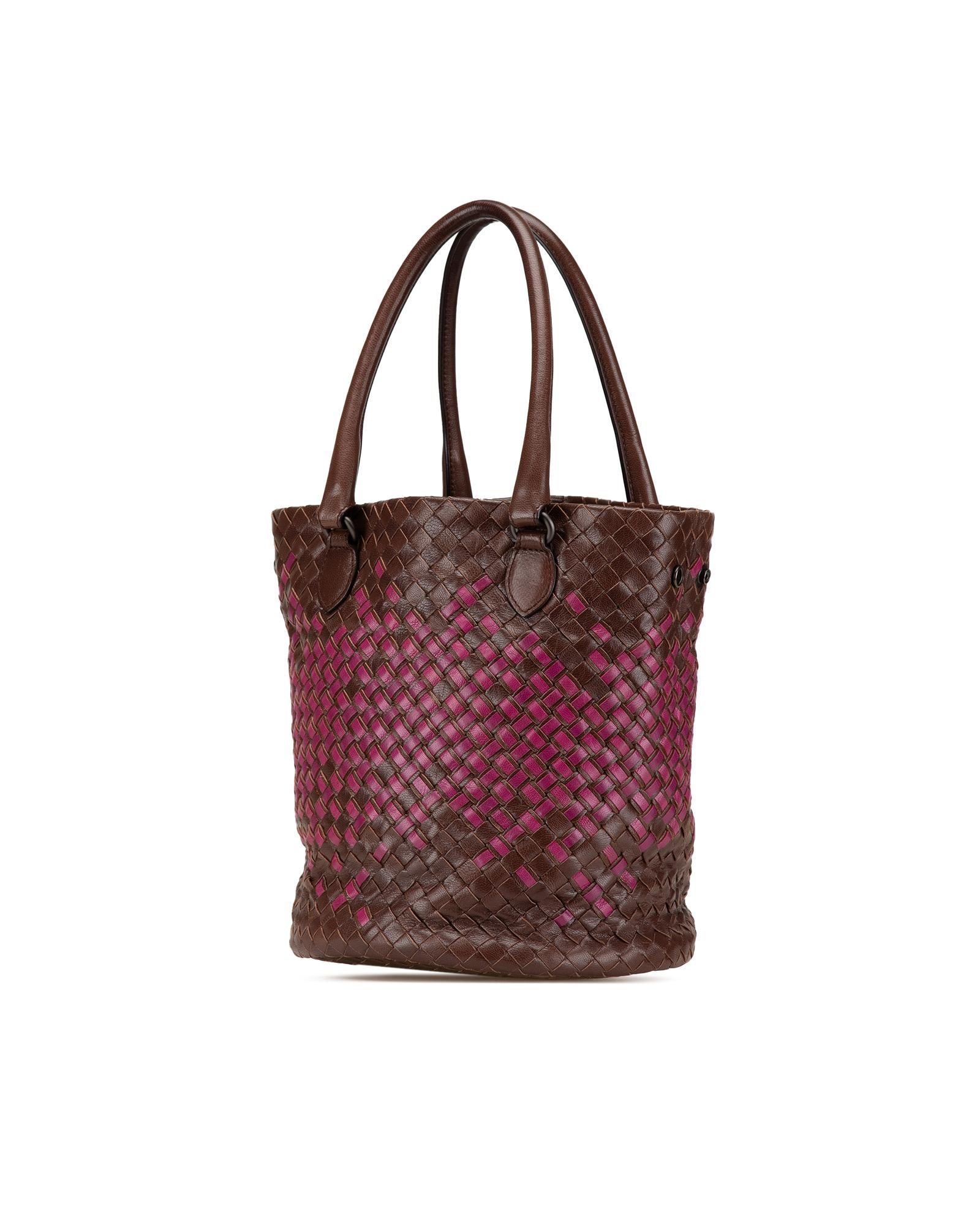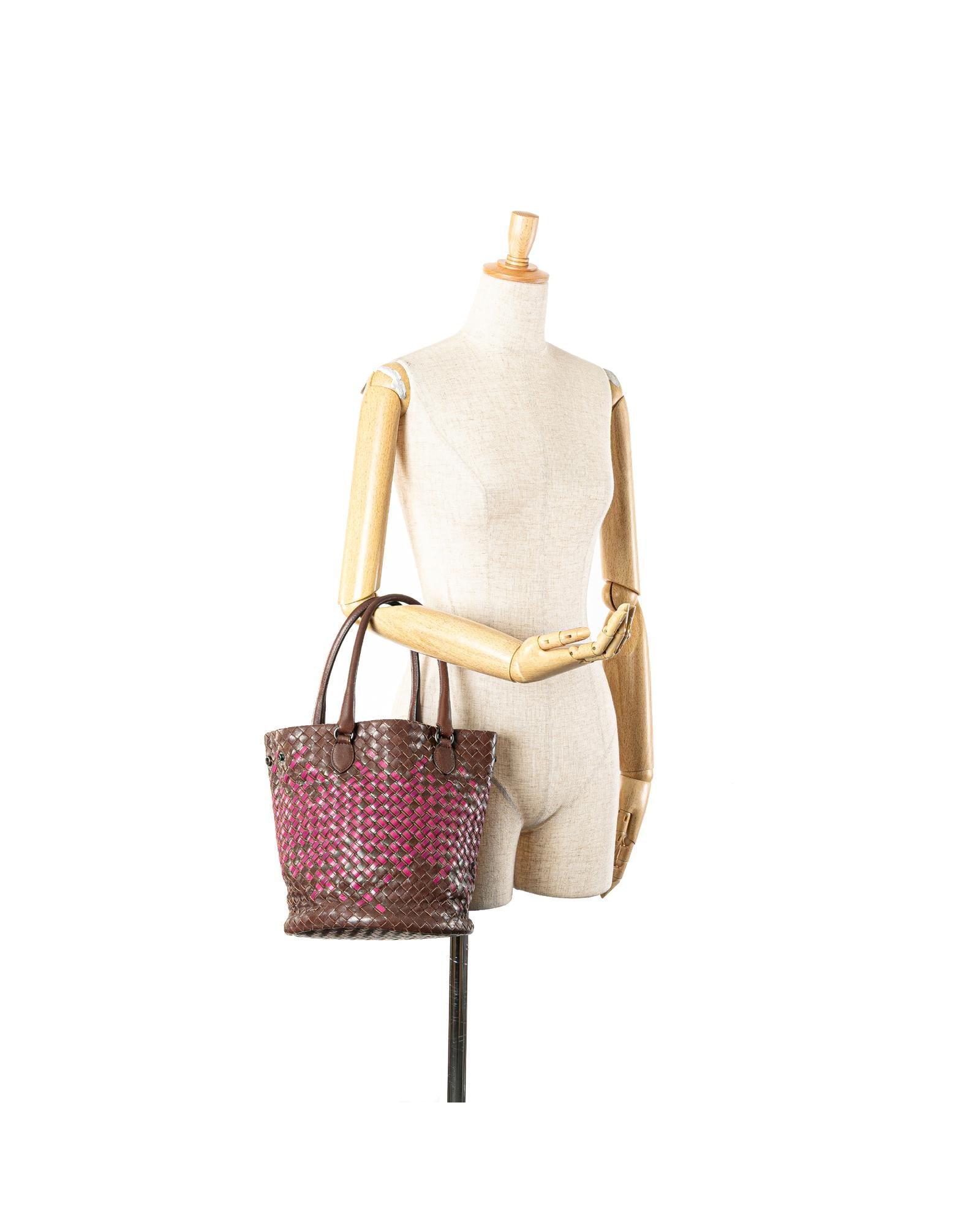 Woven Leather Nappa Bucket Bag with Rolled Handles
