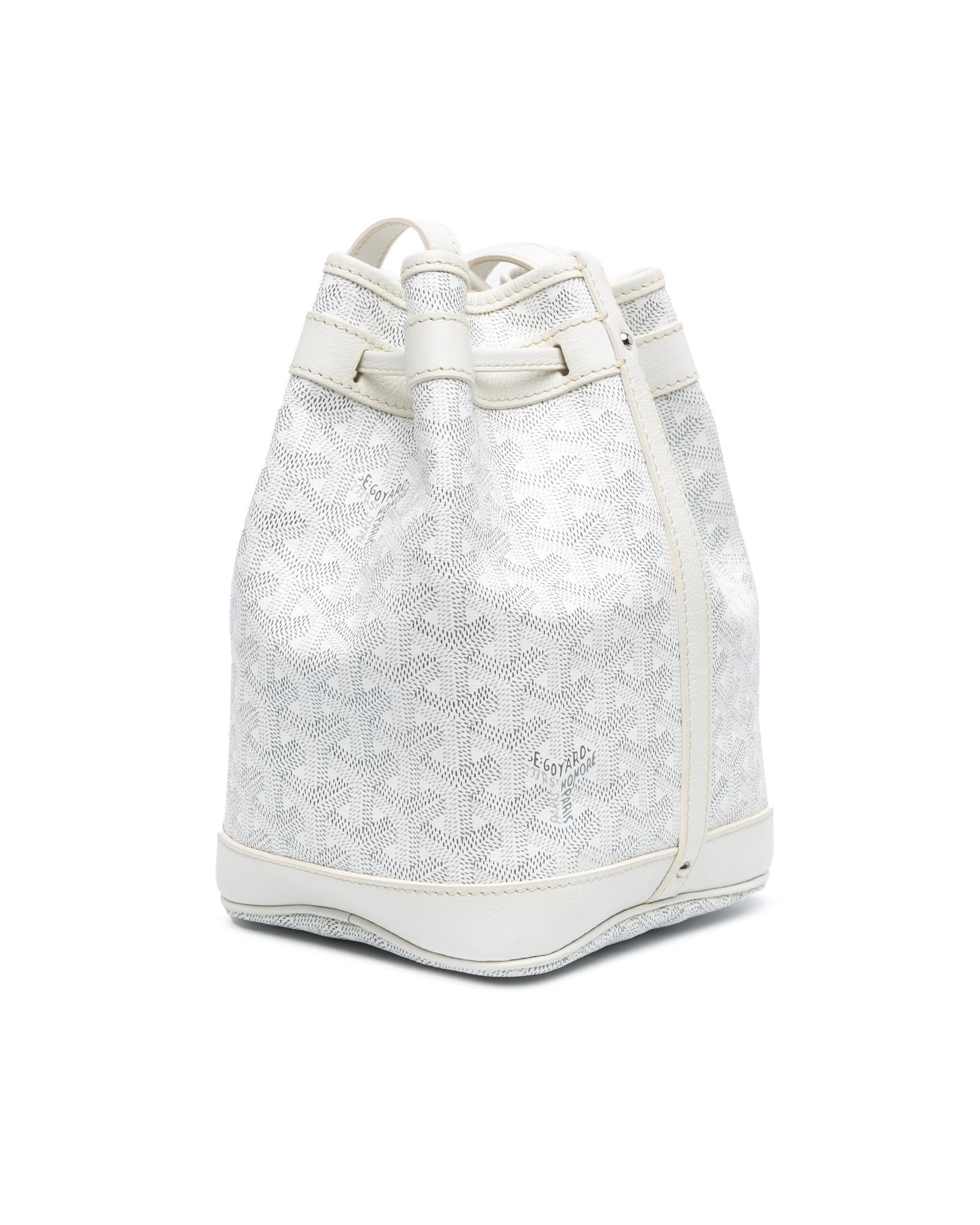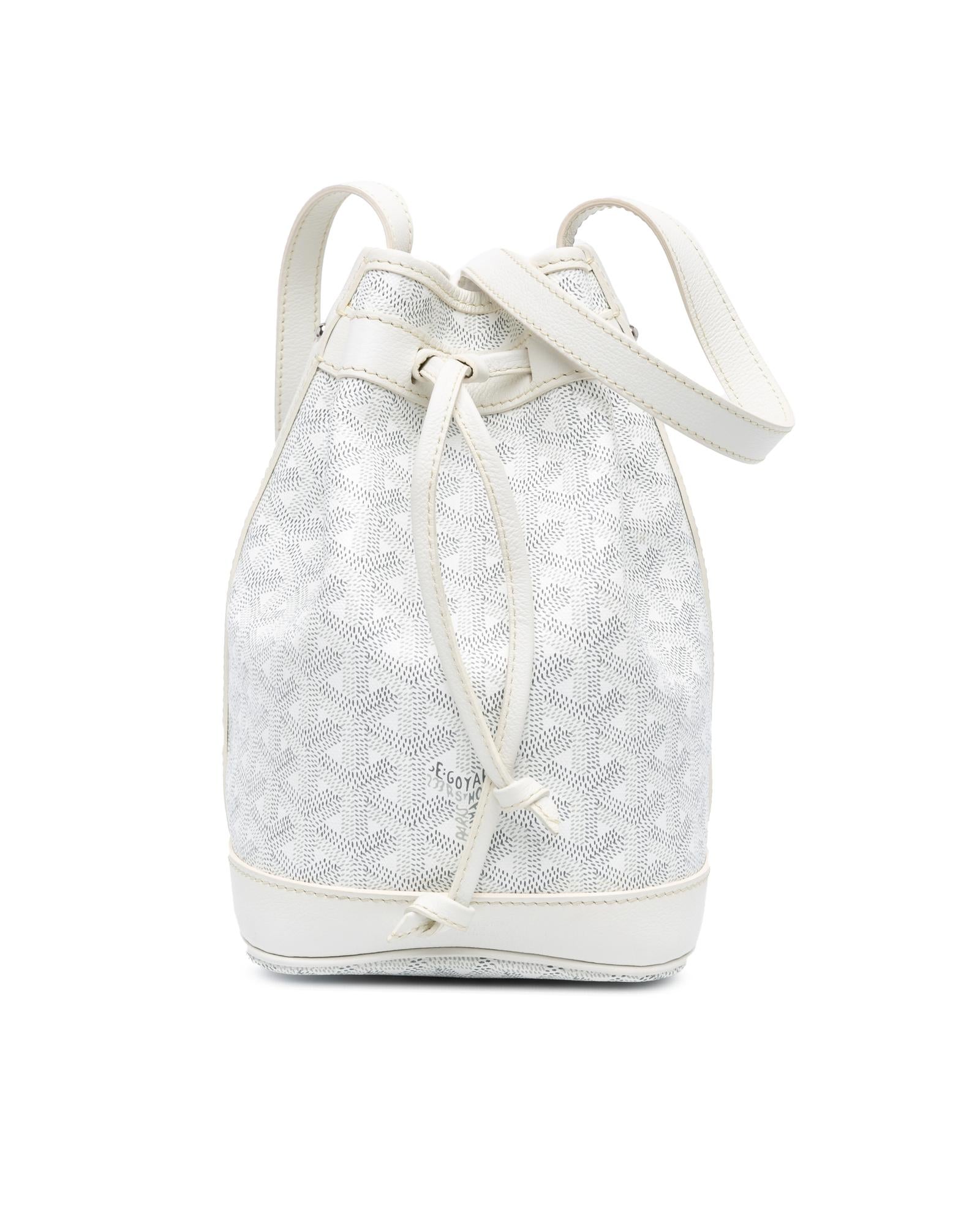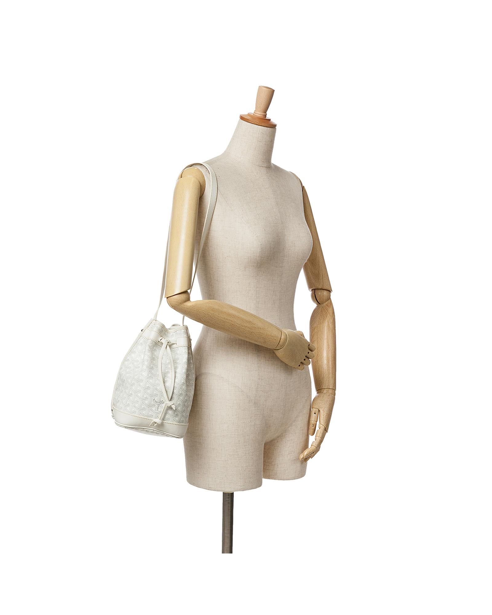 The Petit Flot bucket bag features a coated canvas body with leather trim a flat leather strap and an open top with a drawstring closure.Brand: Goyard