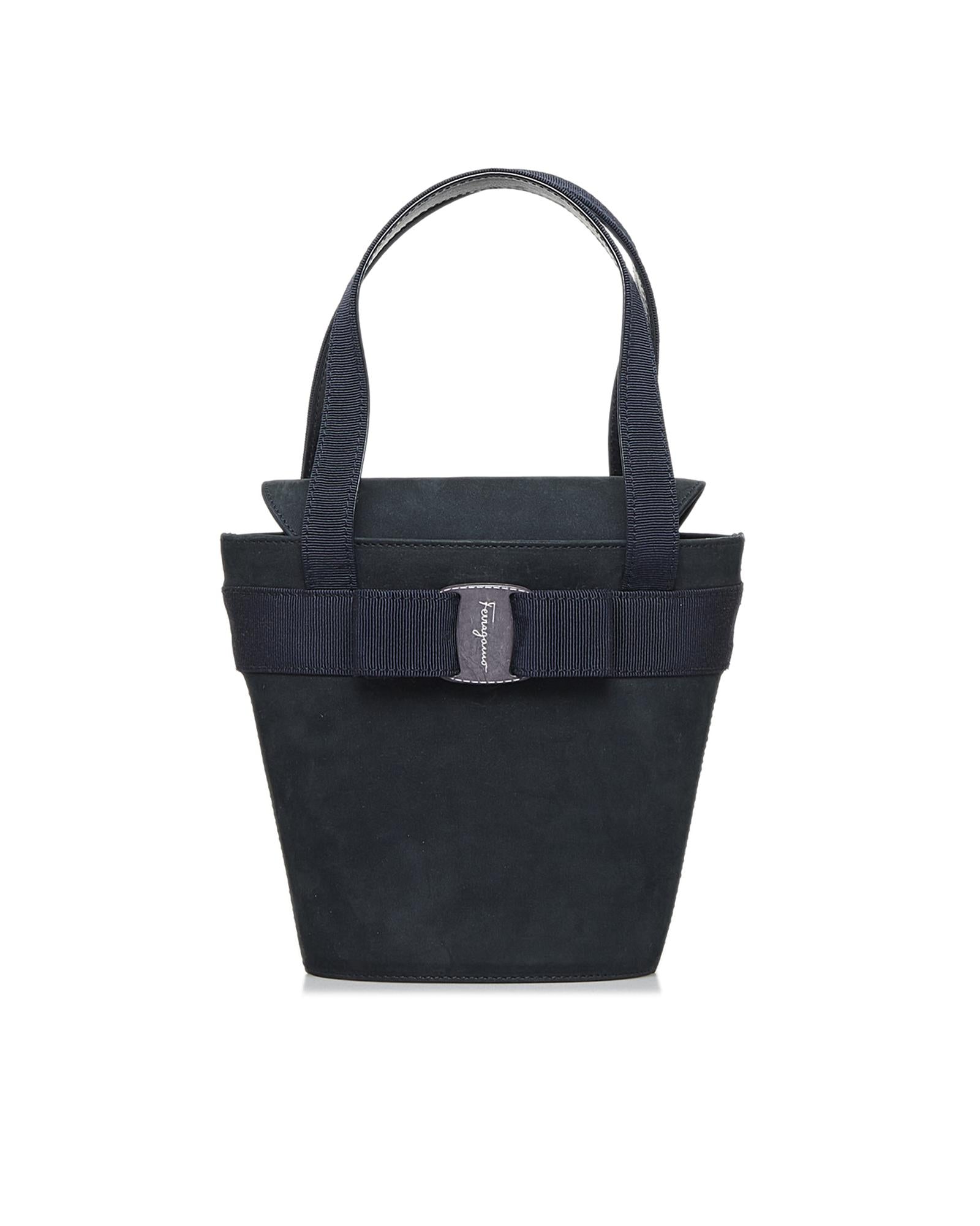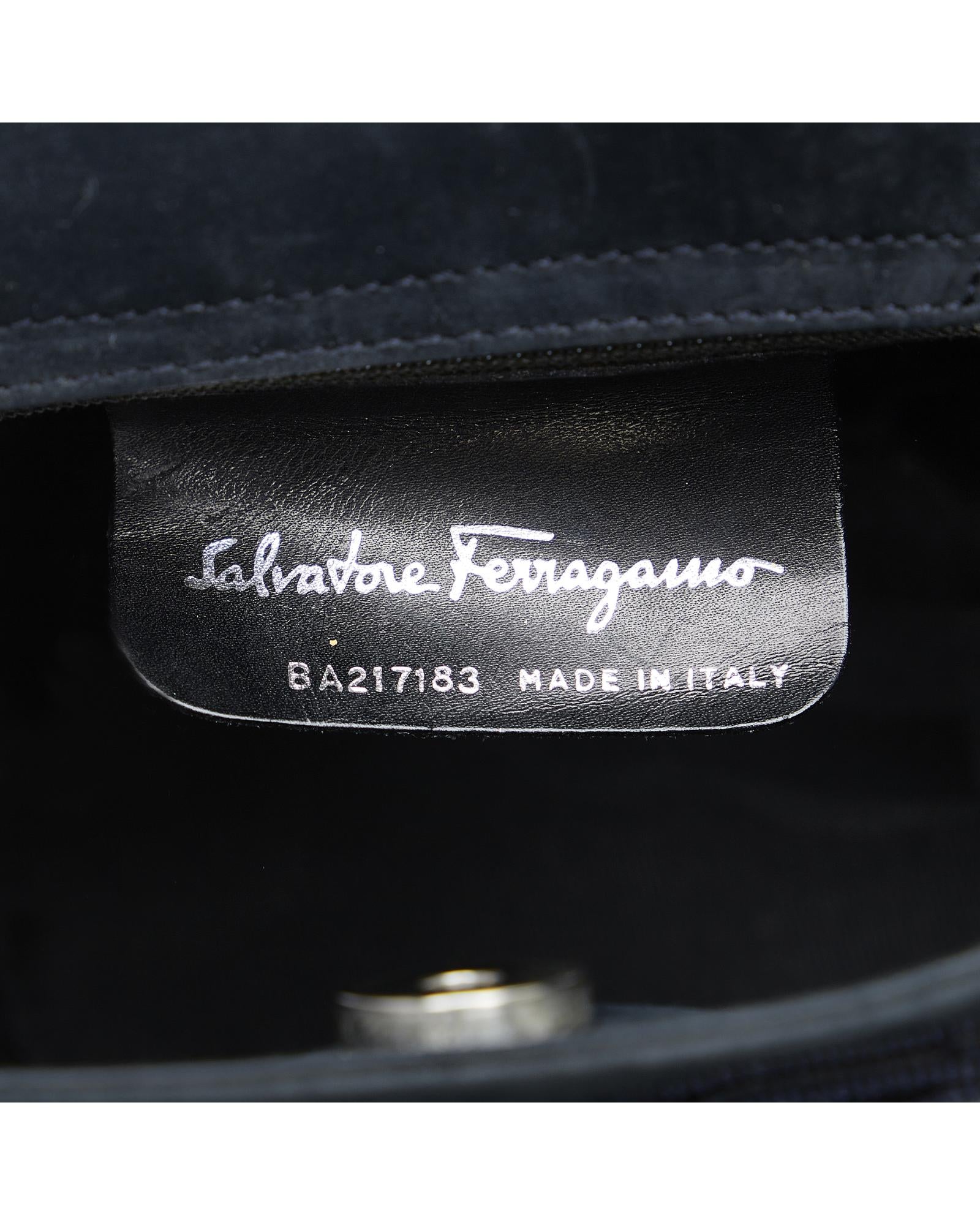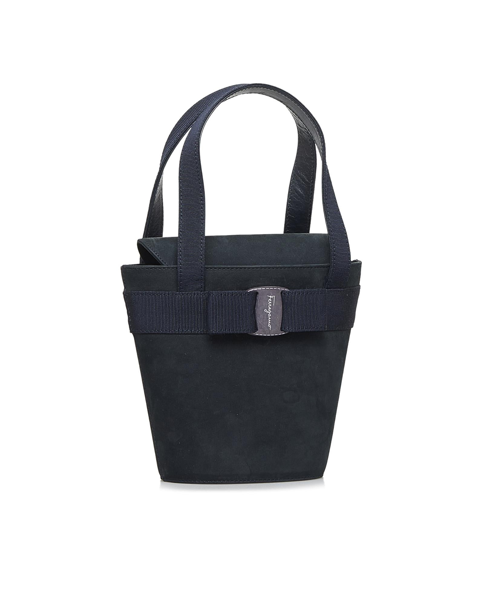 This bucket bag features a suede body flat handles an inner flap with magnetic button closure and an interior zip pocket.Brand: Ferragamo