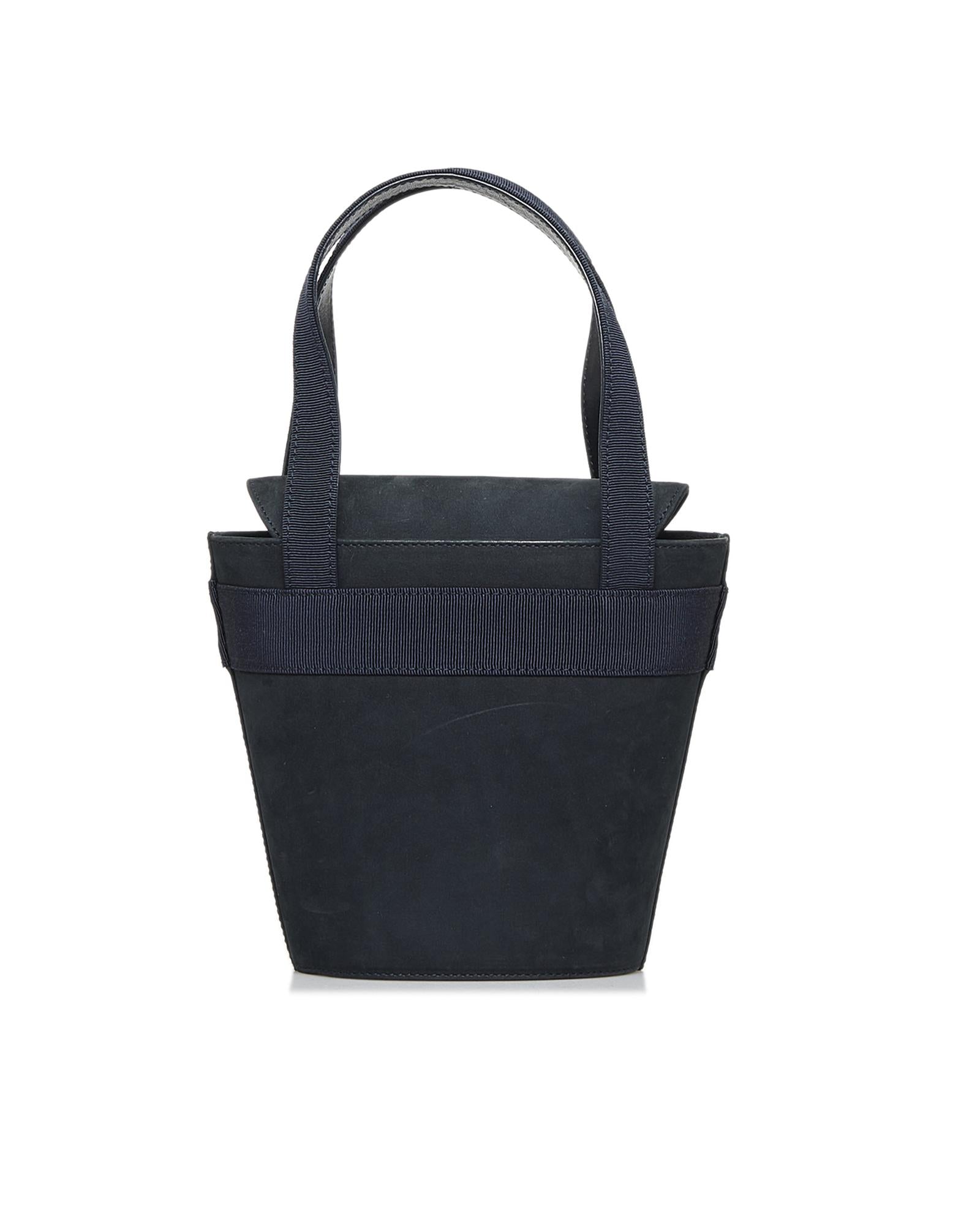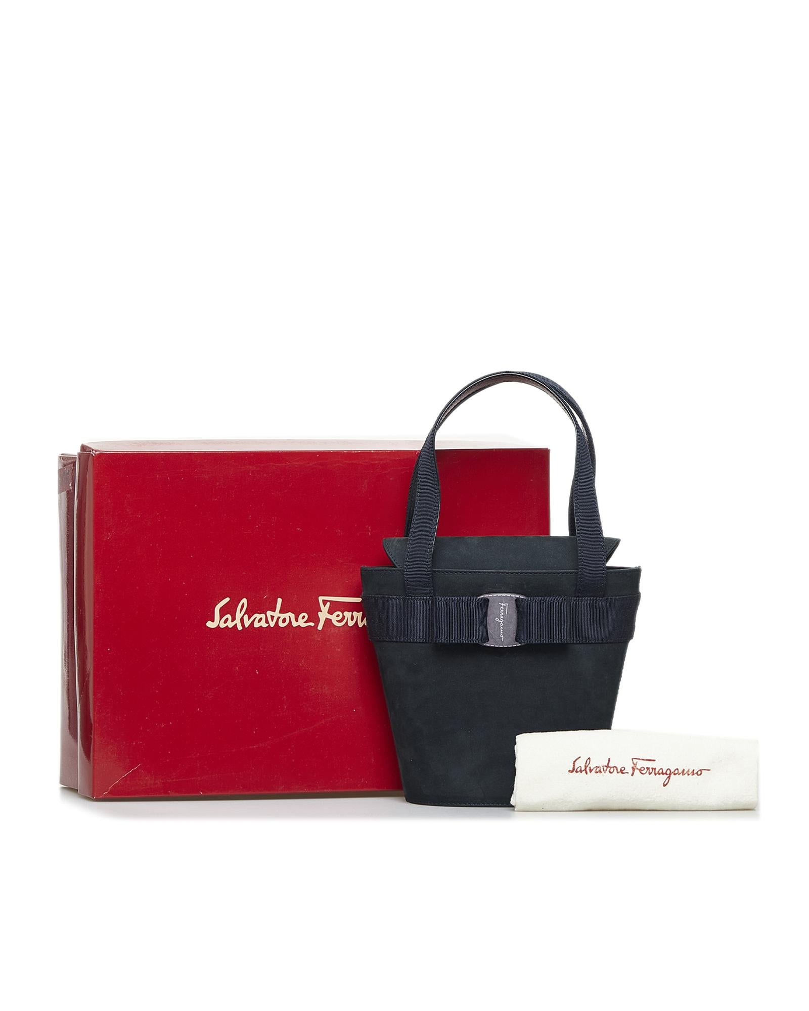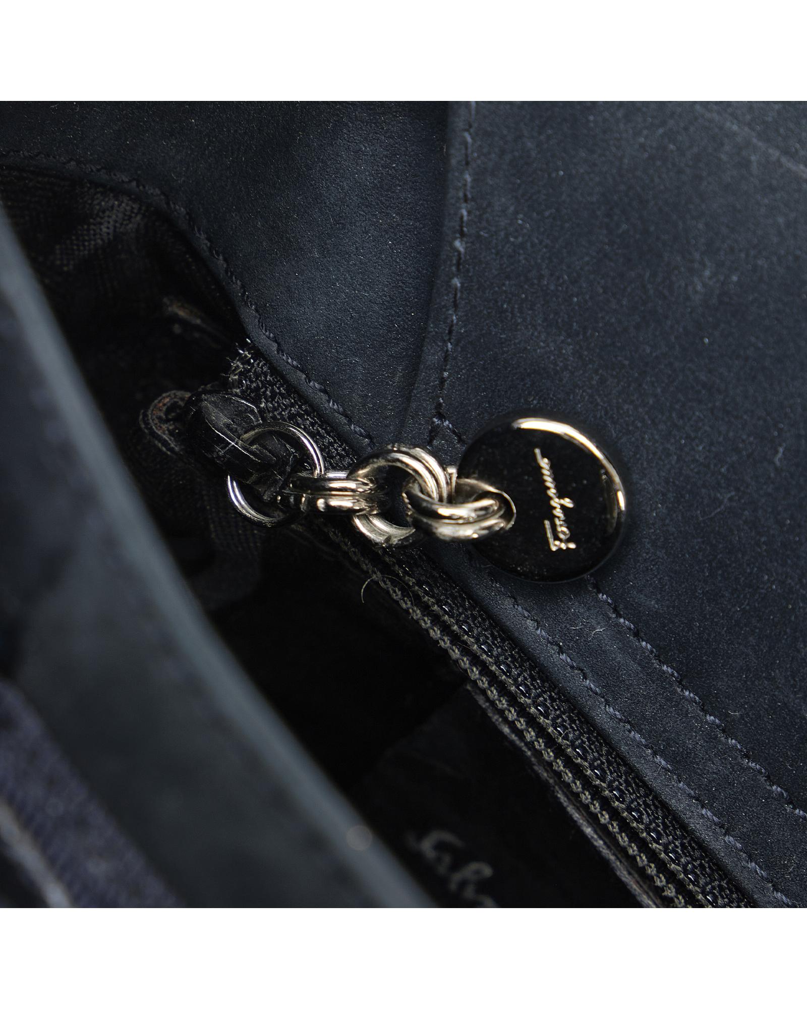 This bucket bag features a suede body flat handles an inner flap with magnetic button closure and an interior zip pocket.Brand: Ferragamo