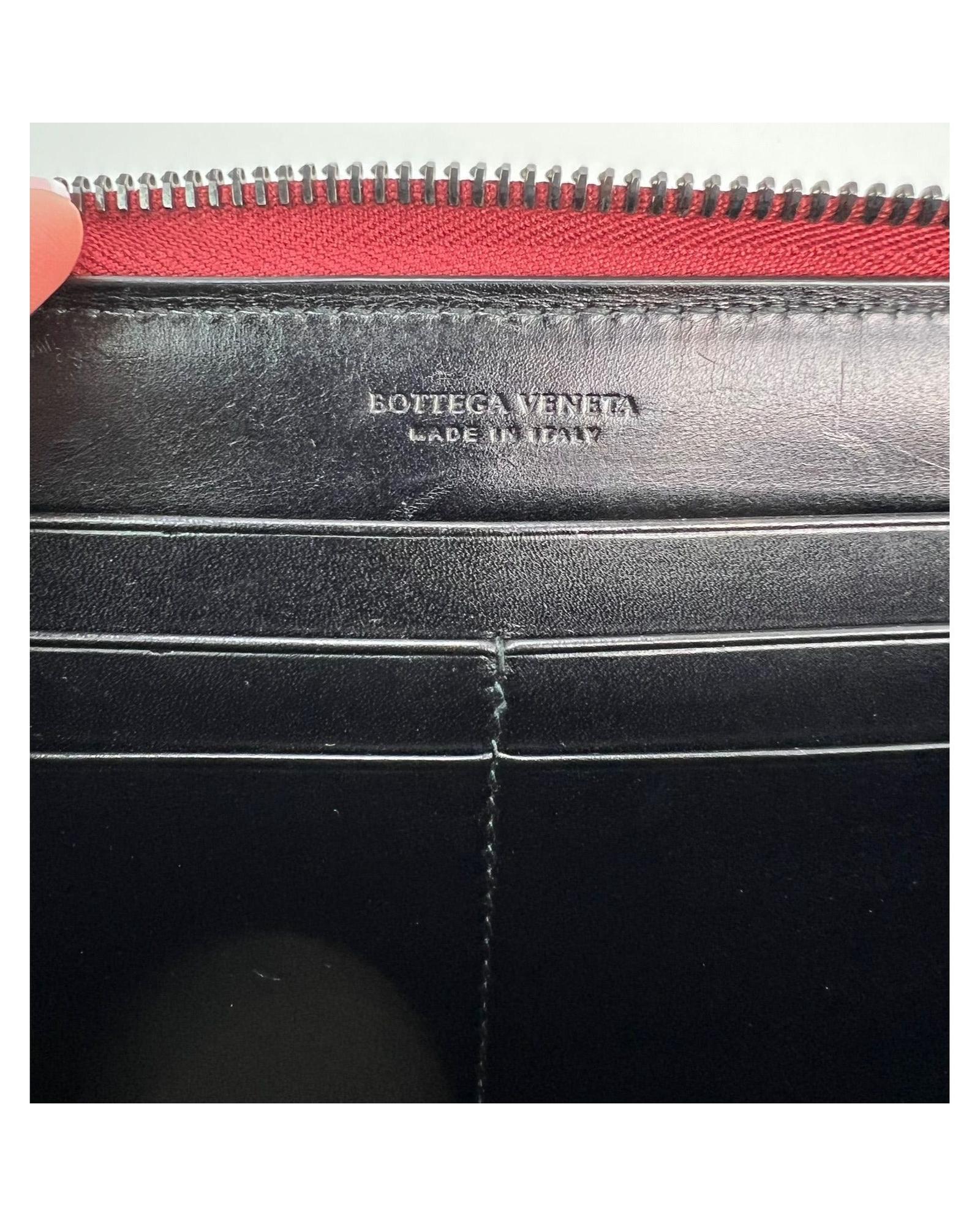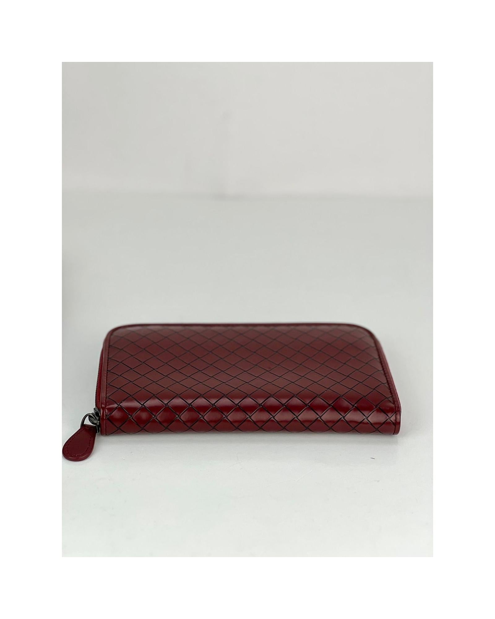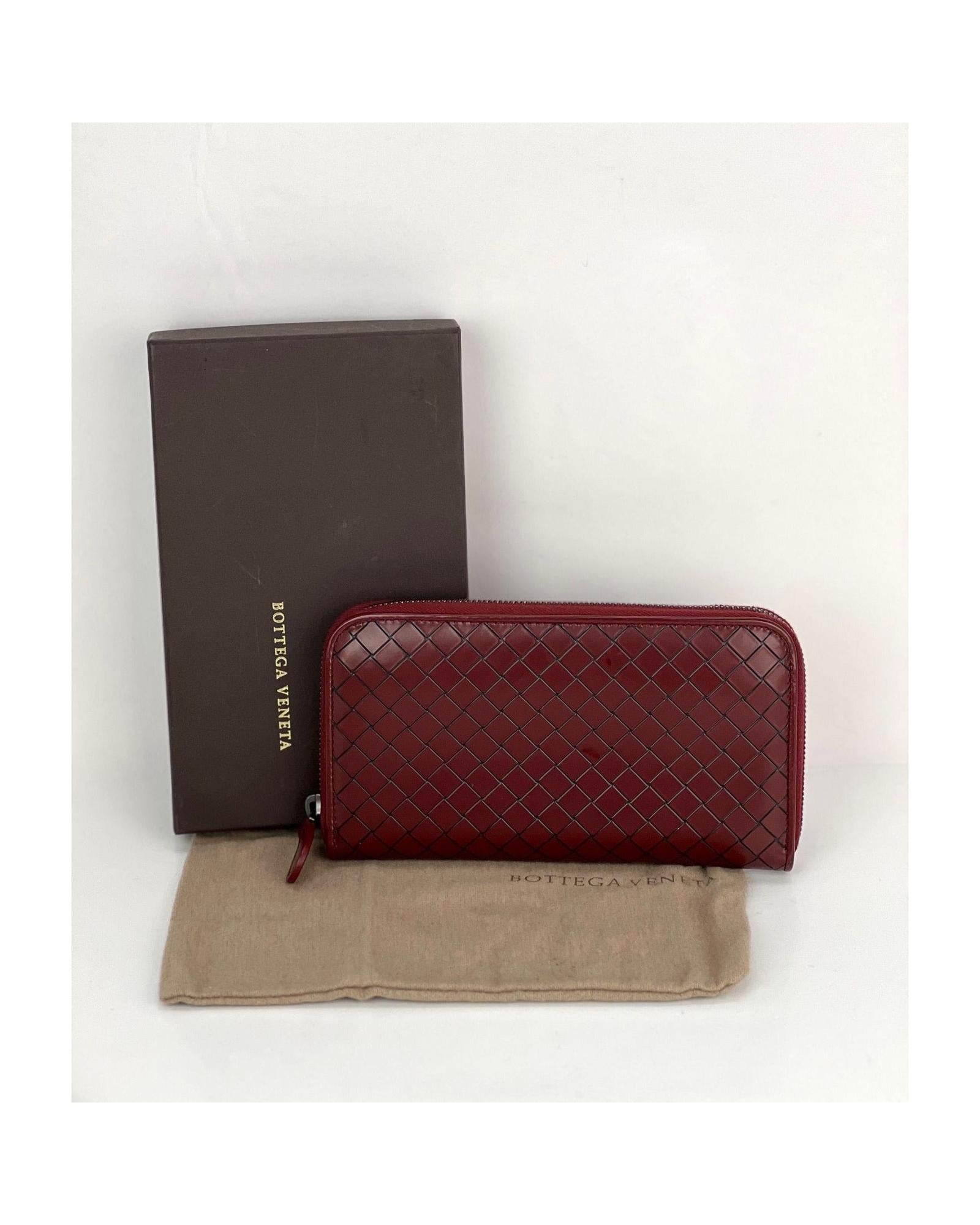 • Pre-owned 100% authentic Bottega Veneta Burgundy Intrecciato Zip Around Leather Wallet Clutch
