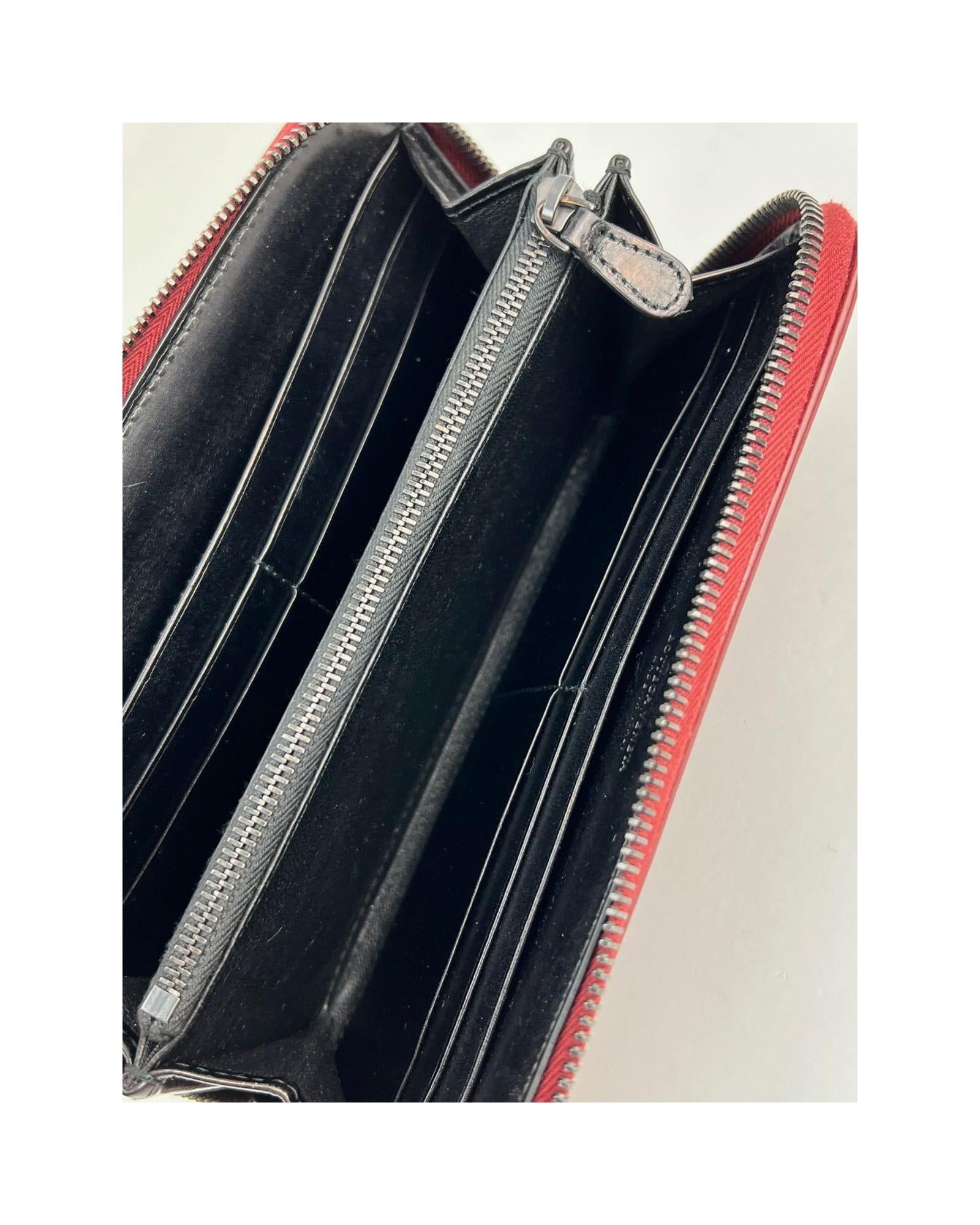 • Black leather interior with 8 credit card slots and a zippered middle pocket