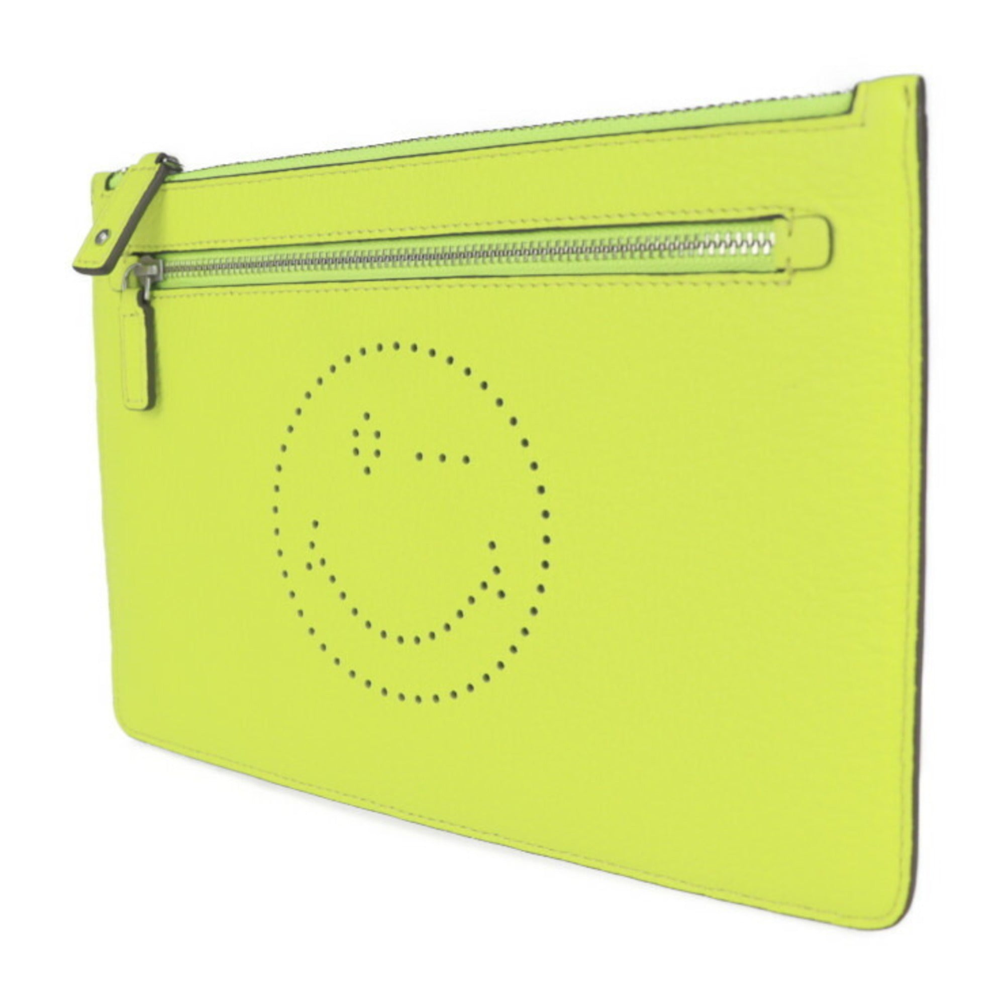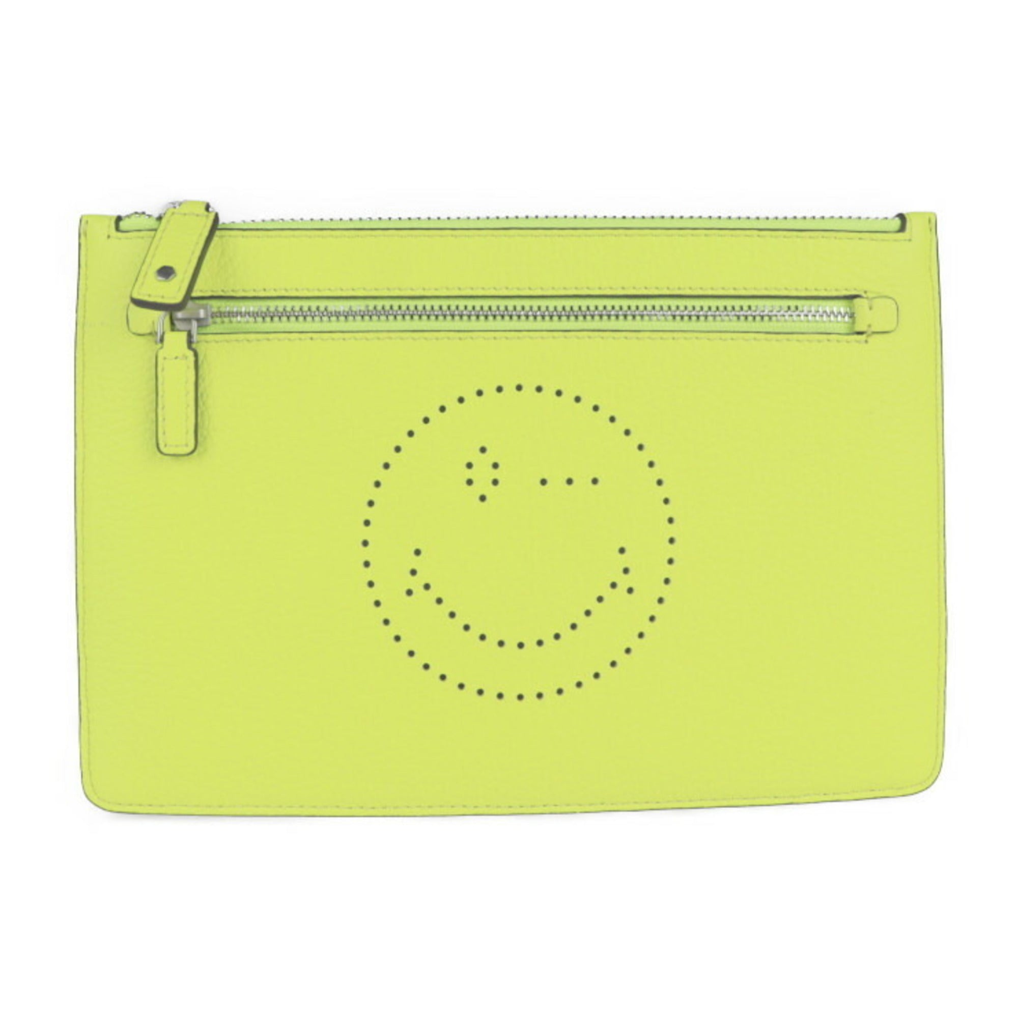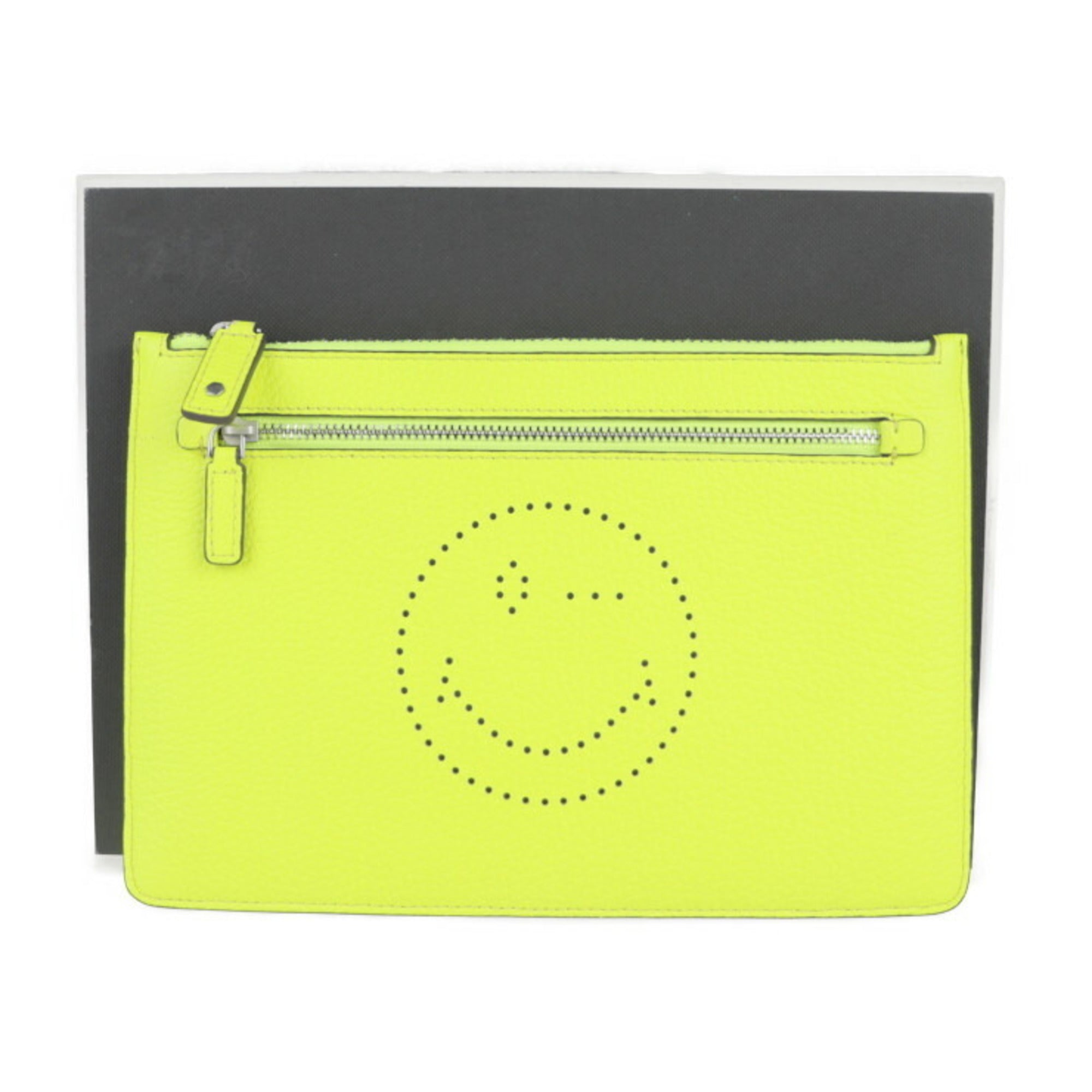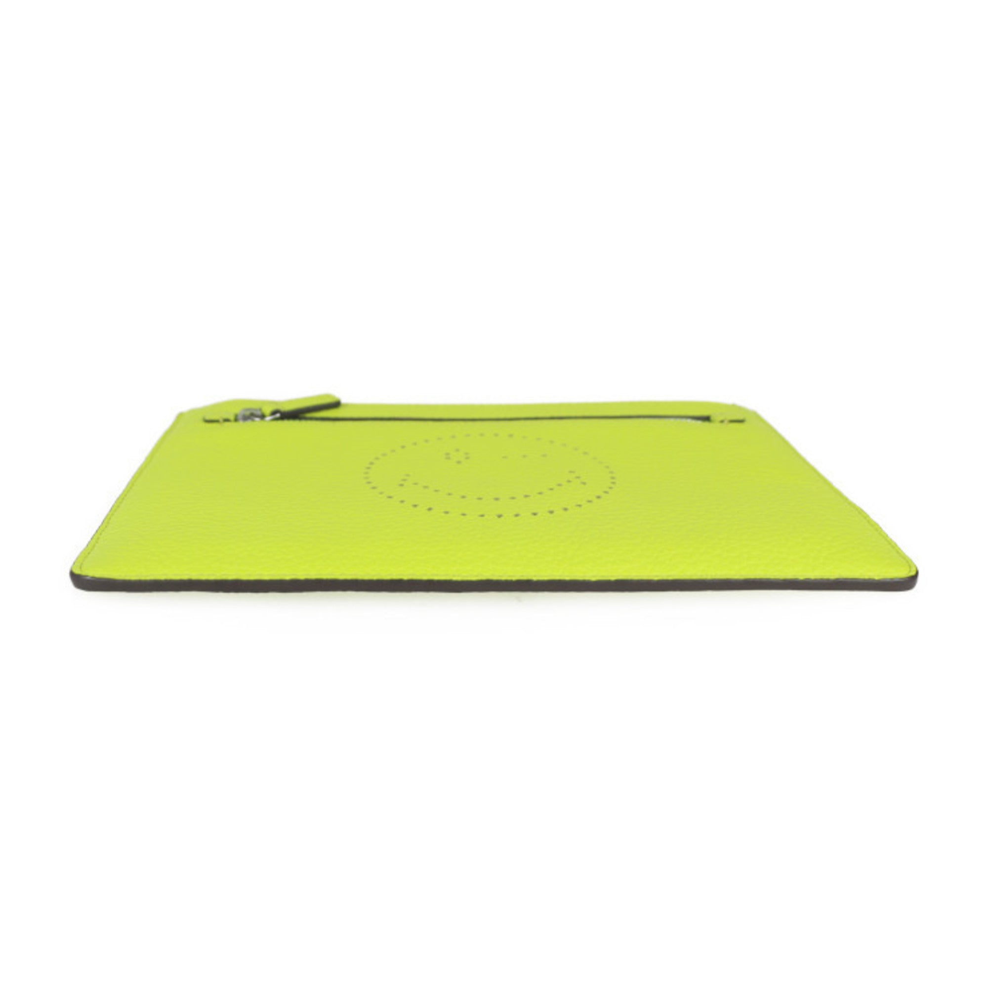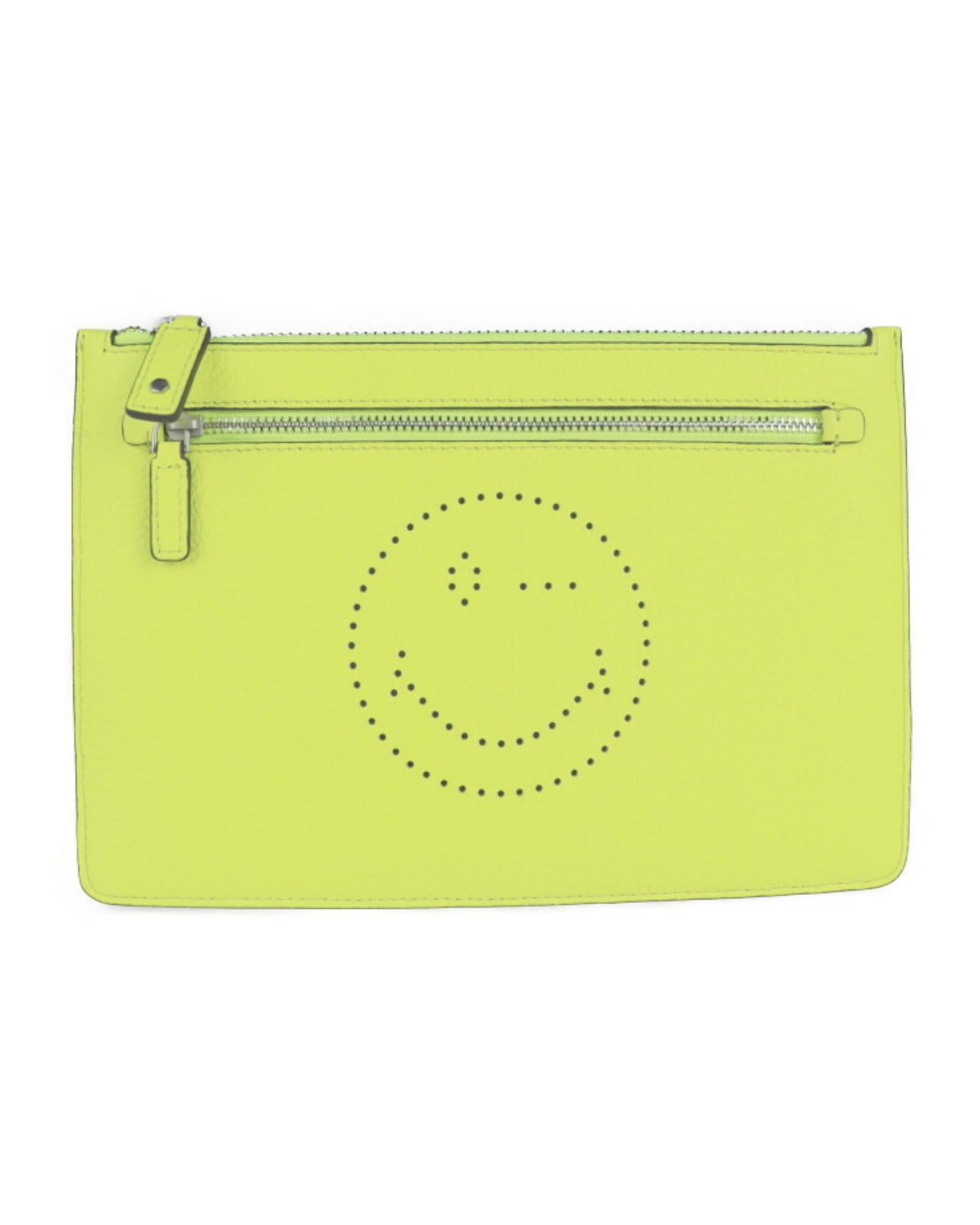 The Anya Hindmarch br presents the \"Smiley Double Zip\" model a bold clutch bag full of style. Made from high-quality calf leather this clutch embodies the brs craftsmanship attention to detail. Its distinctive design features two zippers a fluorescent yellow color that wont go unnoticed. Perfect for adding a touch of vitality to your outfits this Anya Hindmarch clutch is both modern playful. The bag is in excellent condition. We recommend that you look at all the pictures before making your purchase to ensure that you are satisfied with the condition of the item.