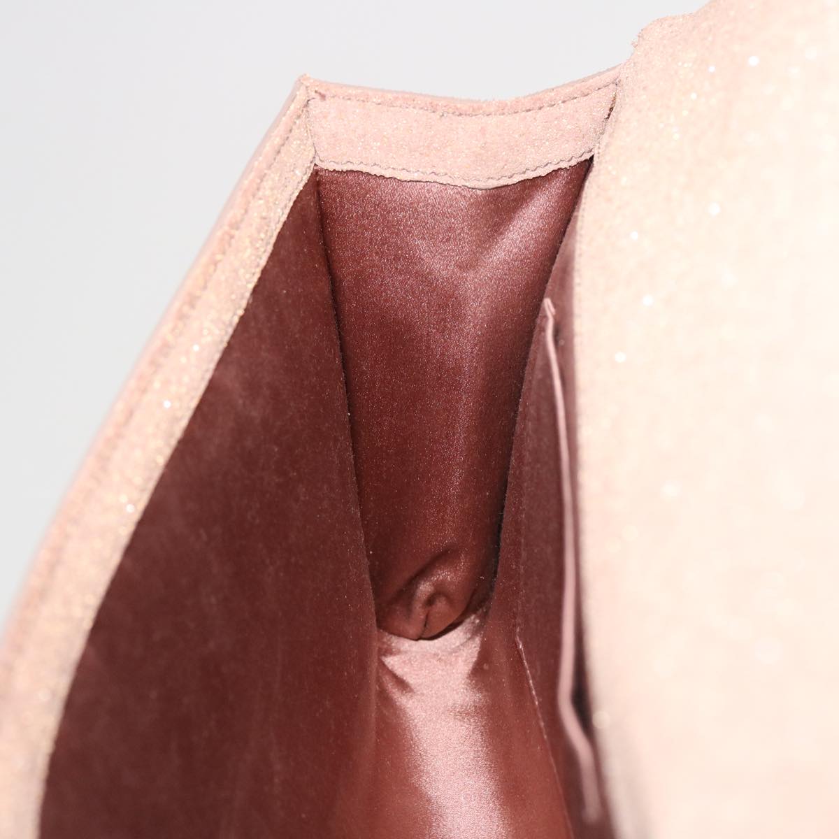 On the inside there is rubbing present the pocket also shows signs of rubbing. The corners of the clutch bag display rubbing as well.