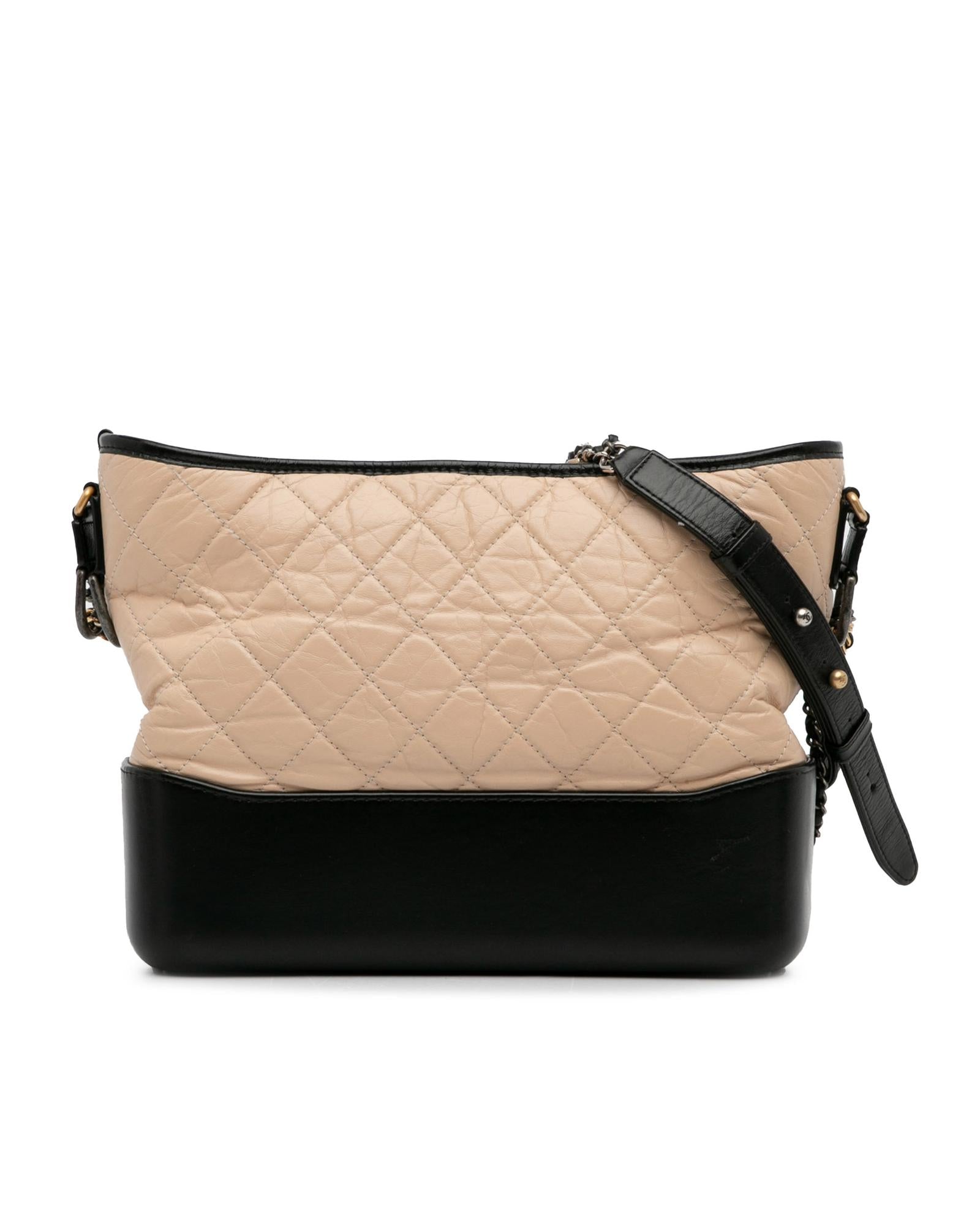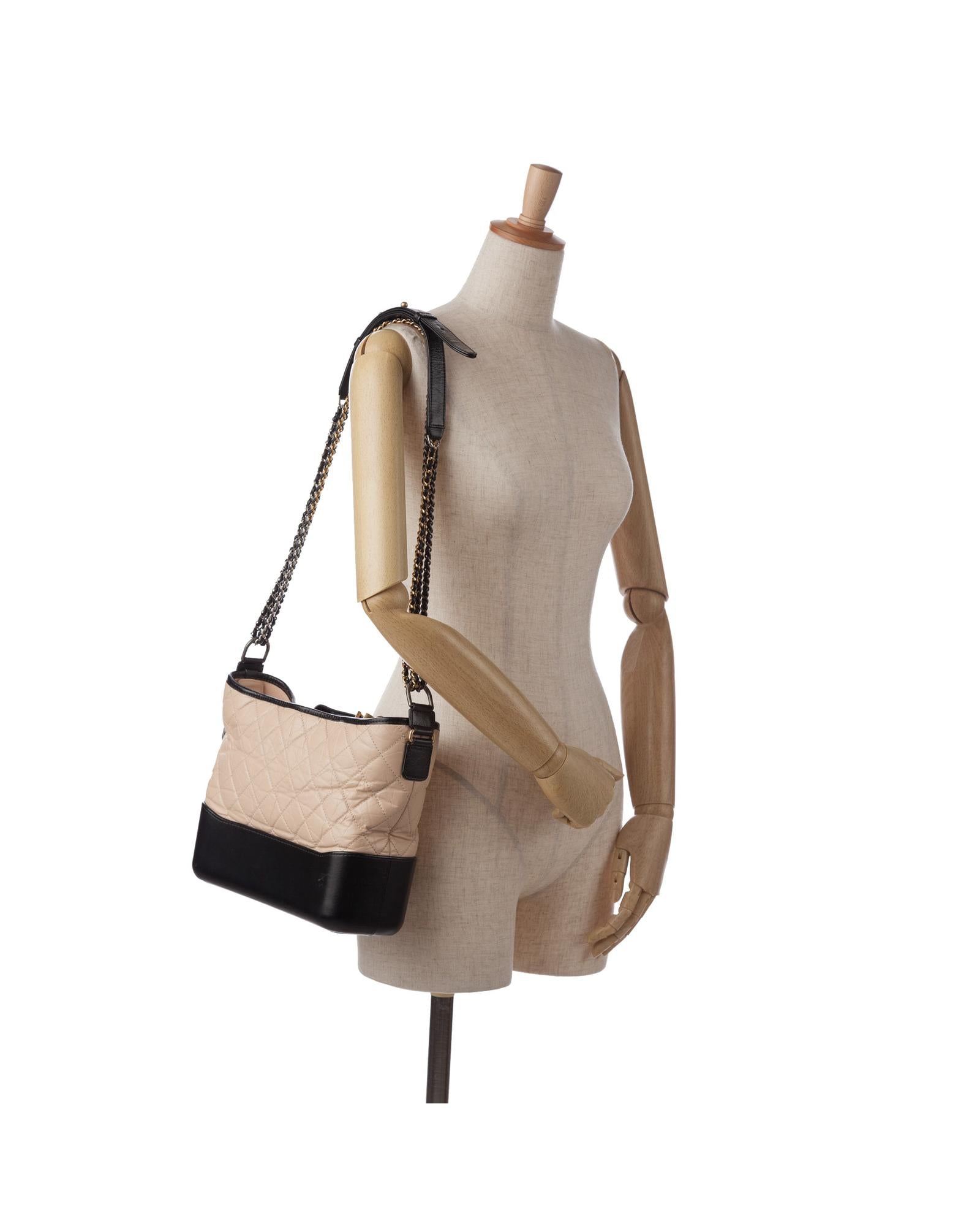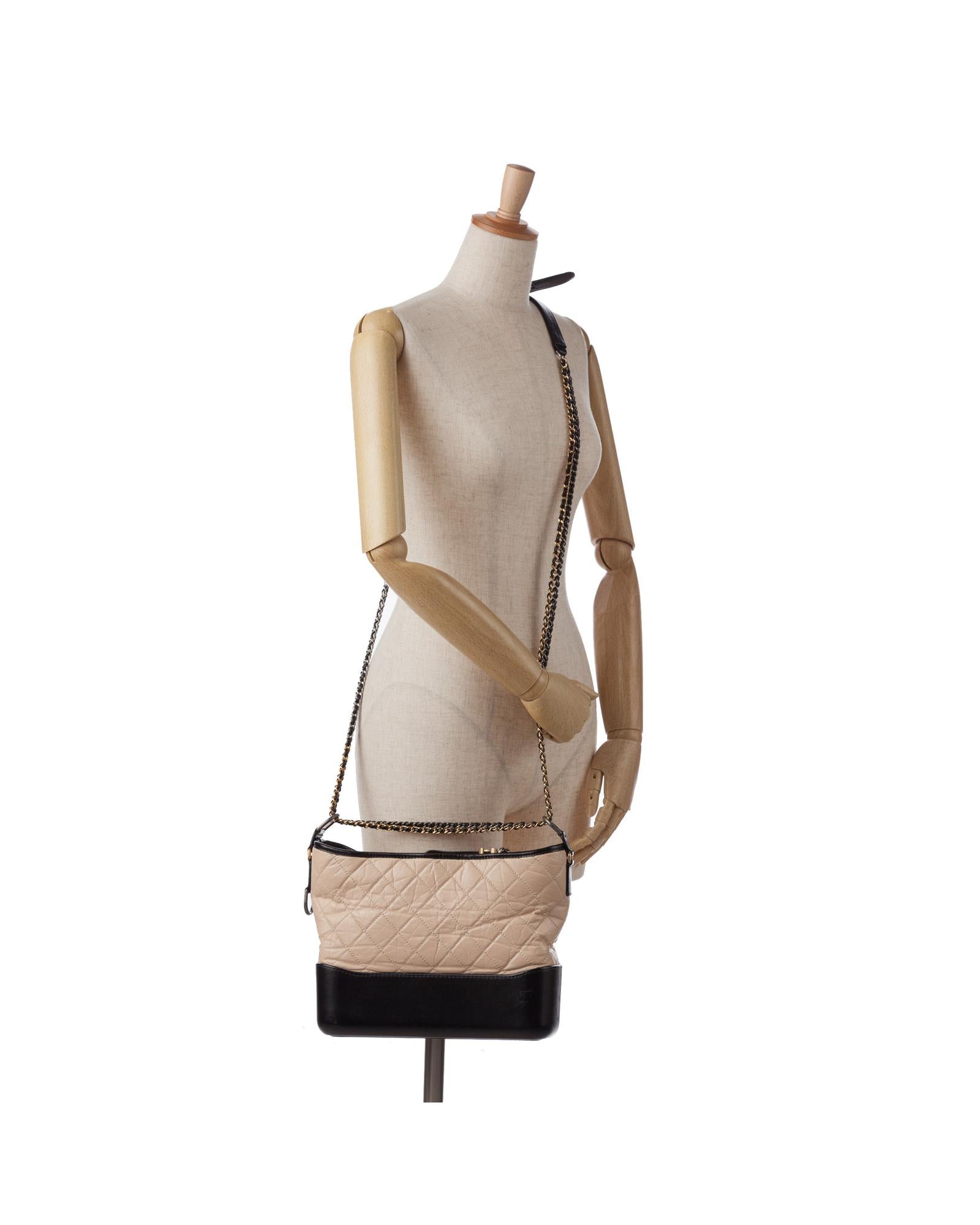 The Gabrielle features a quilted lambskin leather body a leather woven chain strap with leather guard a top zip closure and interior zip and slip pockets.Brand: Chanel
