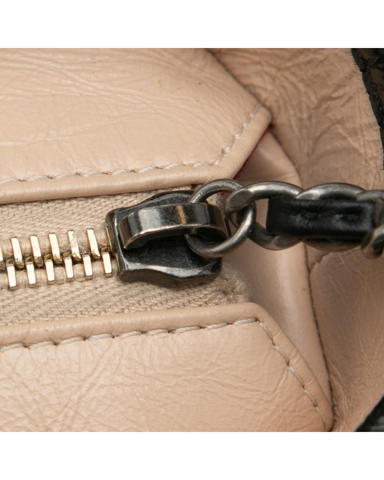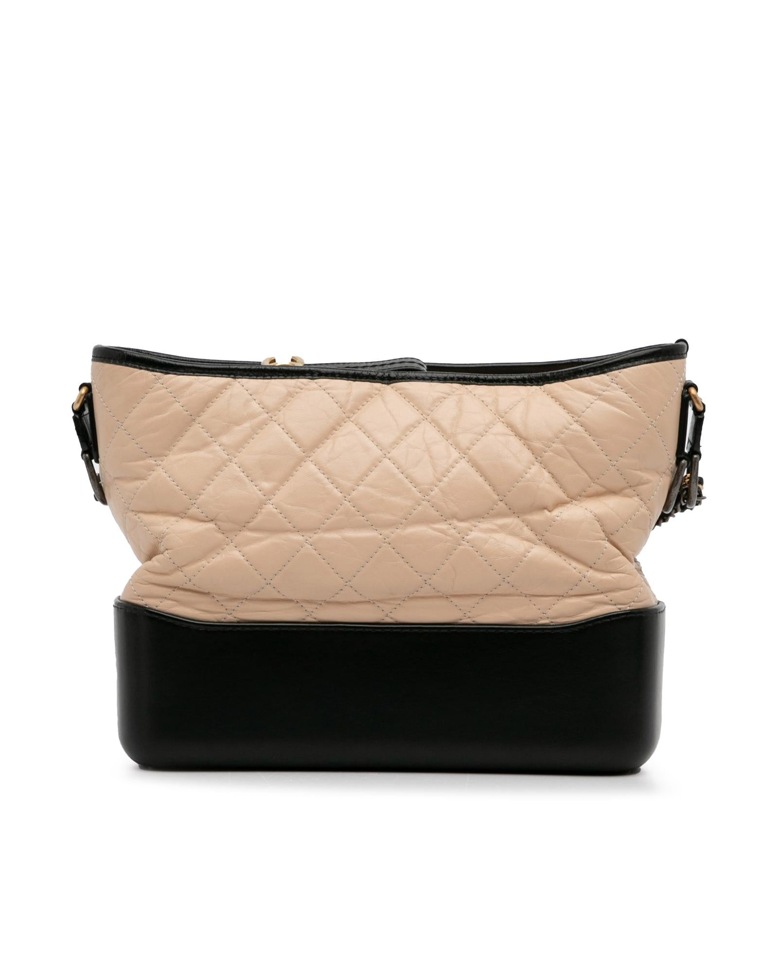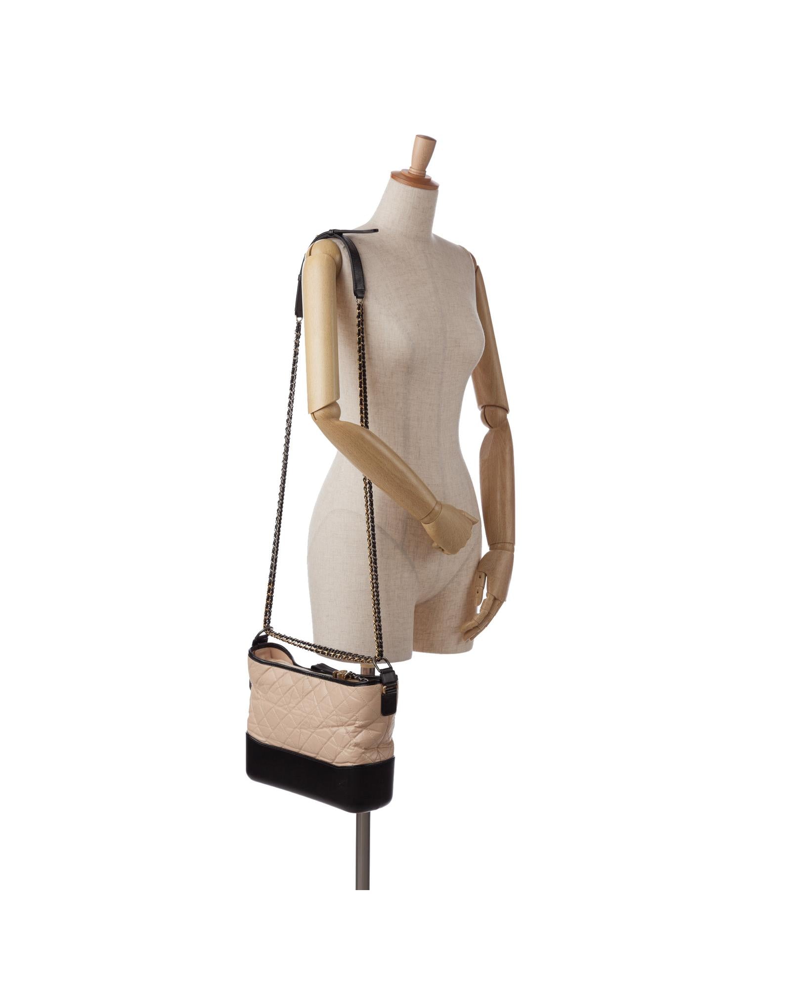 The Gabrielle features a quilted lambskin leather body a leather woven chain strap with leather guard a top zip closure and interior zip and slip pockets.Brand: Chanel