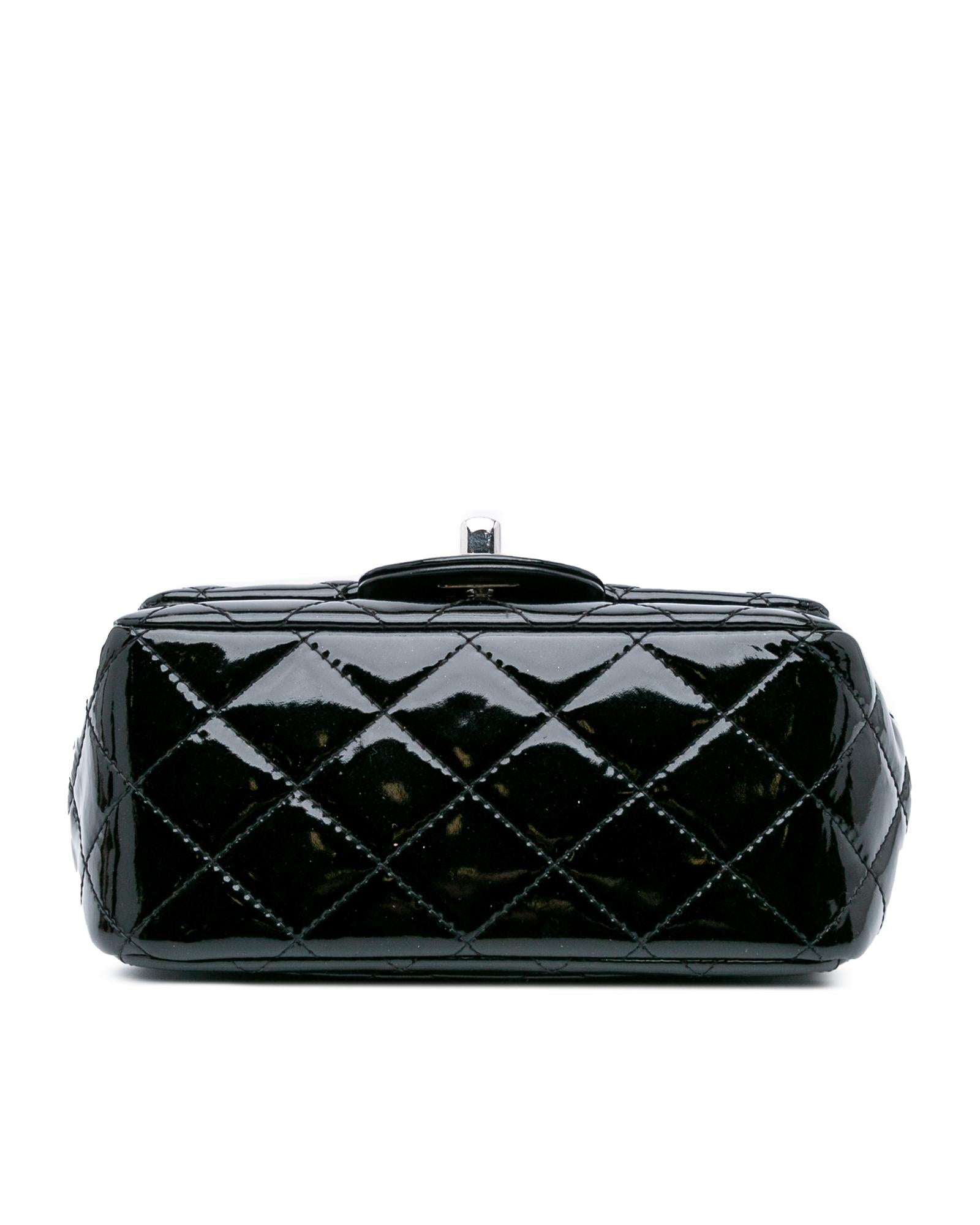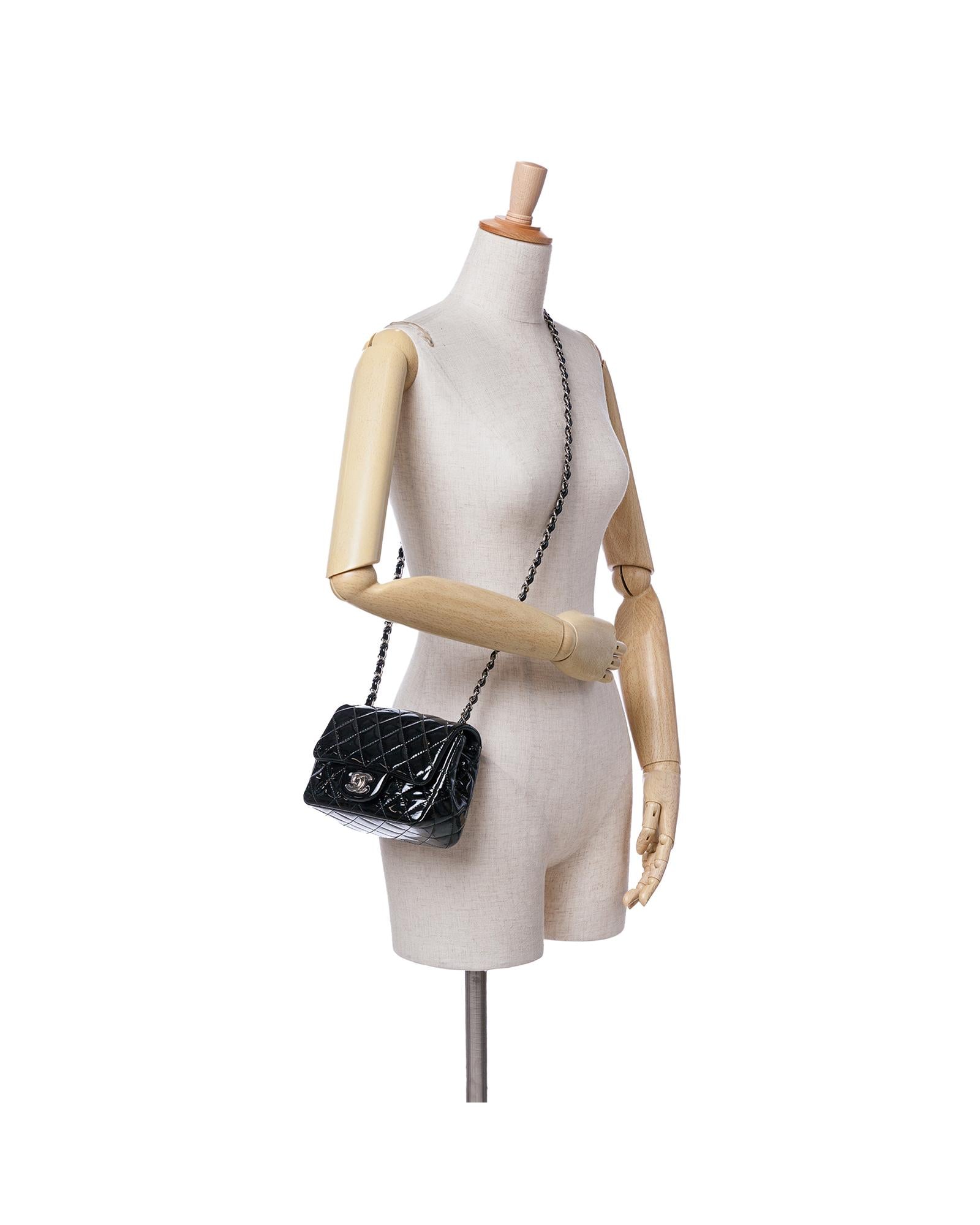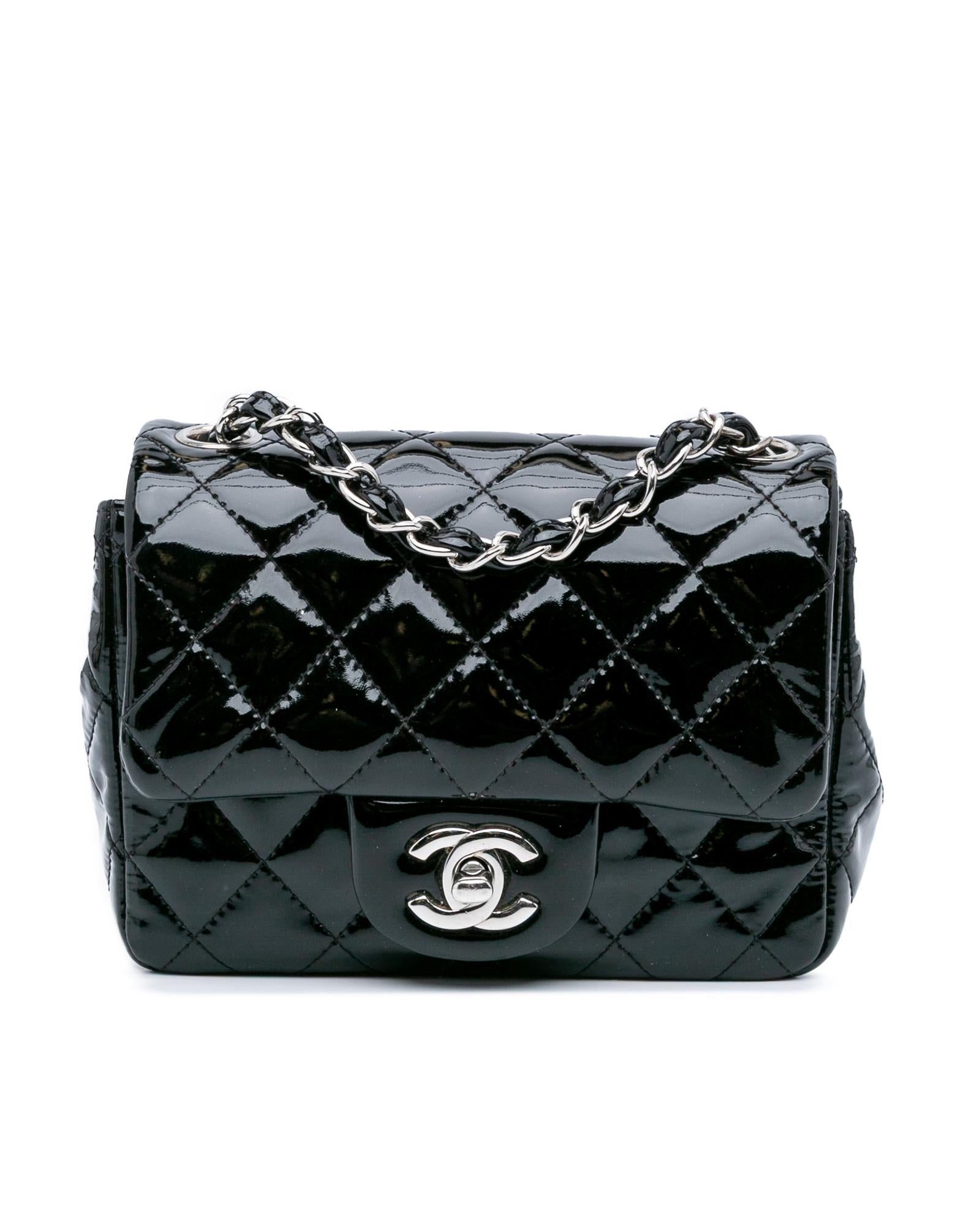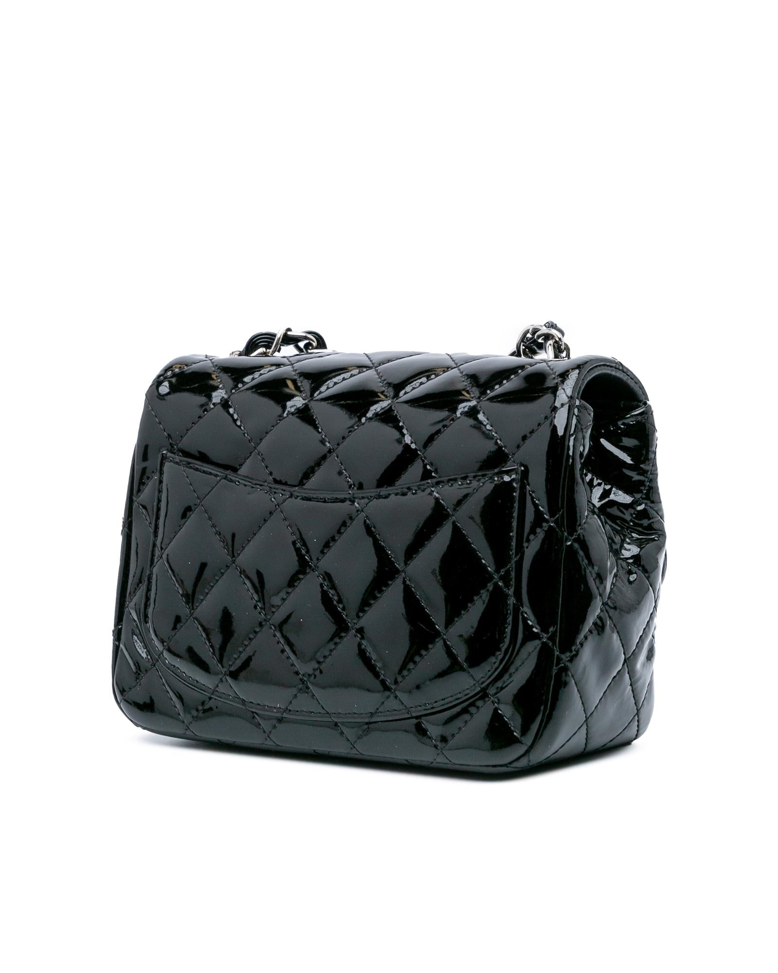 Mini Square Classic Patent Flap Bag with Quilted Leather and Chain Strap