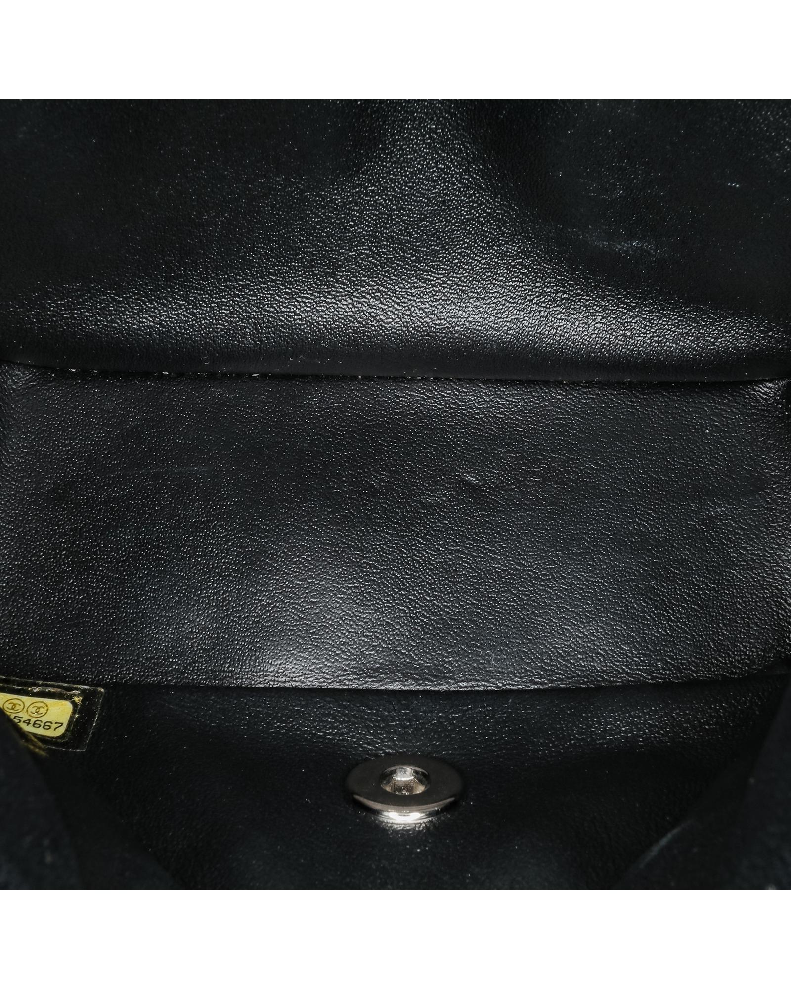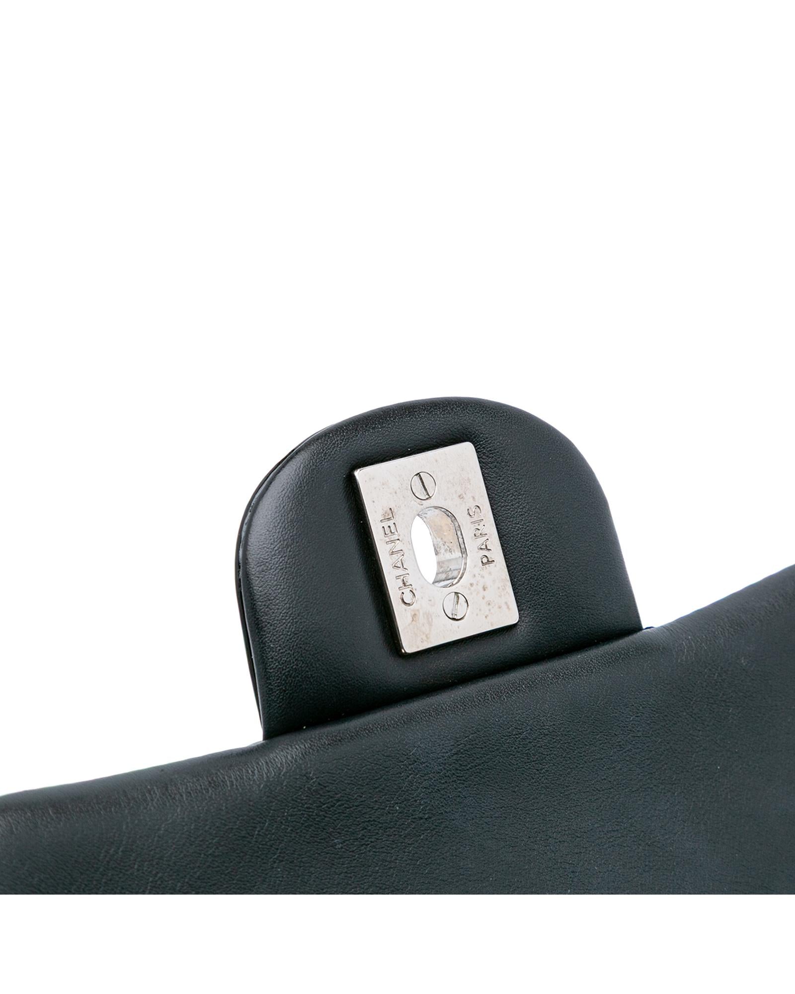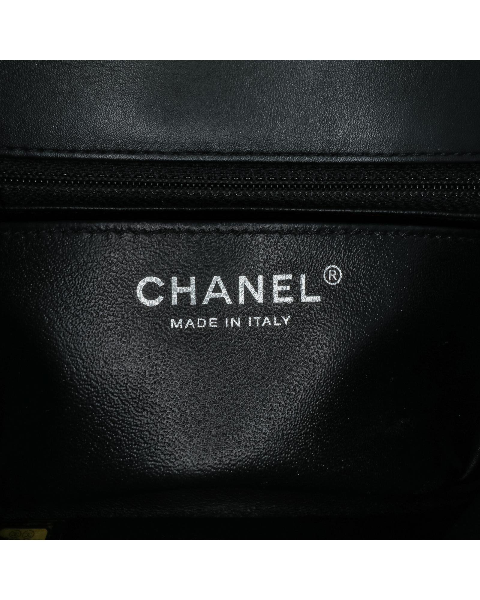 This flap bag features a quilted patent leather body a leather woven chain shoulder strap a front flap with interlocking Cs and a twist lock closure an exterior back slip pocket and interior zip and slip pockets.Brand: Chanel