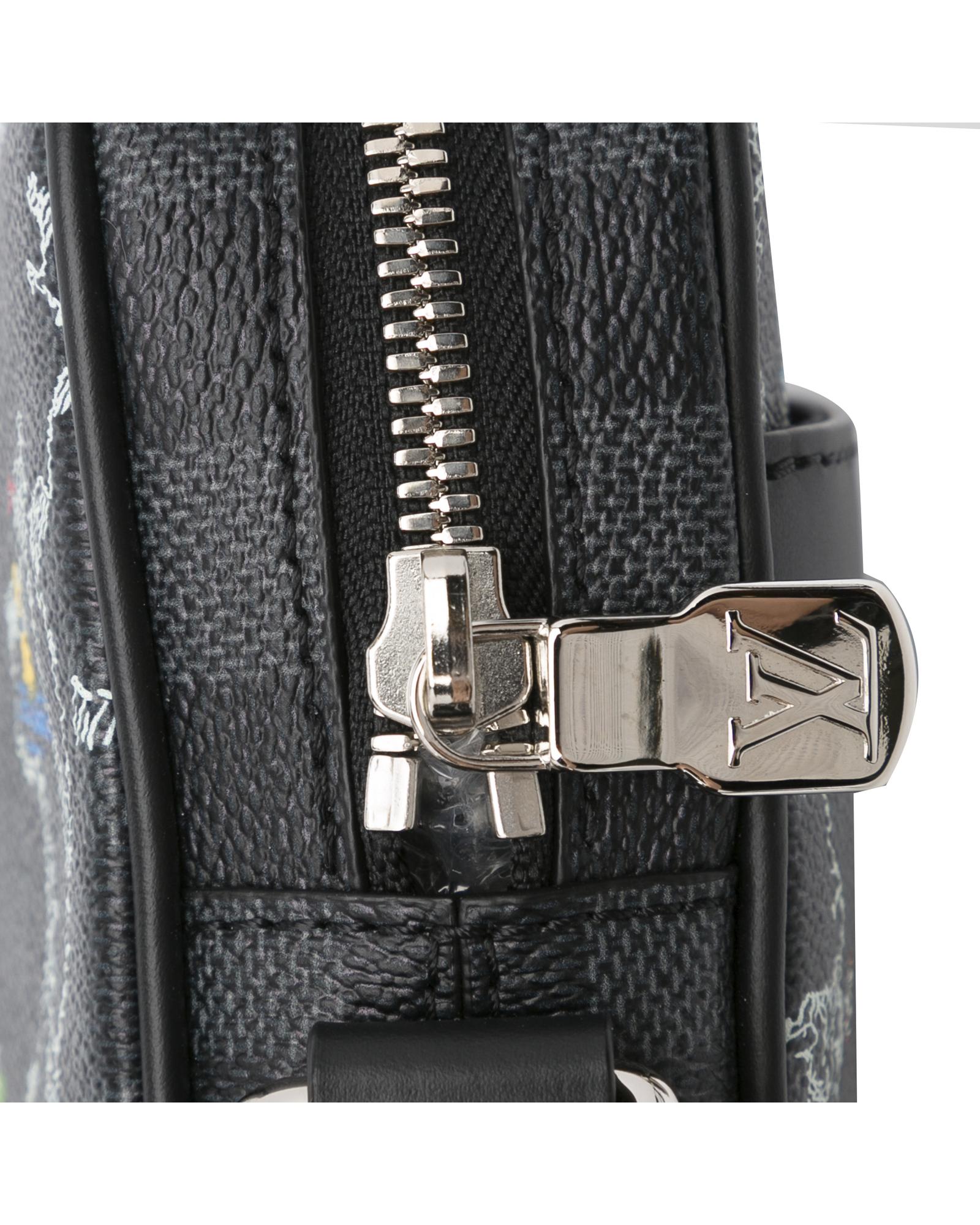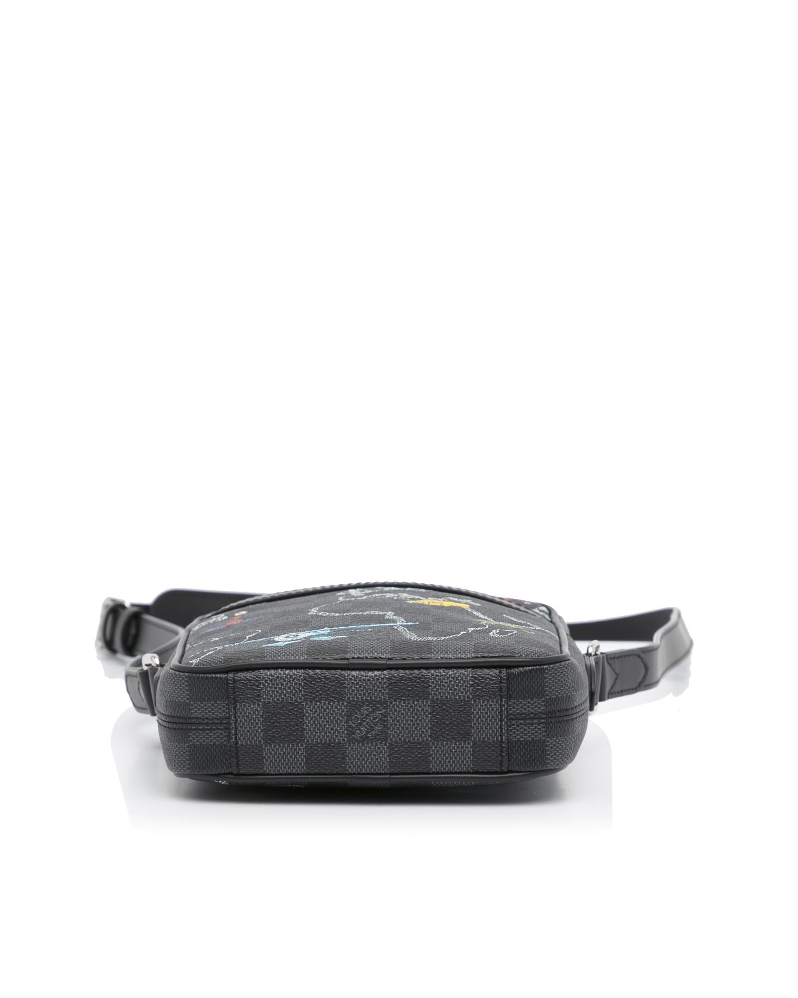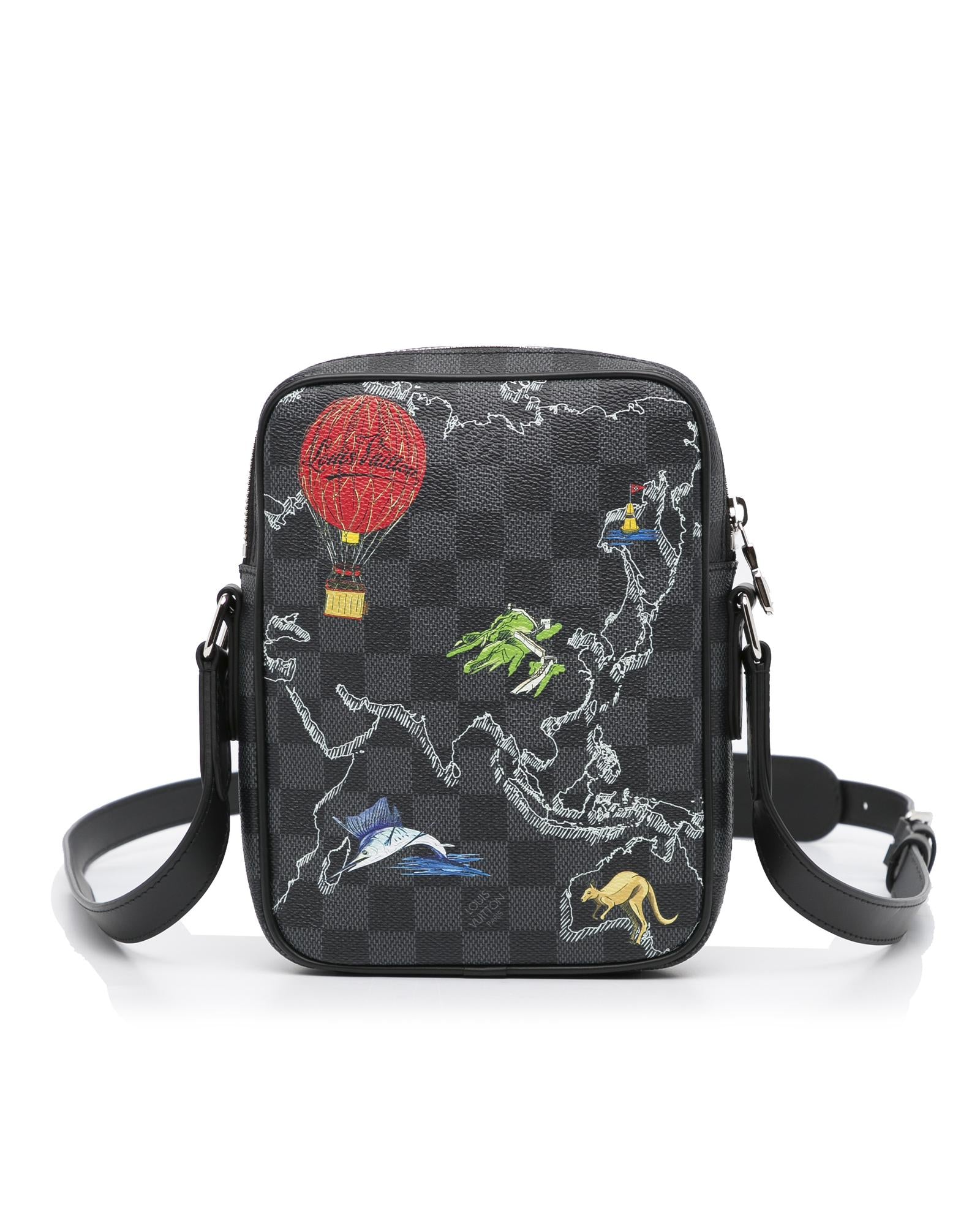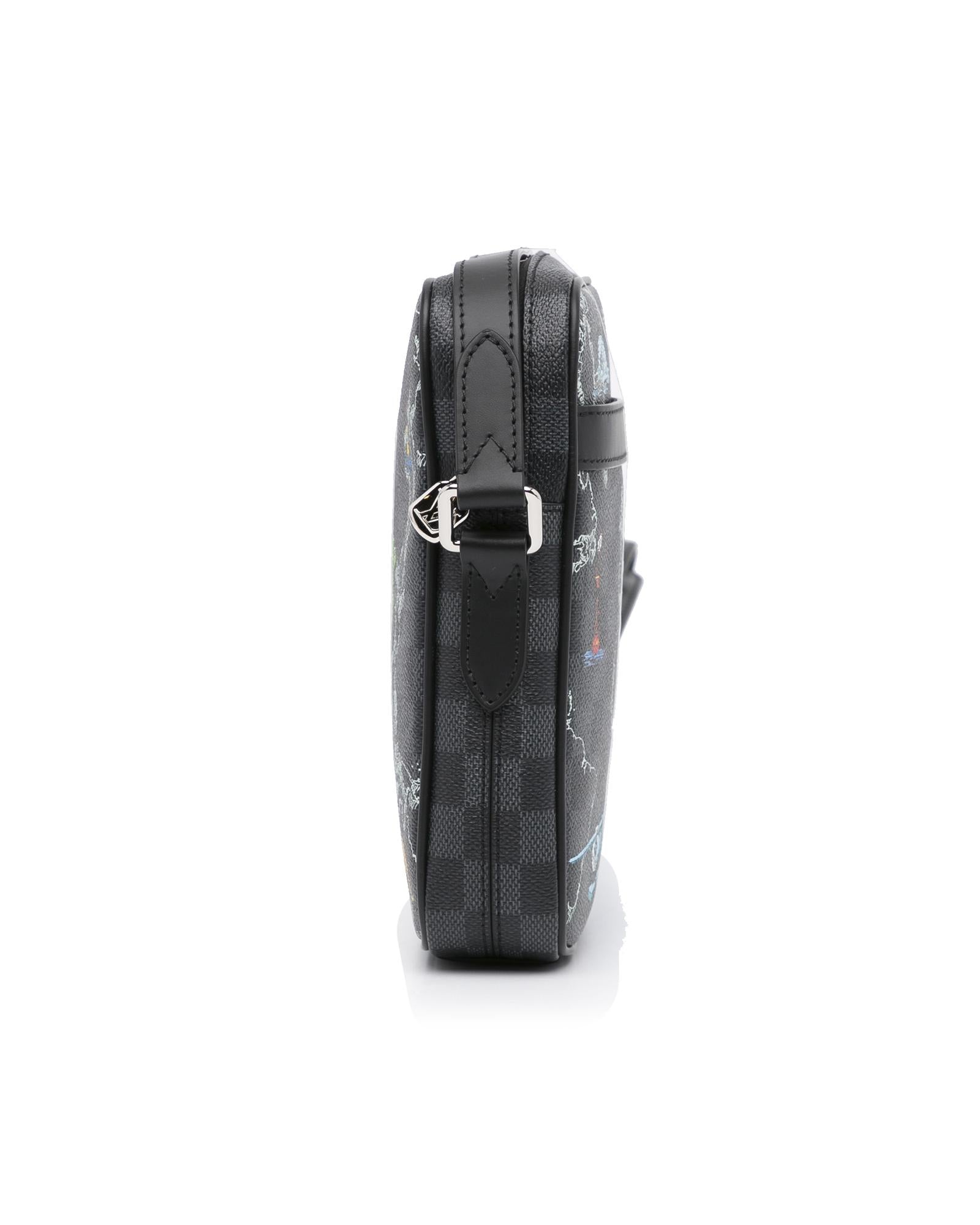 The Danube features an damier canvas body an exterior front slip pocket an adjustable shoulder strap and a top zip closure.