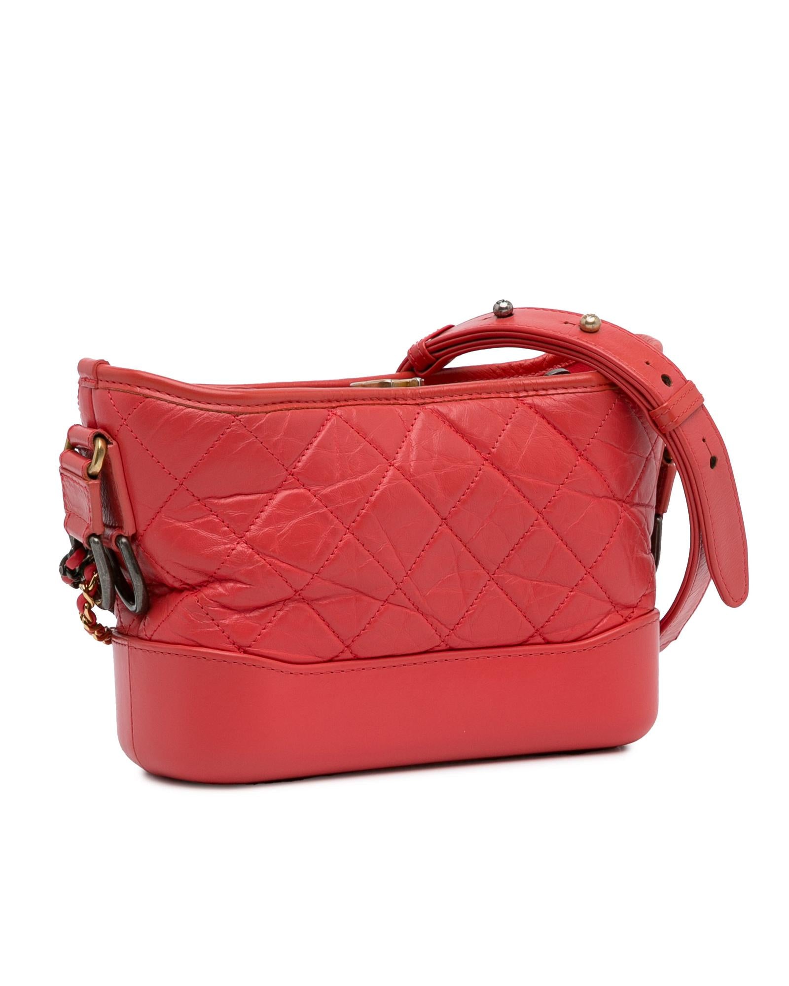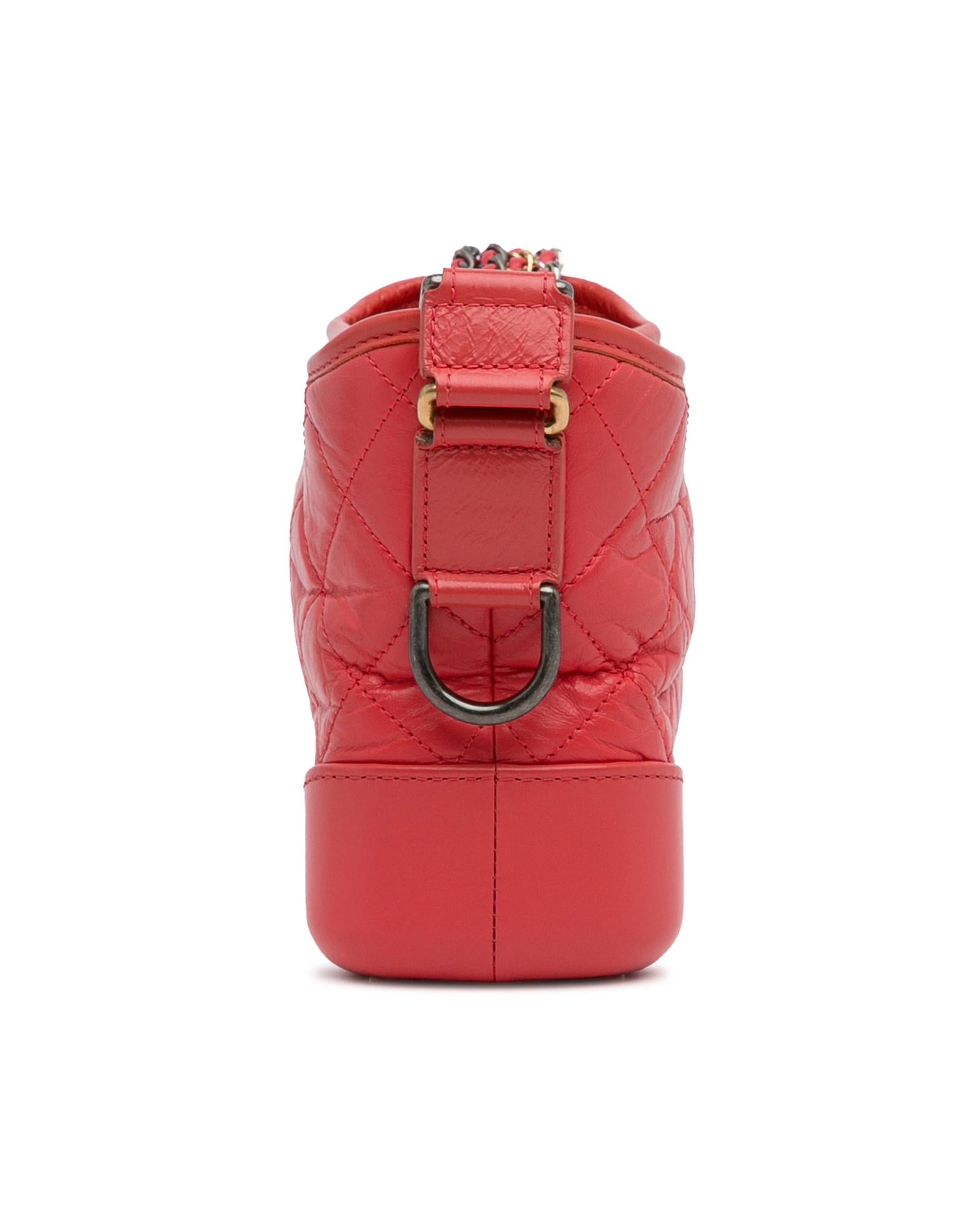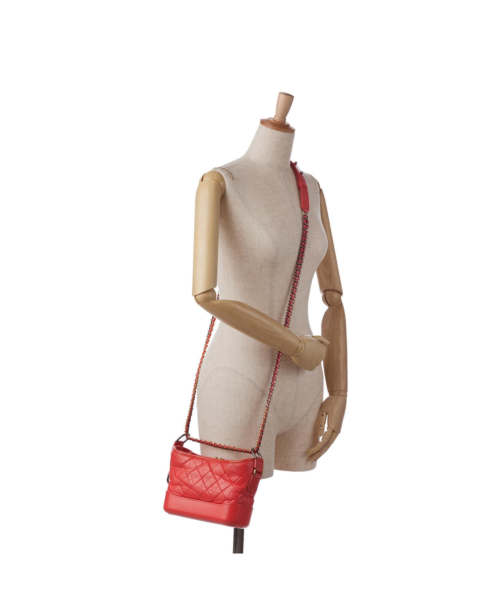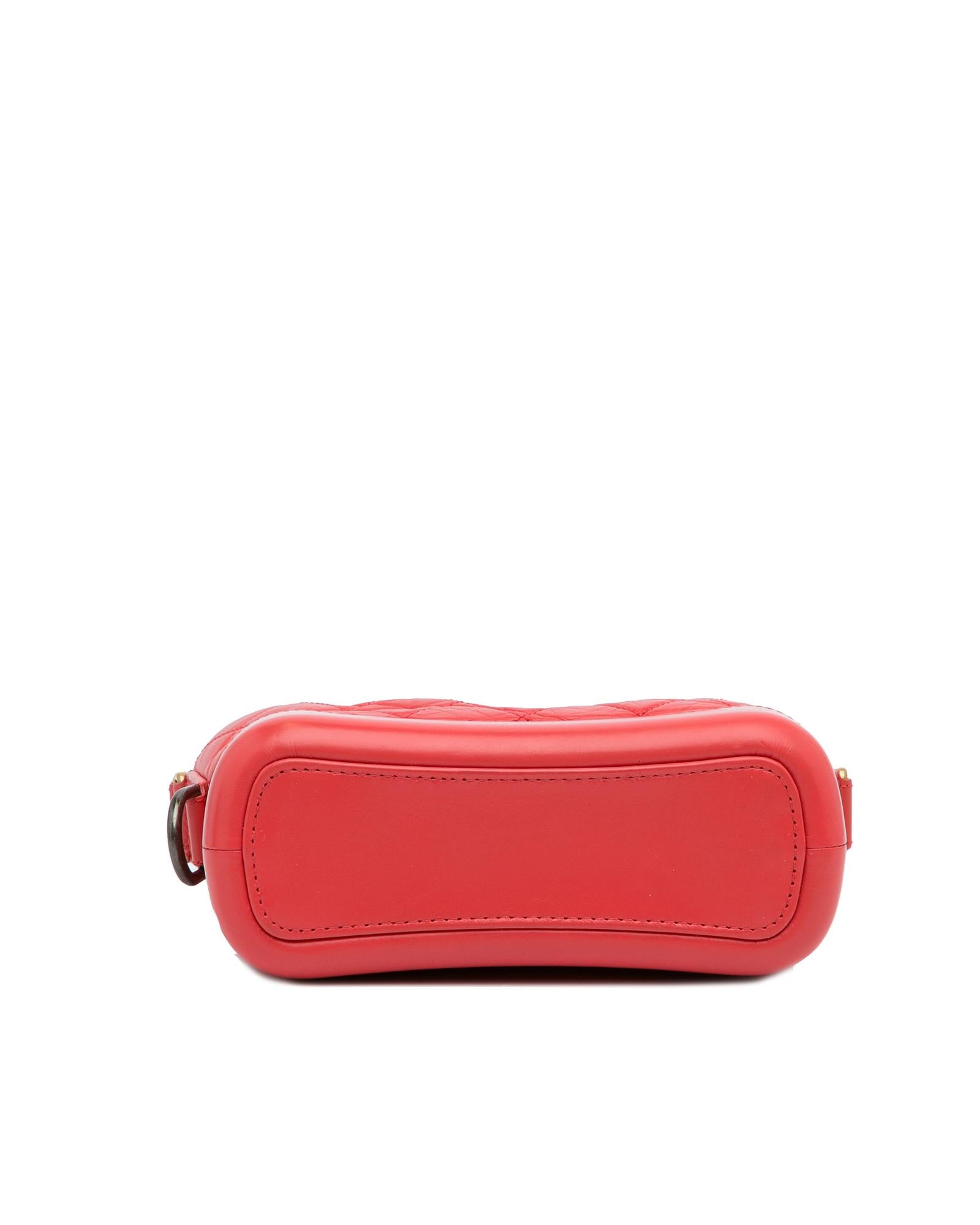 The Gabrielle features a quilted lambskin leather body detachable chain-link leather shoulder straps a top zip closure and interior zip and slip pockets.