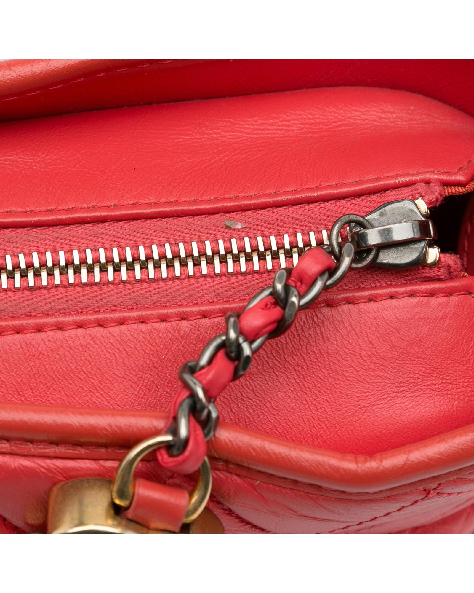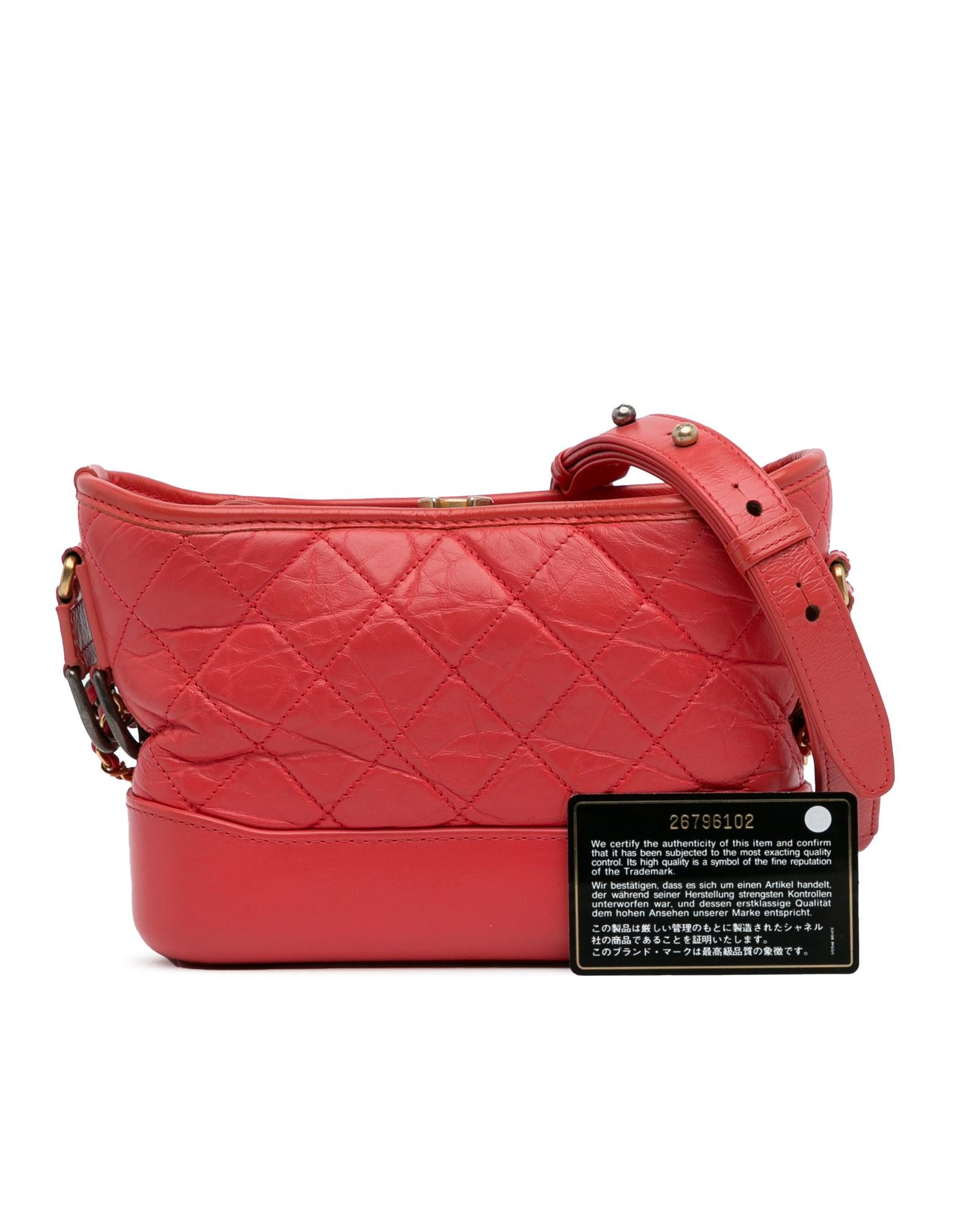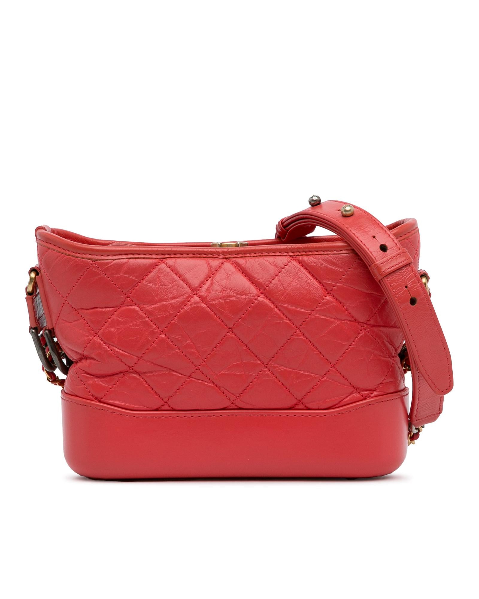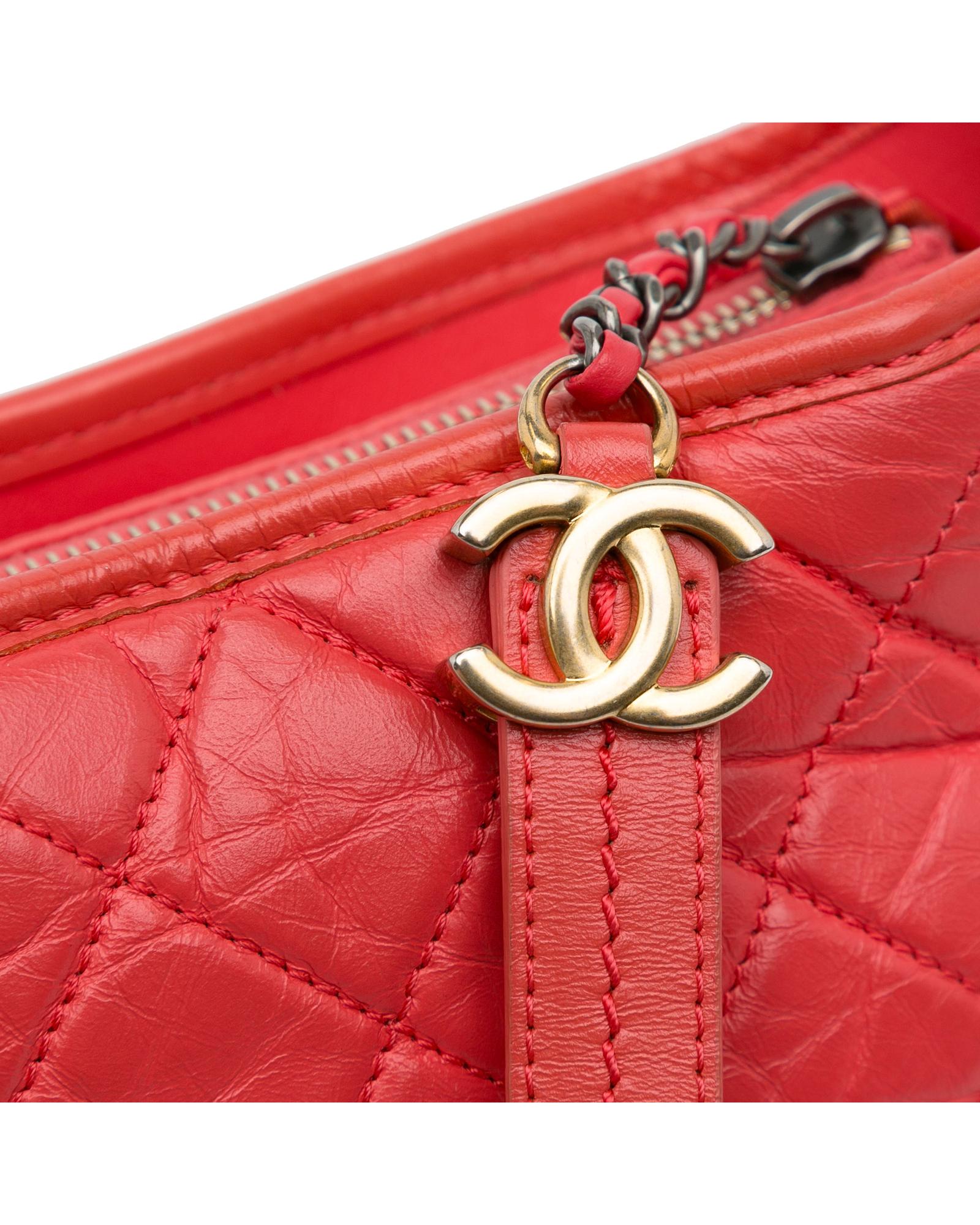 The Gabrielle features a quilted lambskin leather body detachable chain-link leather shoulder straps a top zip closure and interior zip and slip pockets.