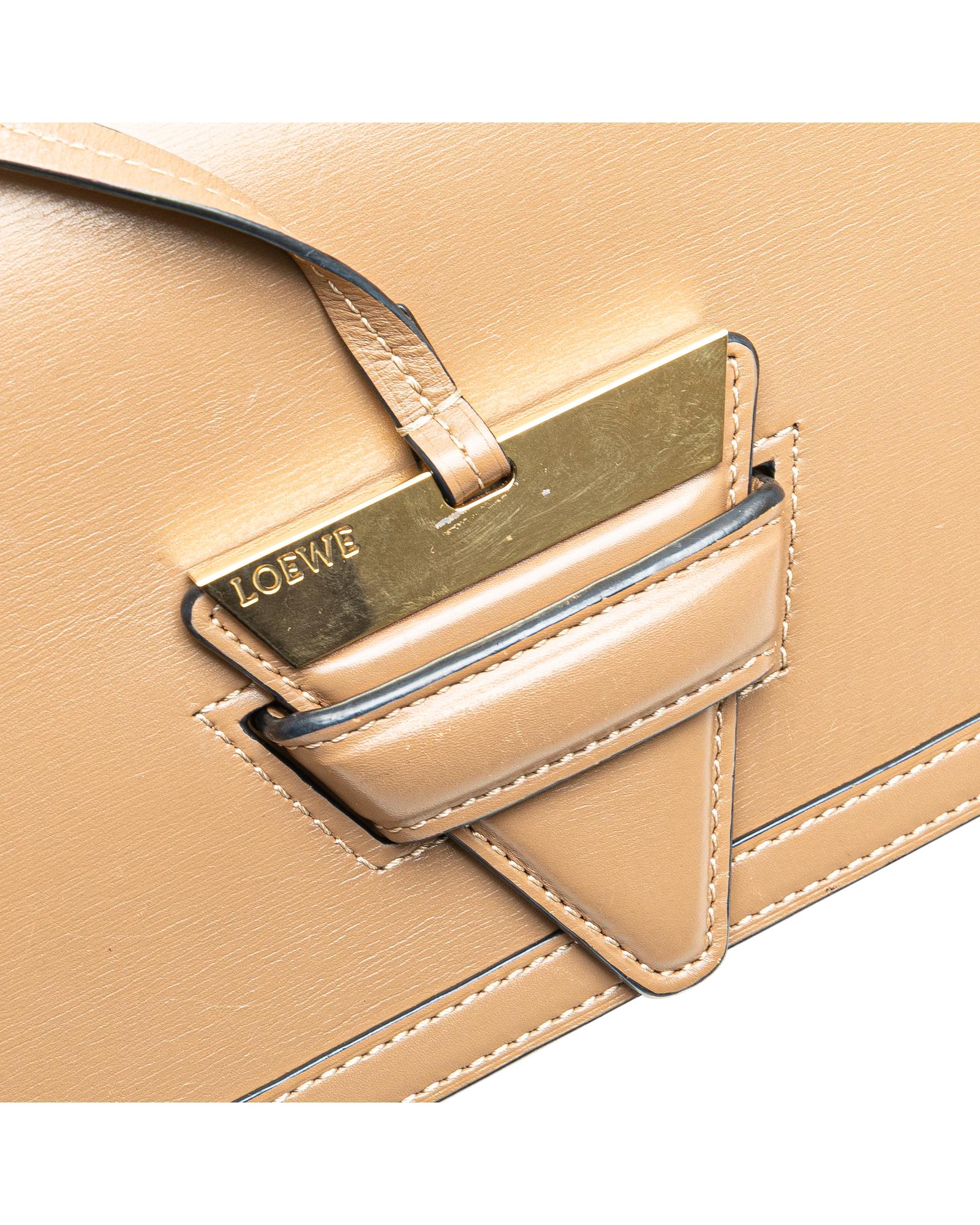 The Barcelona features a calf leather body an adjustable flat strap a top flap with slip through closure and an interior center slip pocket.Brand: LOEWE