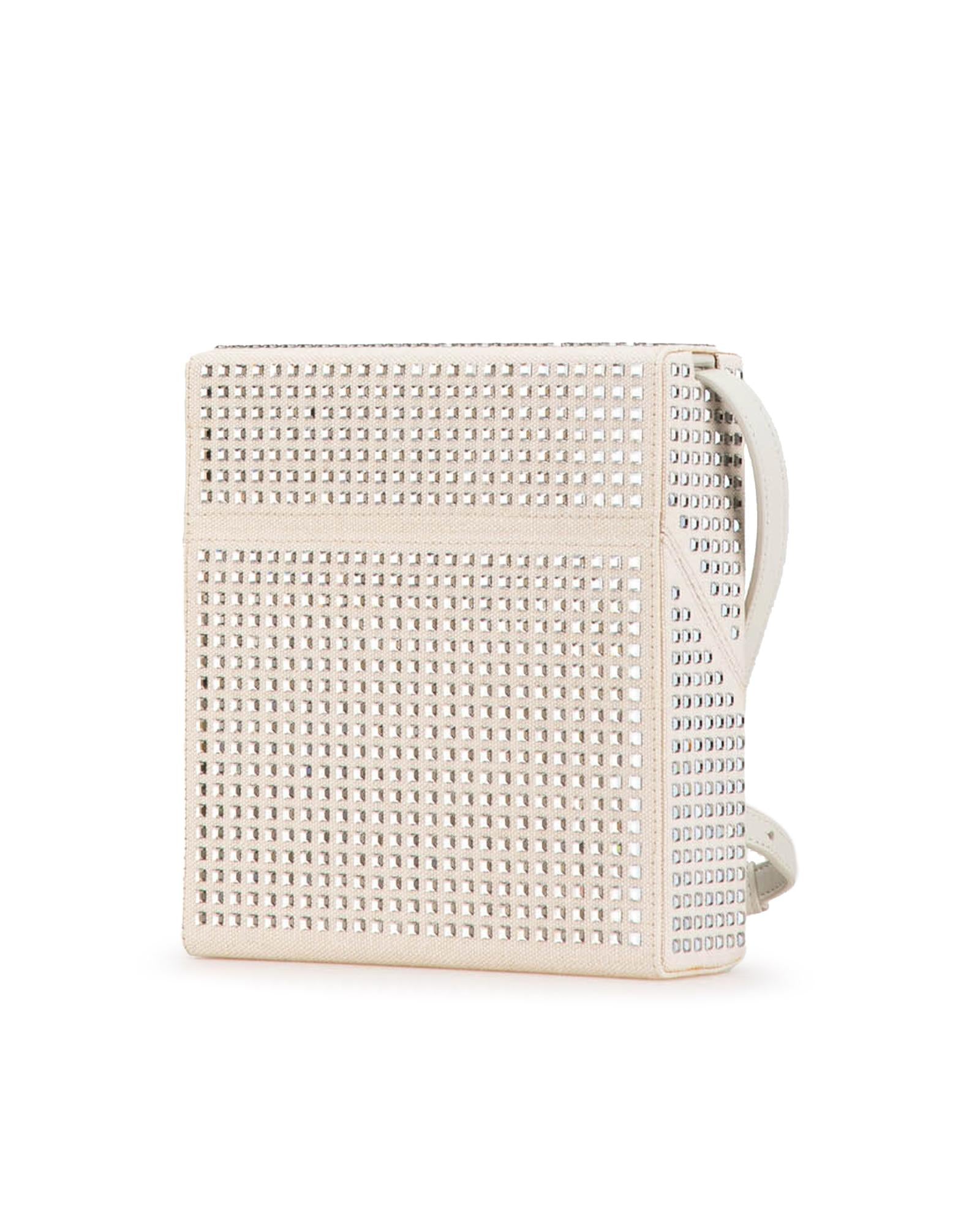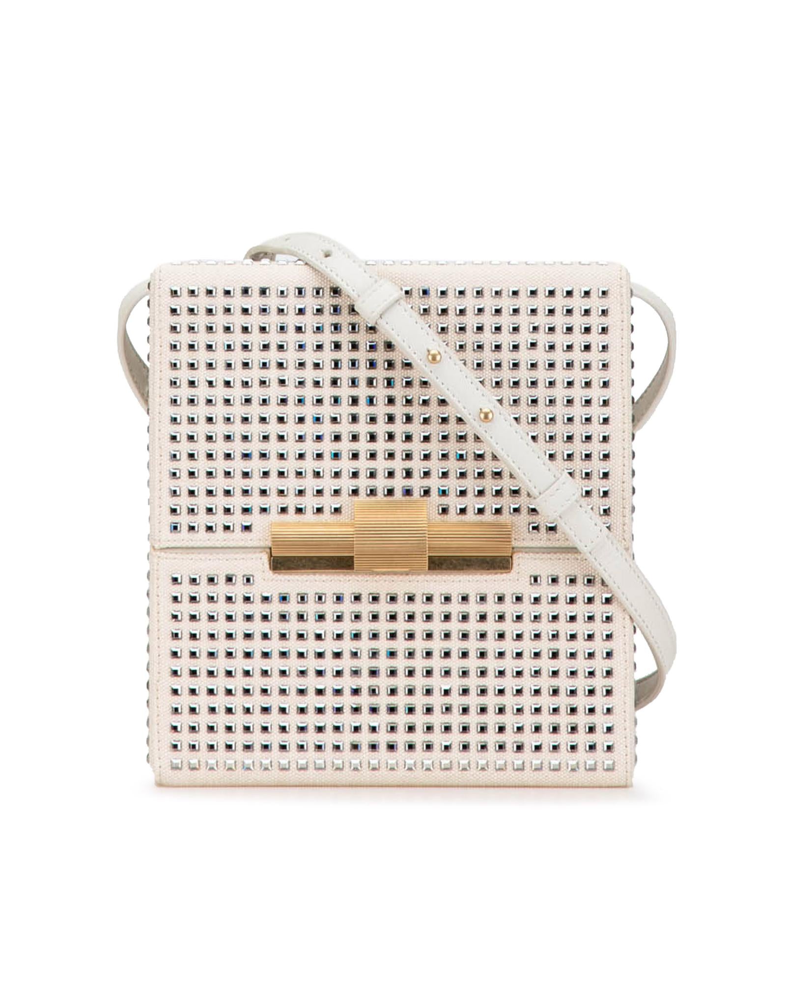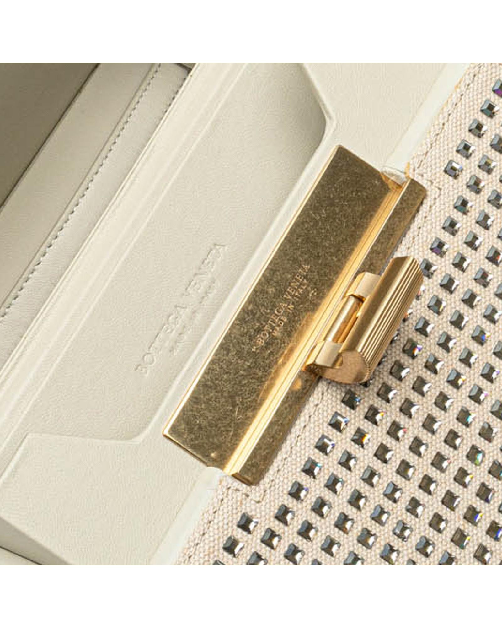 The Daisey features a crystal embellished canvas body an adjustable flat leather strap and a front flap with flip lock closure.Brand: Bottega Veneta