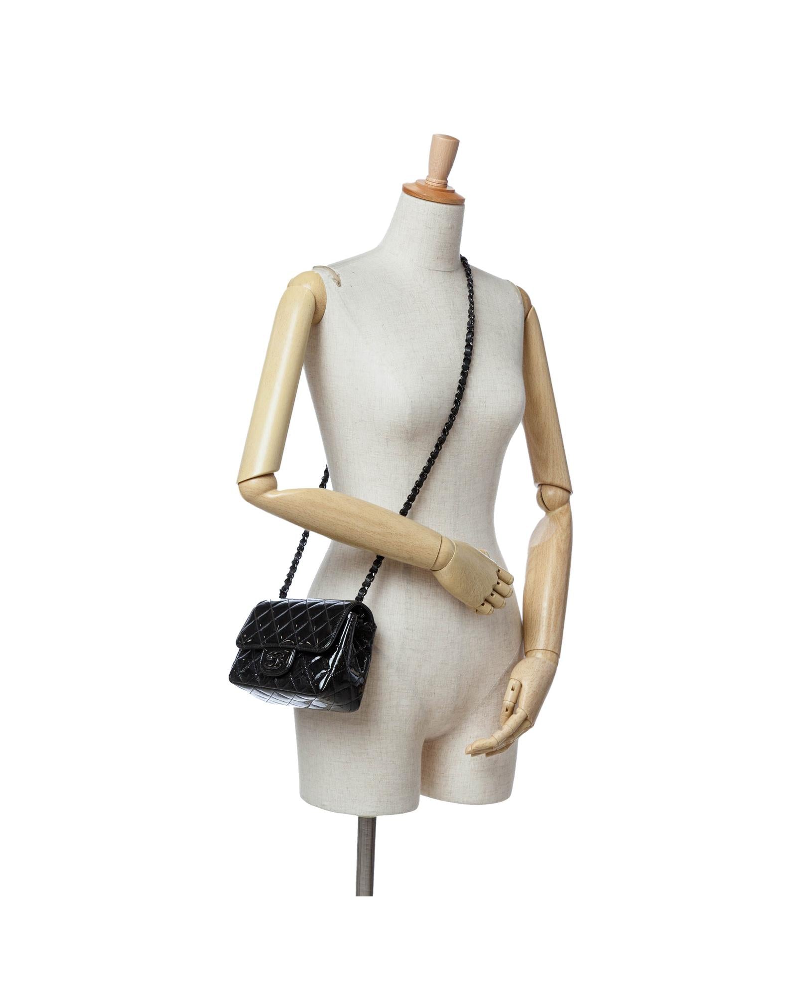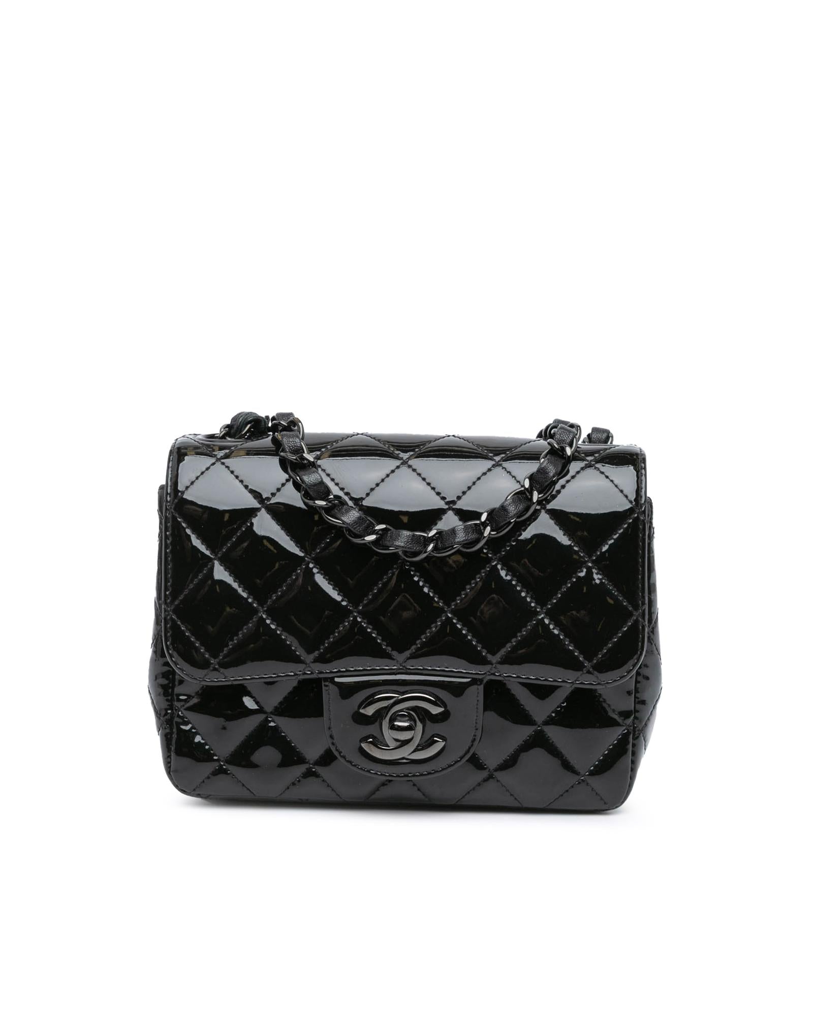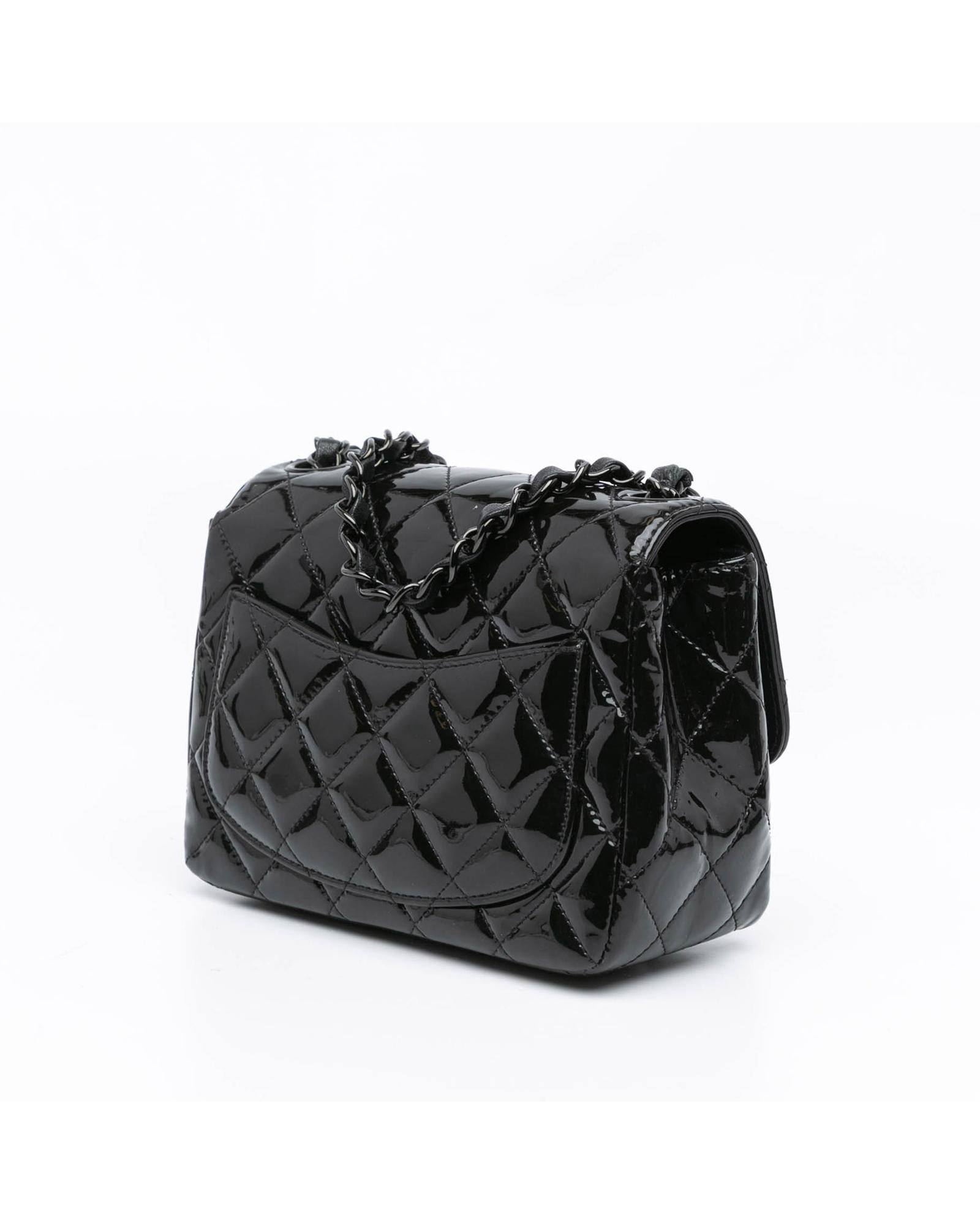 Mini Square Classic Patent Leather Flap Bag with Chain Strap