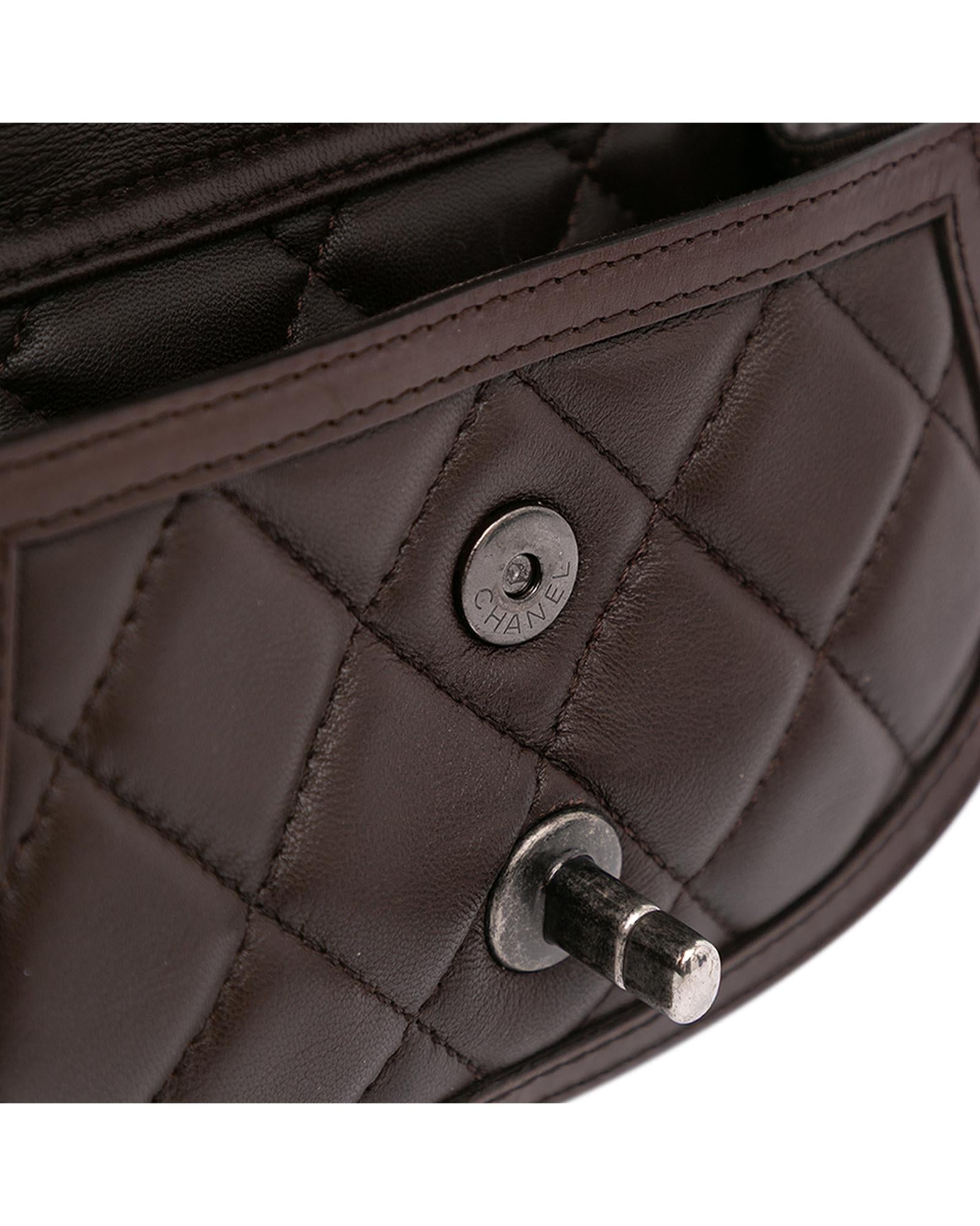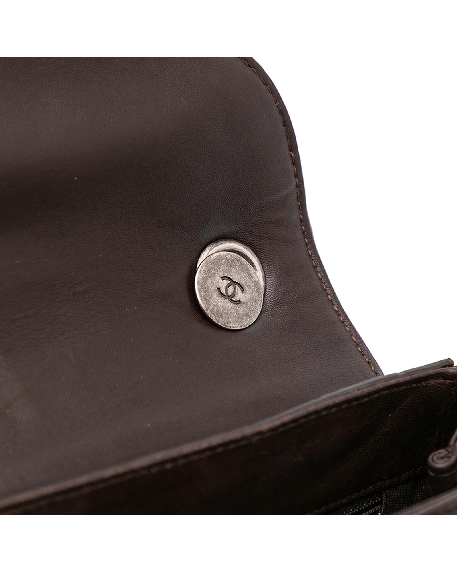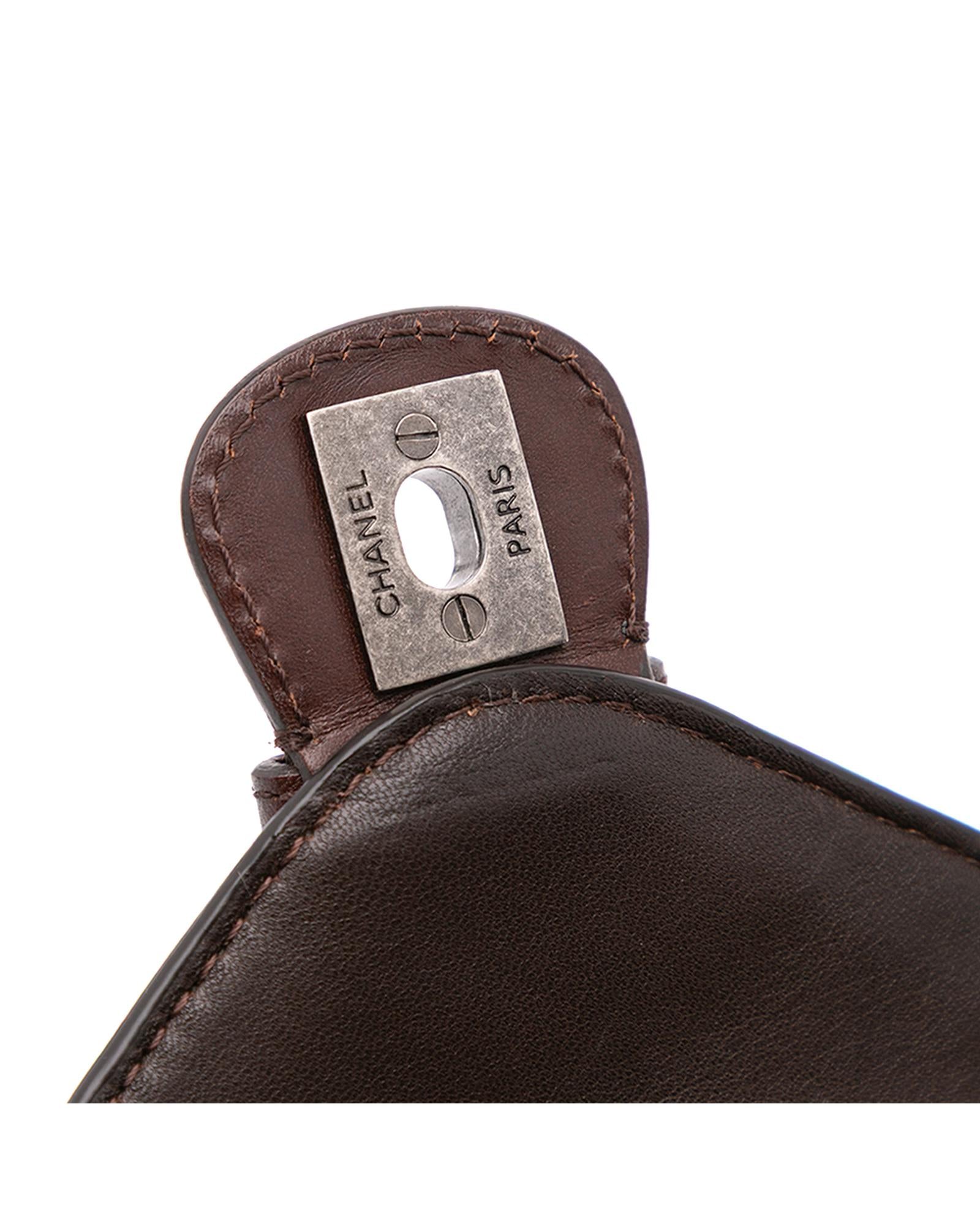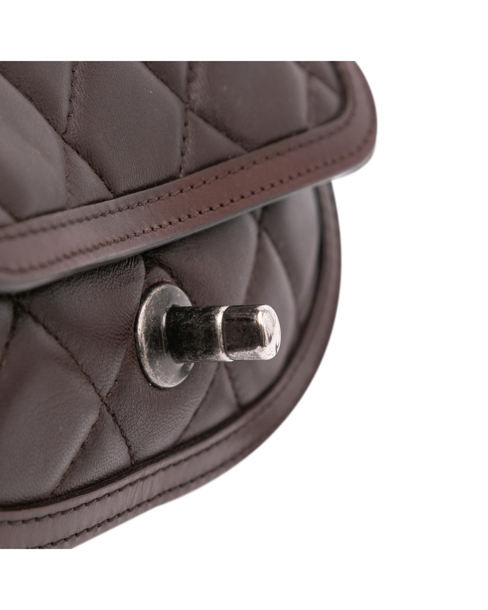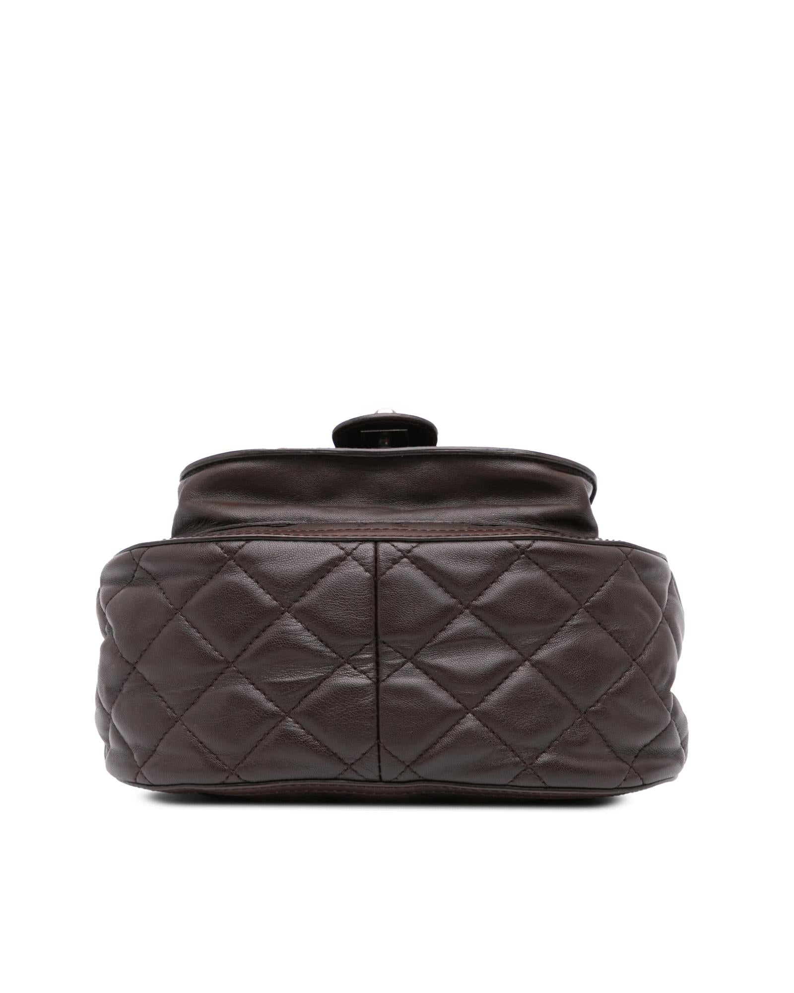 This crossbody bag features a quilted lambskin leather and pony hair body a leather woven chain link strap with leather guard a pony hair flap with turn-lock closure and interior zip and slip pockets.Brand: Chanel