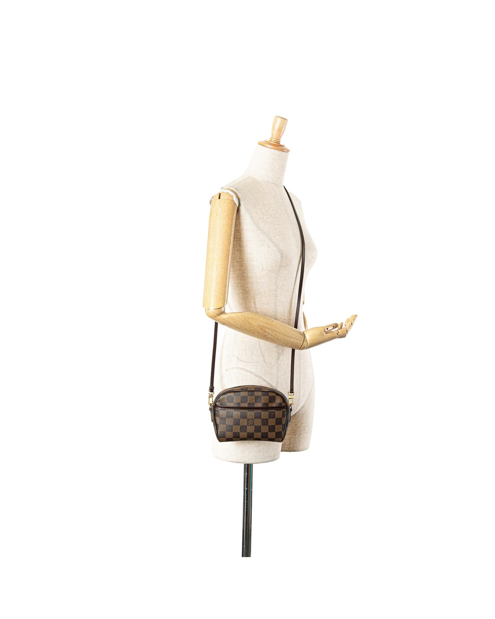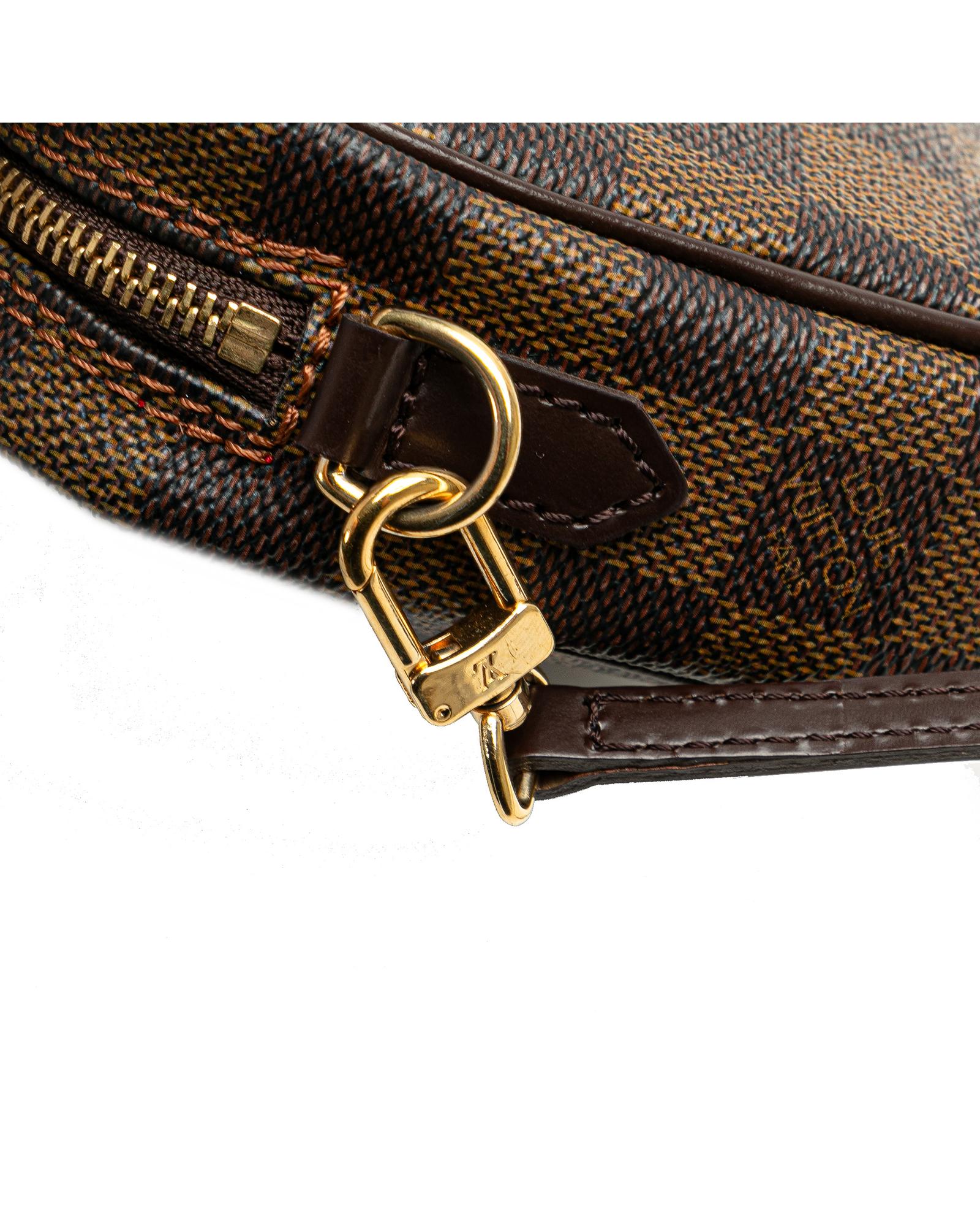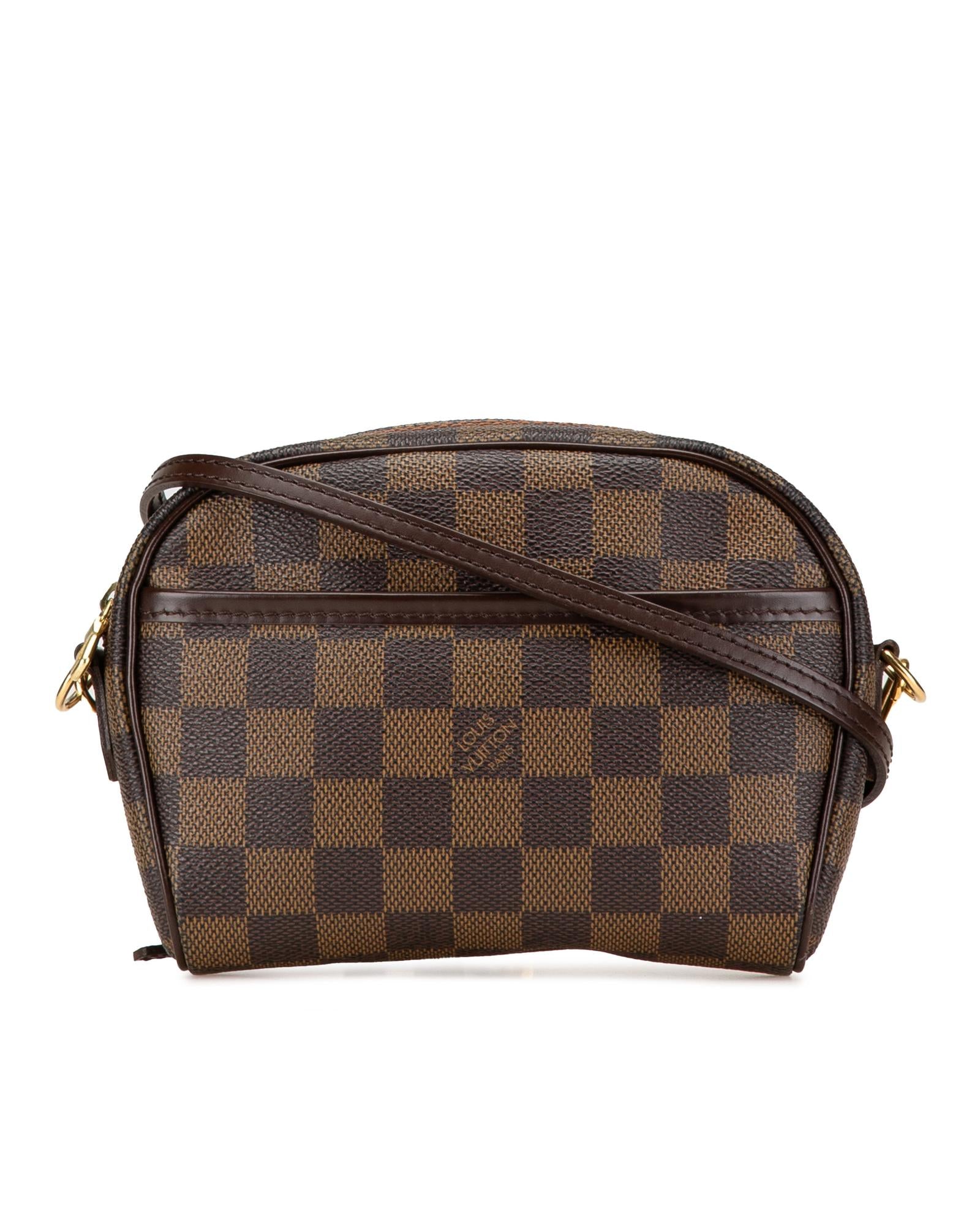 The Ipanema Pochette features a damier ebene canvas body a flat leather strap an exterior front slip pocket and a top zip closure.Brand: Louis Vuitton