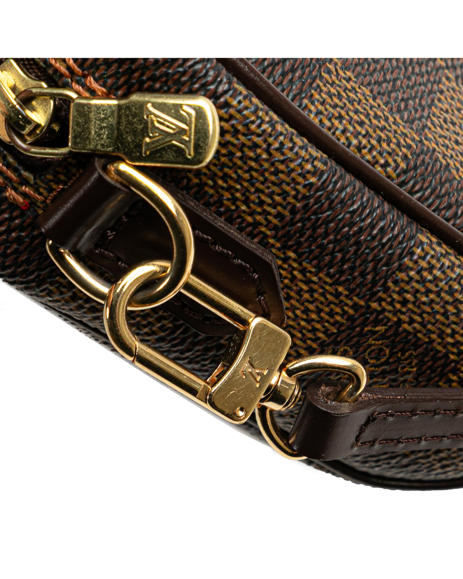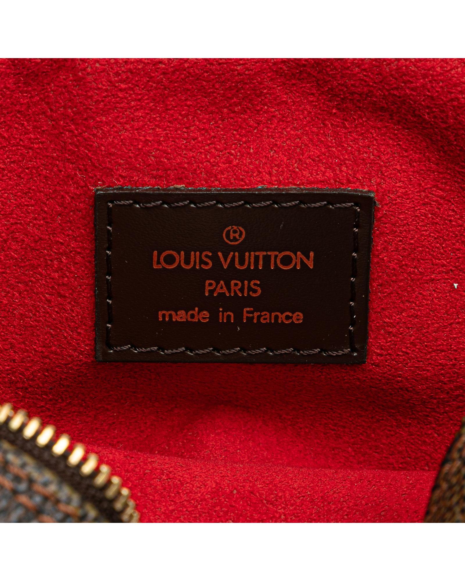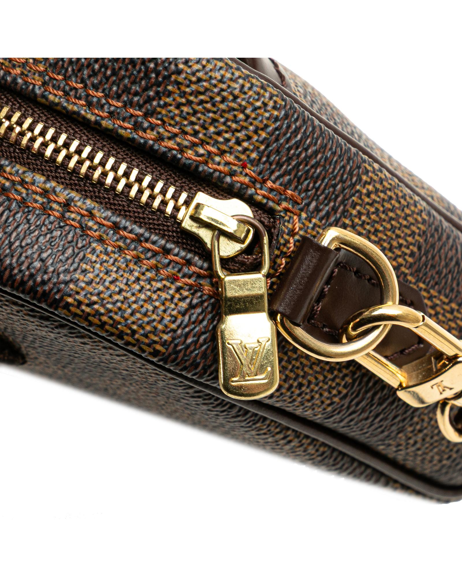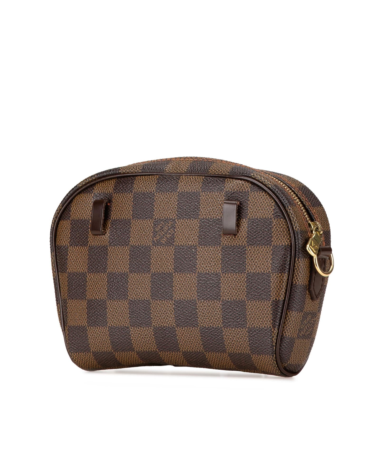 The Ipanema Pochette features a damier ebene canvas body a flat leather strap an exterior front slip pocket and a top zip closure.Brand: Louis Vuitton
