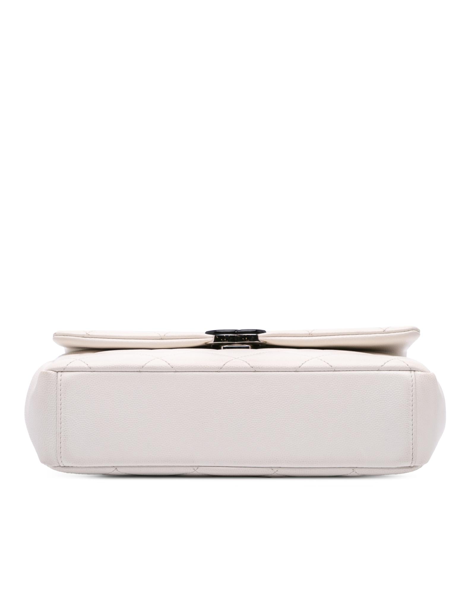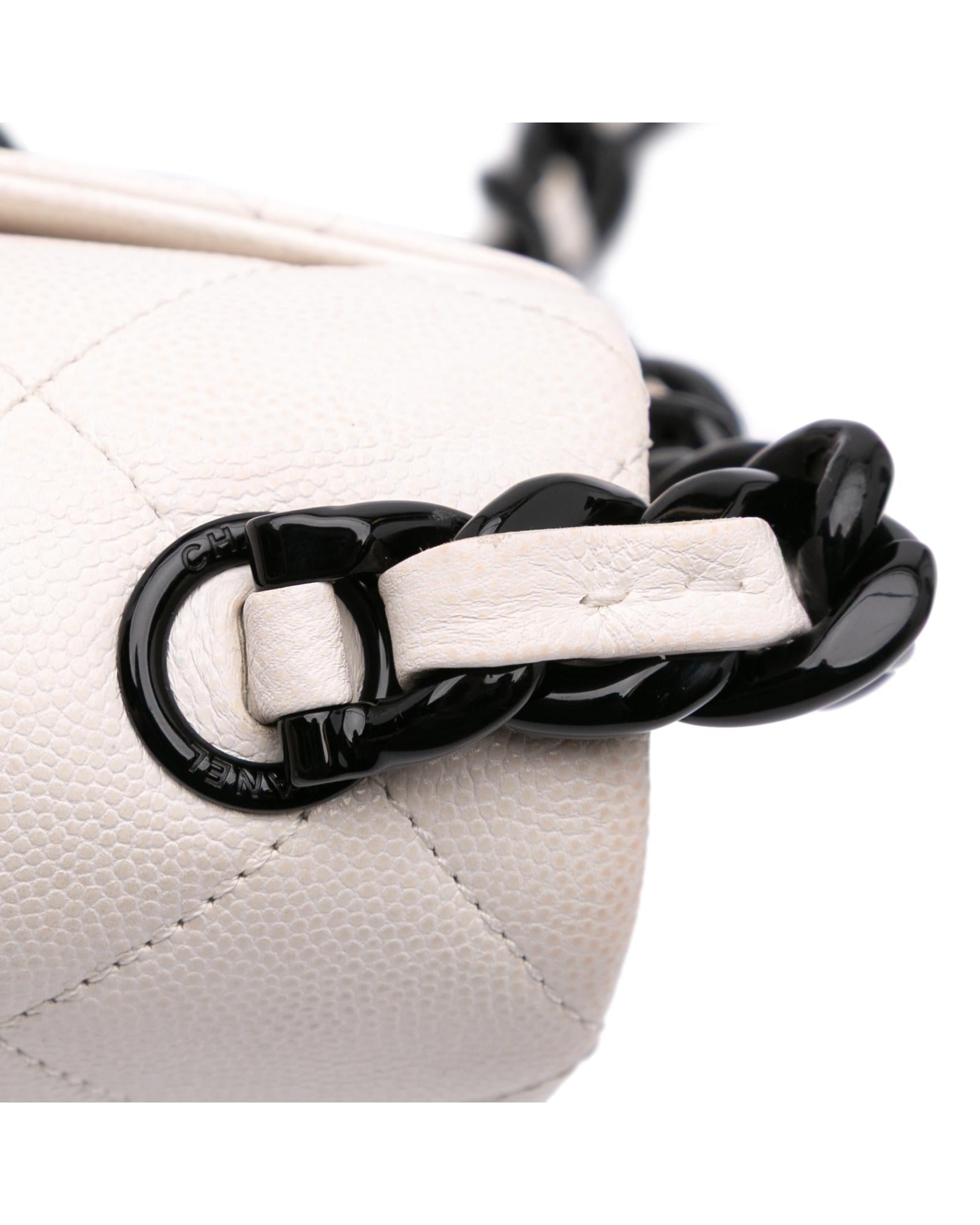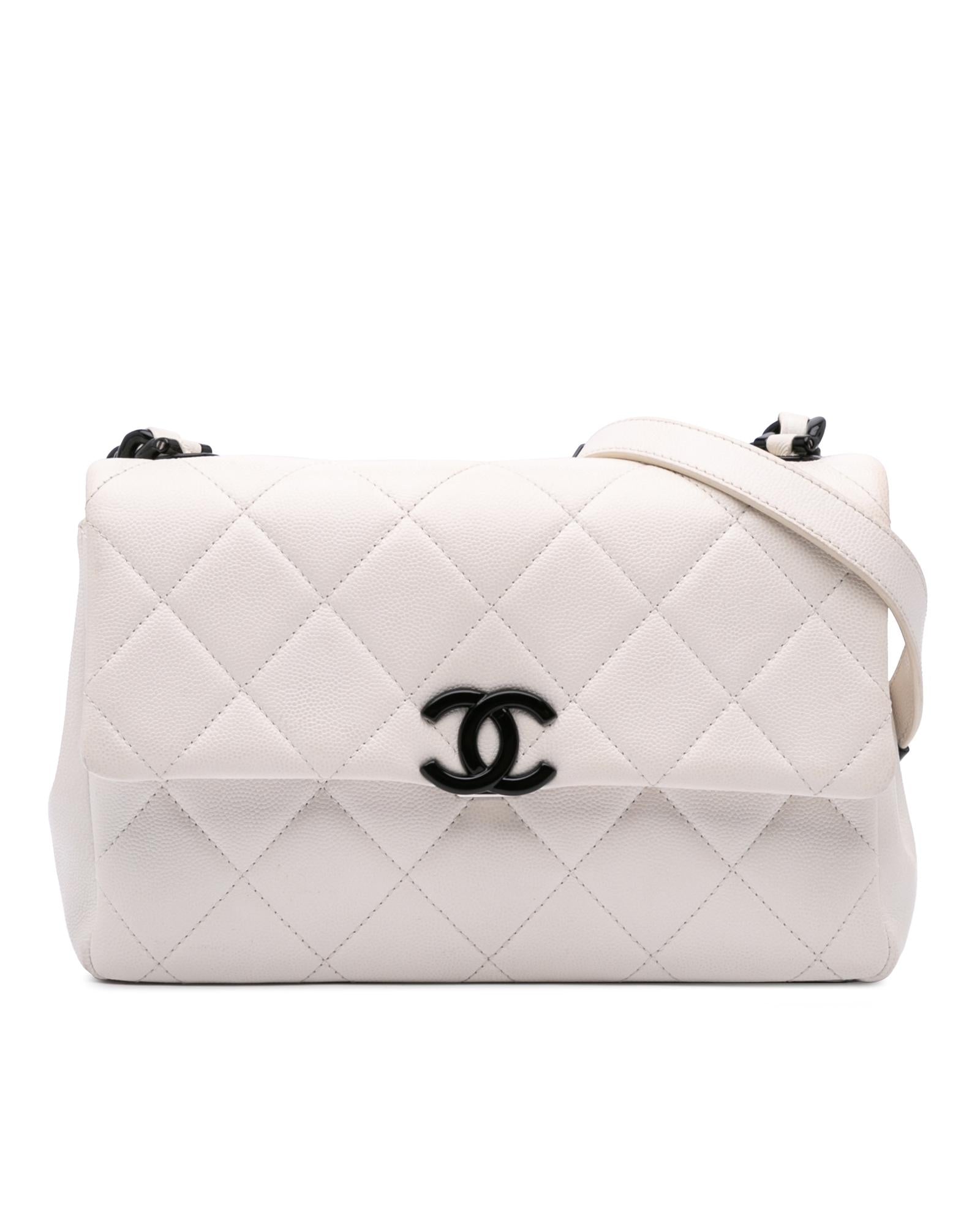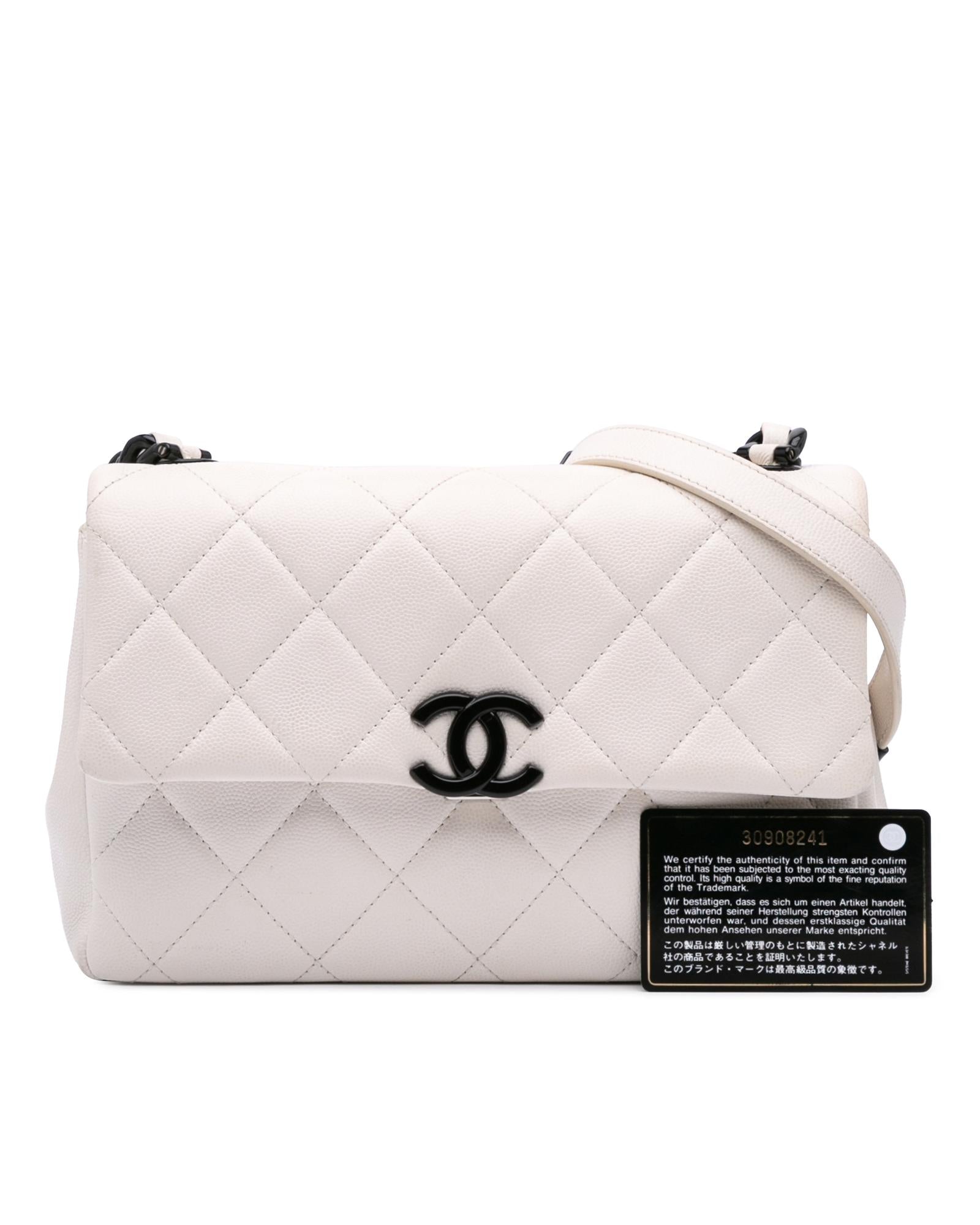 This crossbody bag features a quilted caviar leather body a leather-woven chain link strap with leather shoulder guard a front flap with clasp closure an exterior back slip pocket and an interior zip pocket.Brand: Chanel