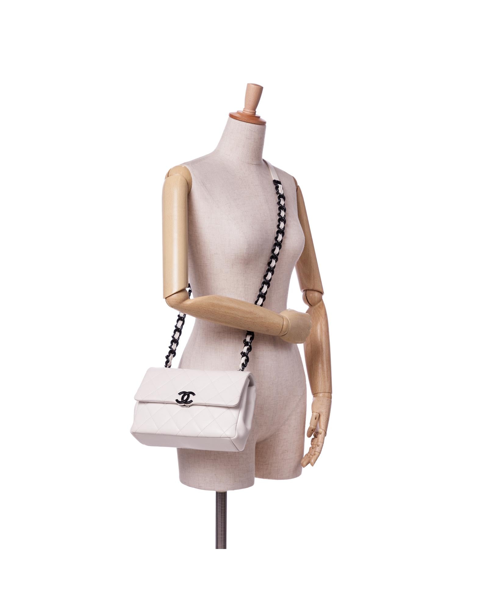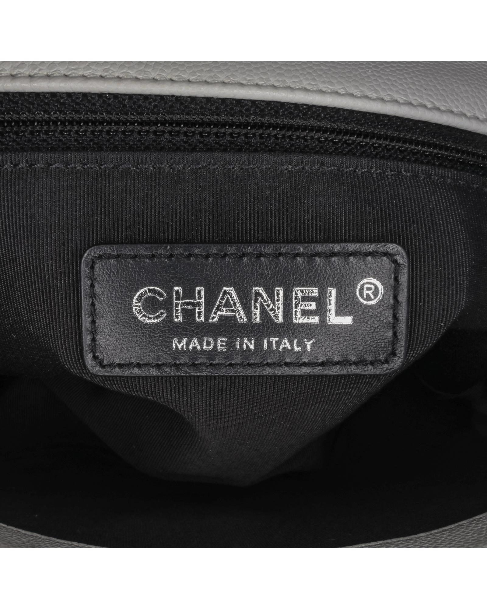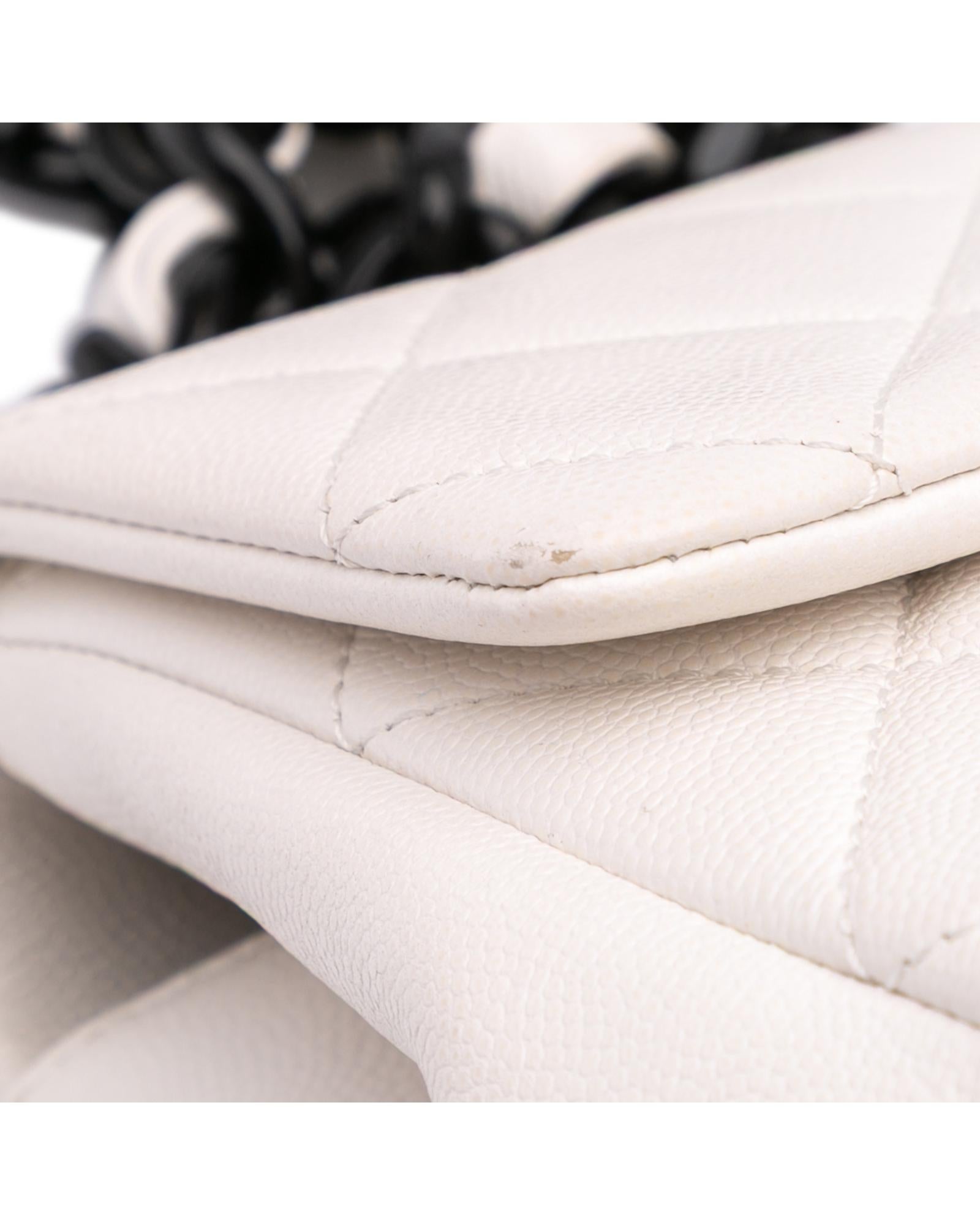 This crossbody bag features a quilted caviar leather body a leather-woven chain link strap with leather shoulder guard a front flap with clasp closure an exterior back slip pocket and an interior zip pocket.Brand: Chanel