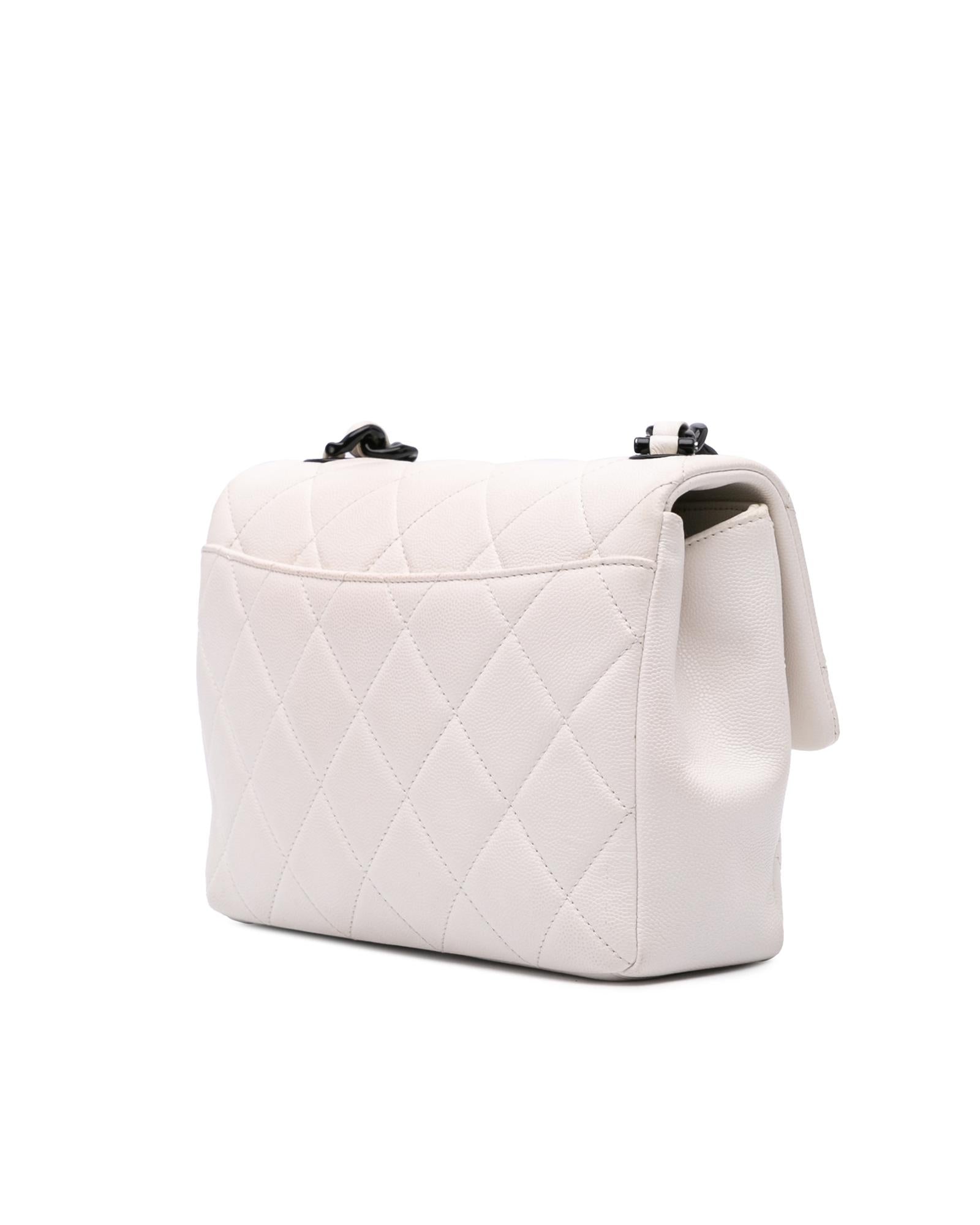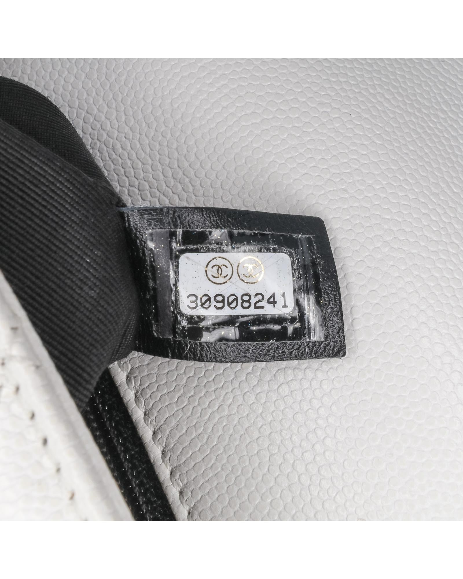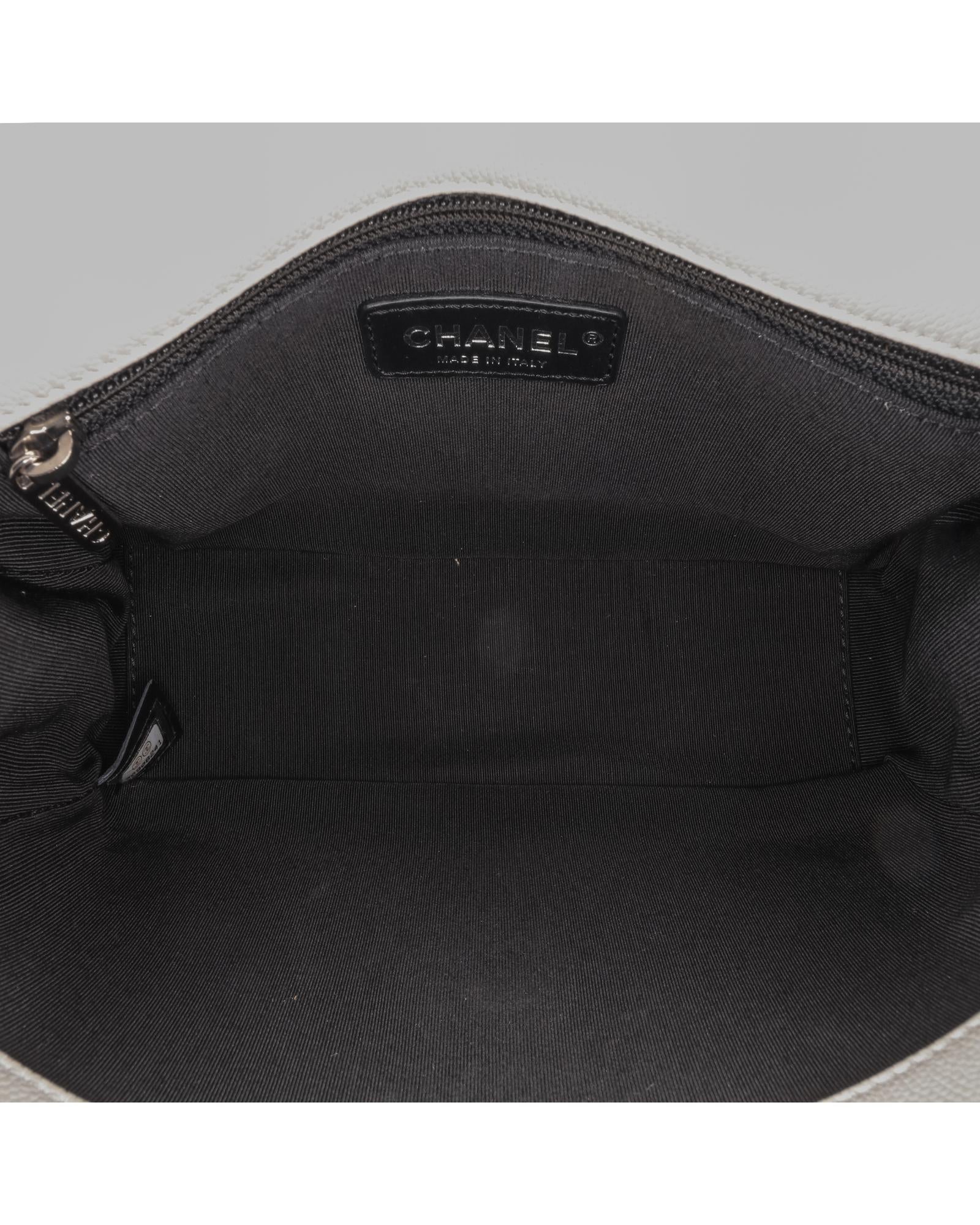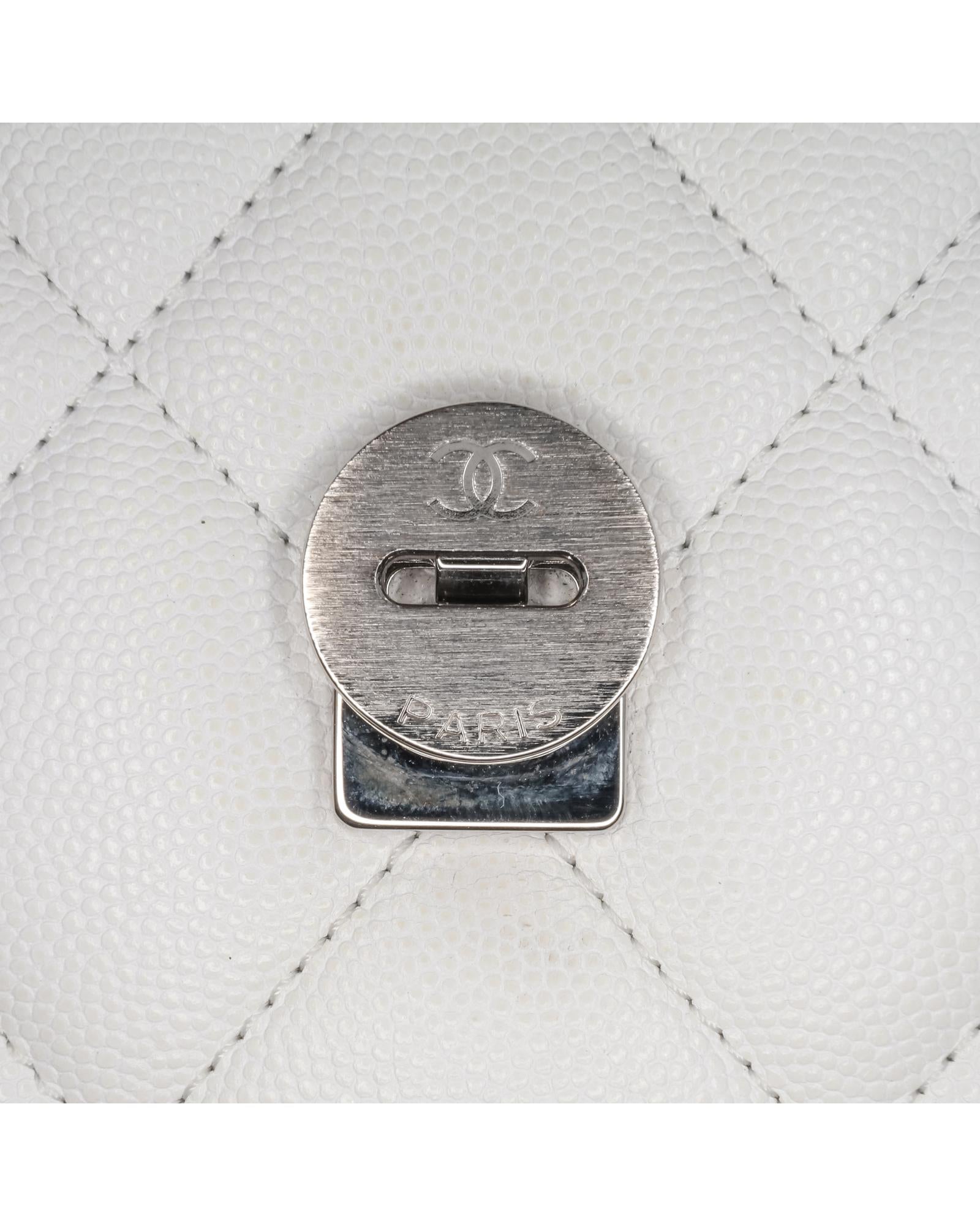 This crossbody bag features a quilted caviar leather body a leather-woven chain link strap with leather shoulder guard a front flap with clasp closure an exterior back slip pocket and an interior zip pocket.Brand: Chanel