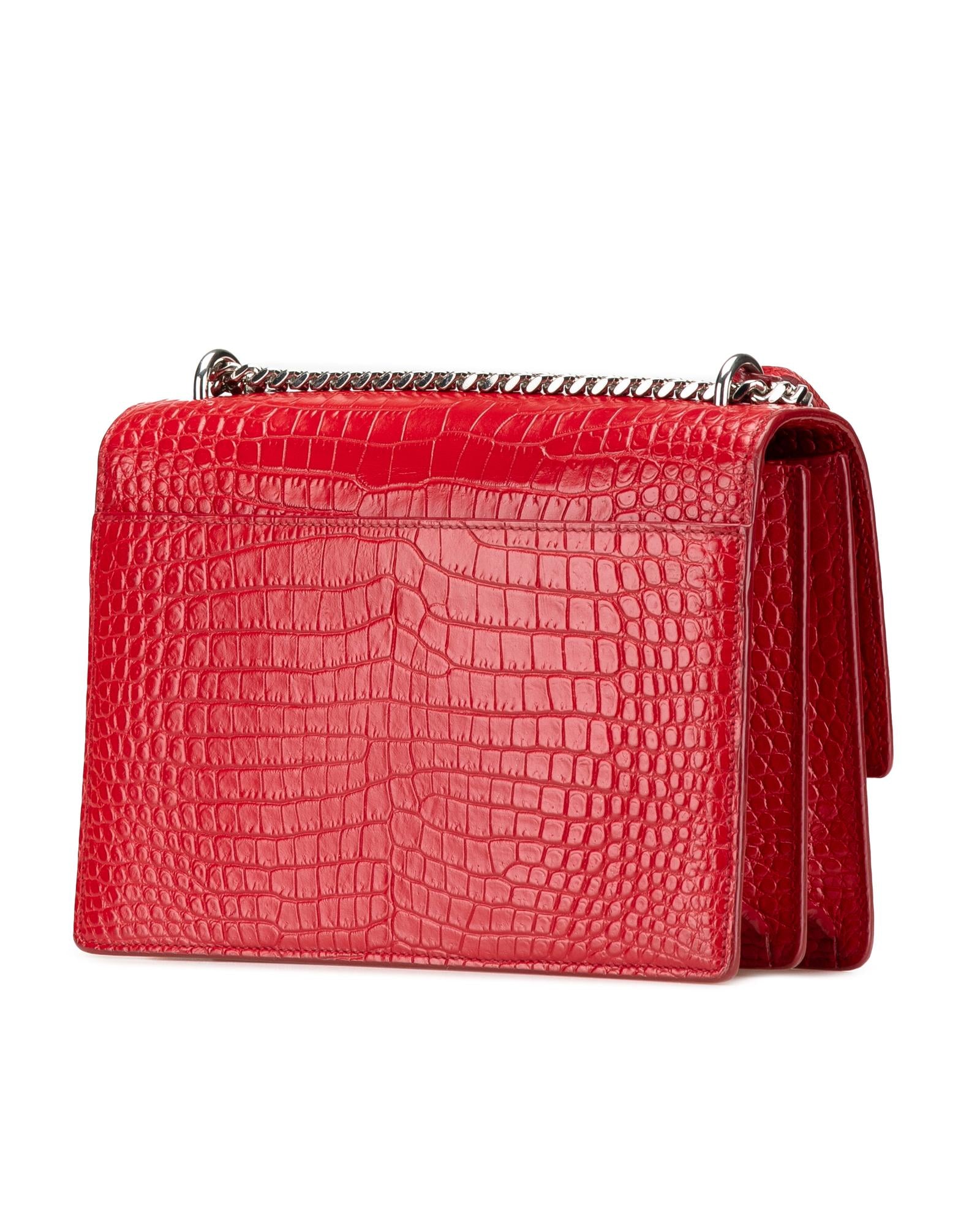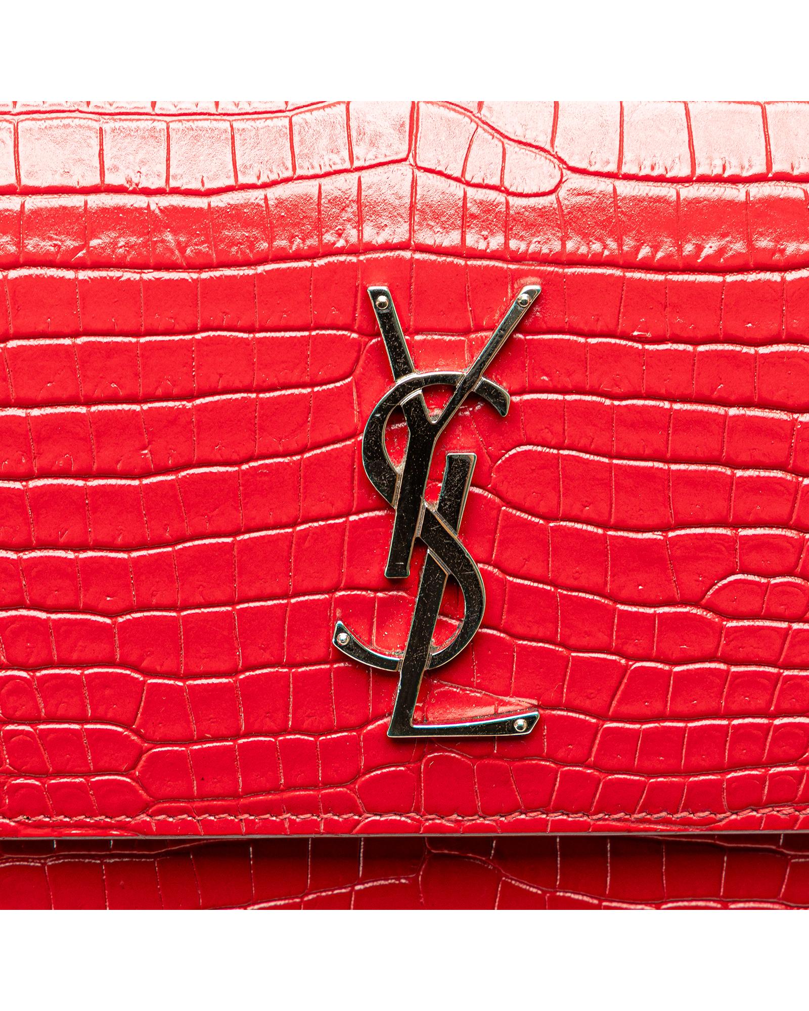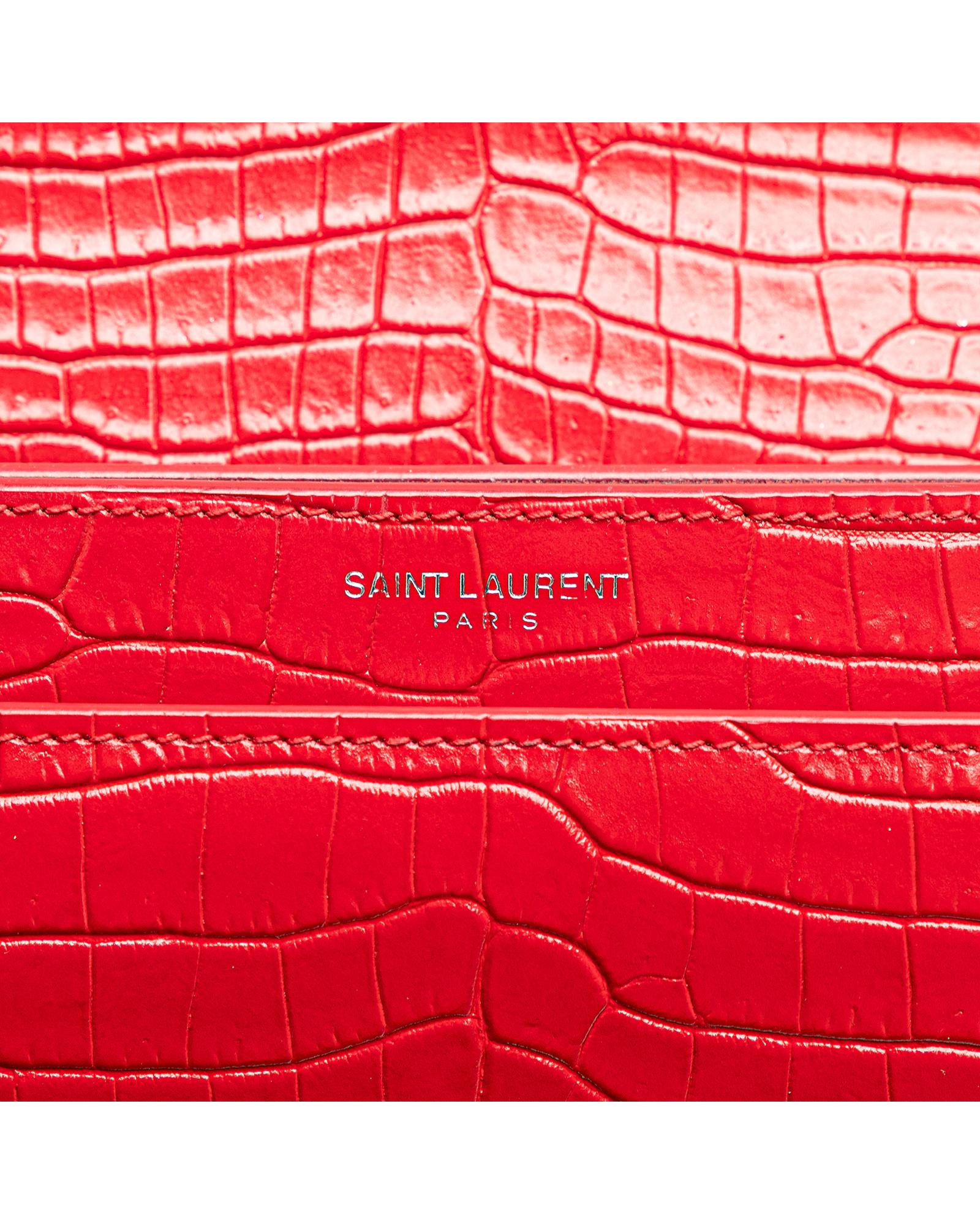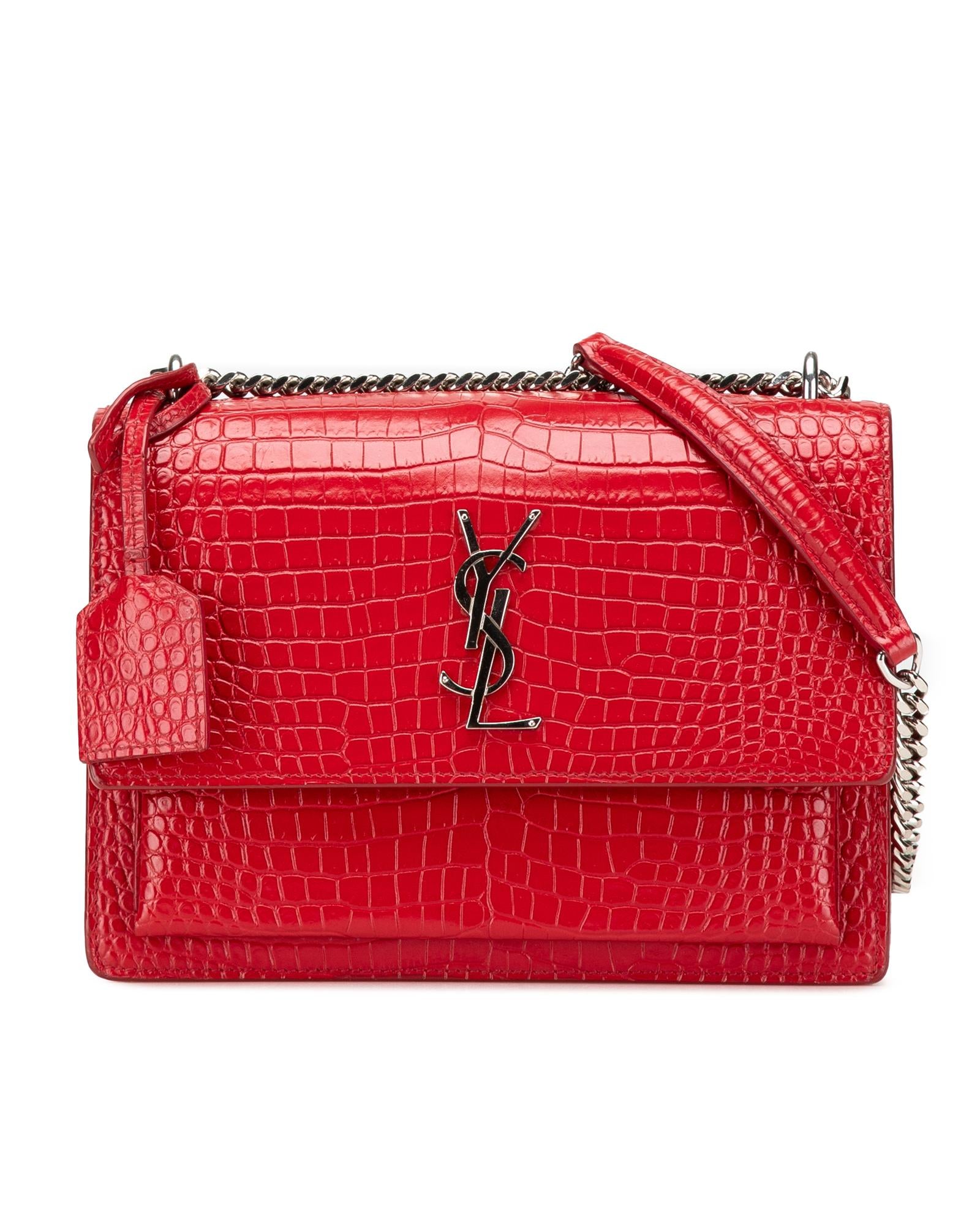 The Sunset features an embossed leather body s chain strap with leather guard a top flap with magnetic snap button closure and interior slip pockets.Brand: Saint Laurent