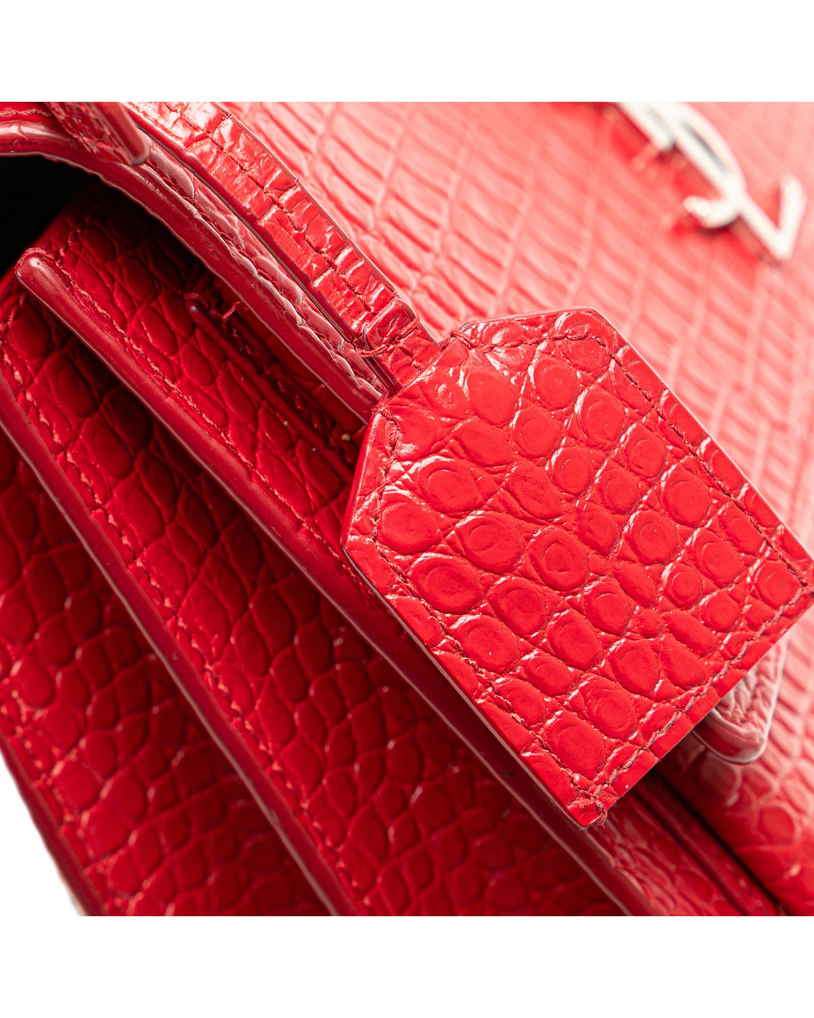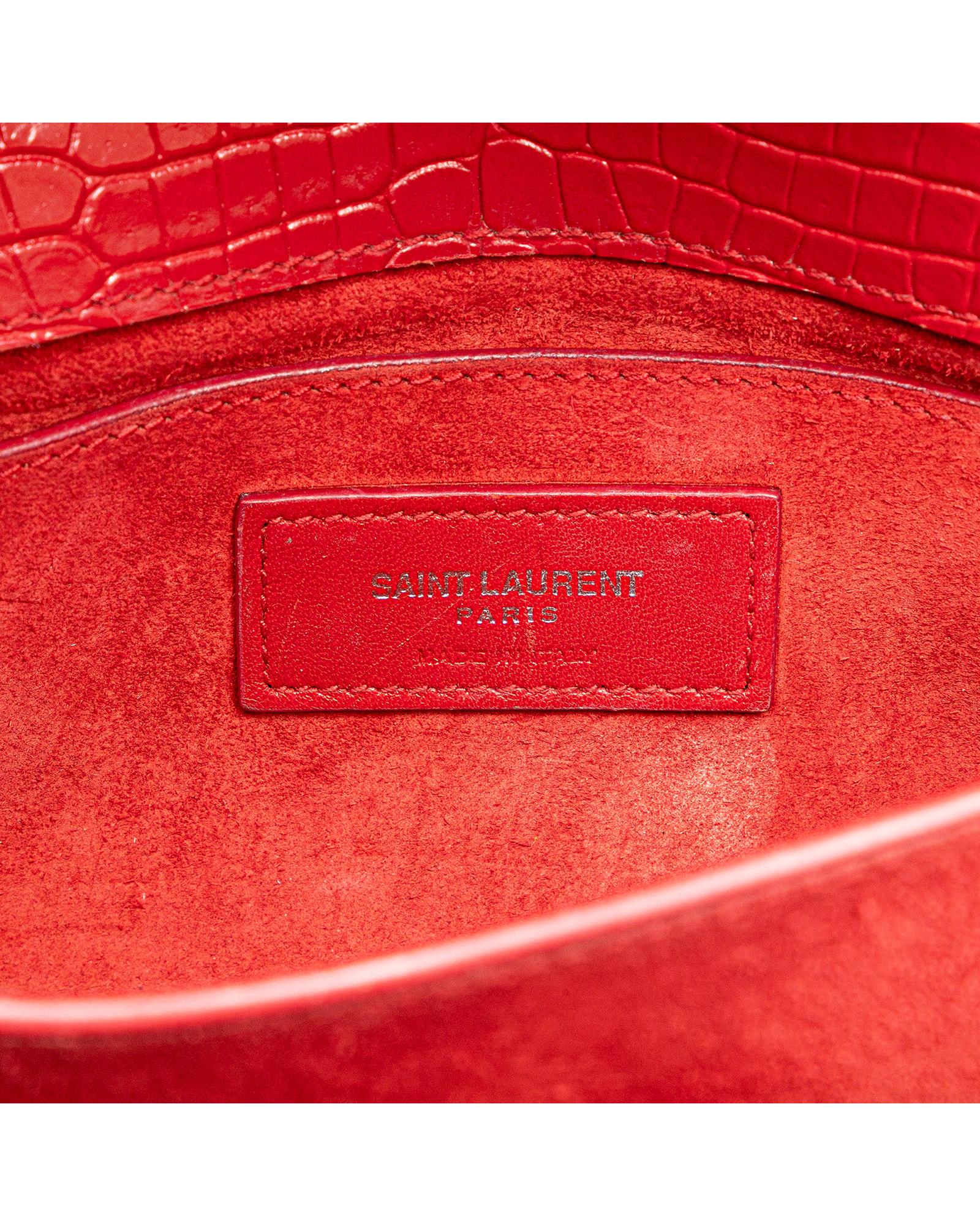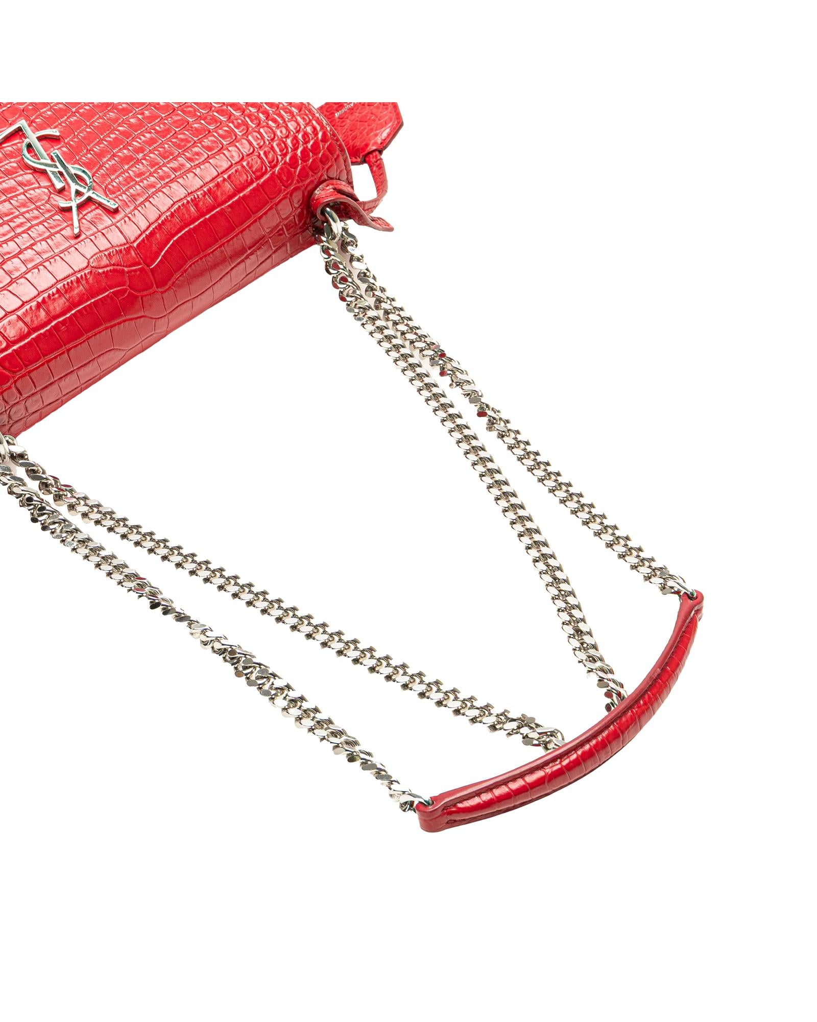 The Sunset features an embossed leather body s chain strap with leather guard a top flap with magnetic snap button closure and interior slip pockets.Brand: Saint Laurent