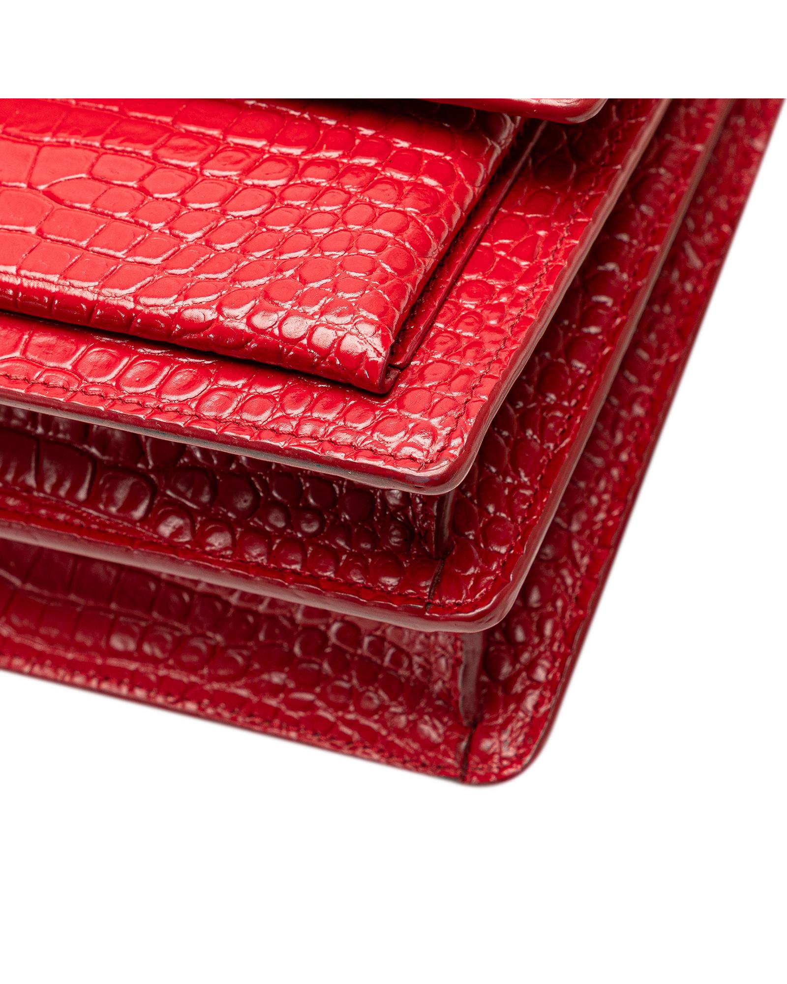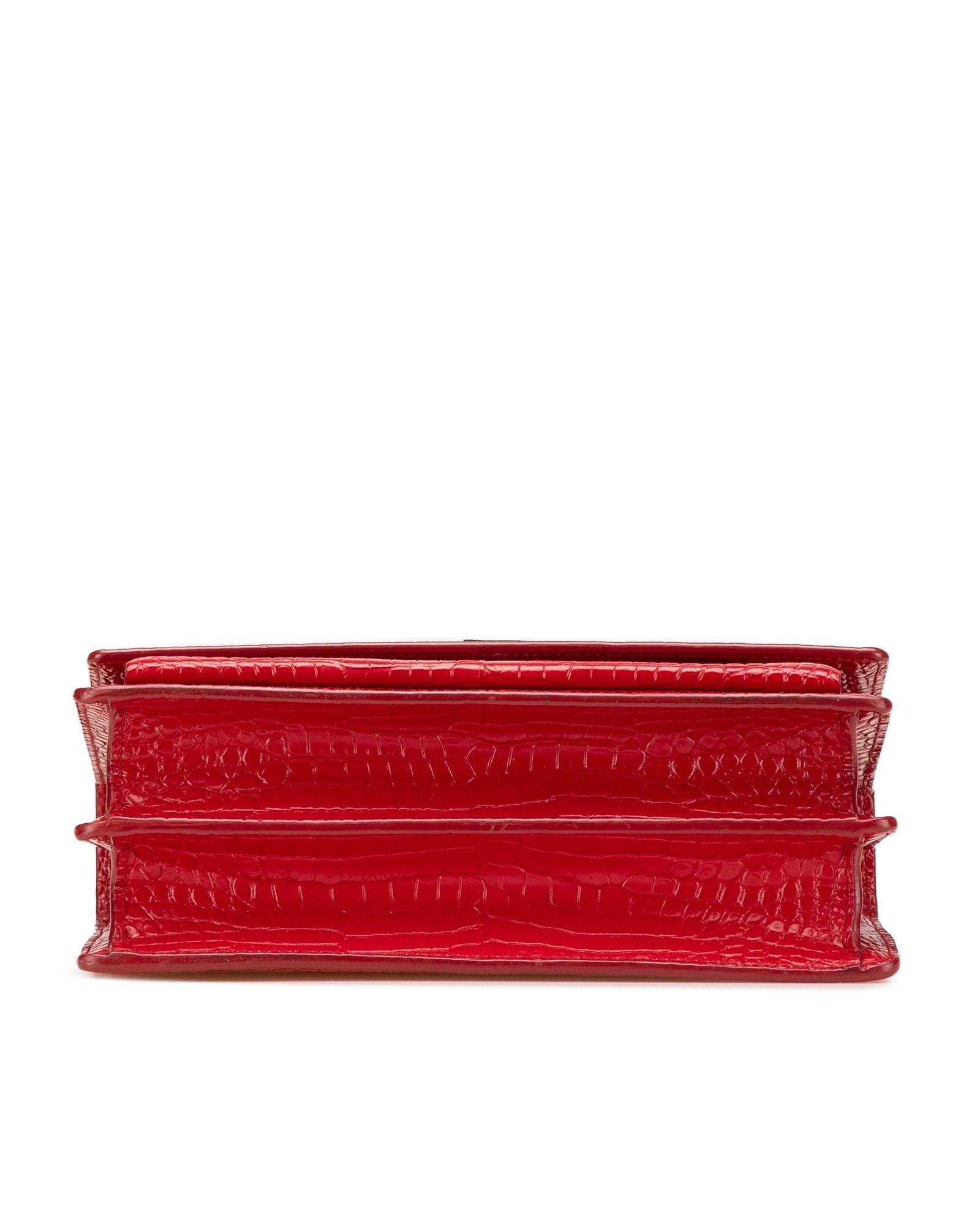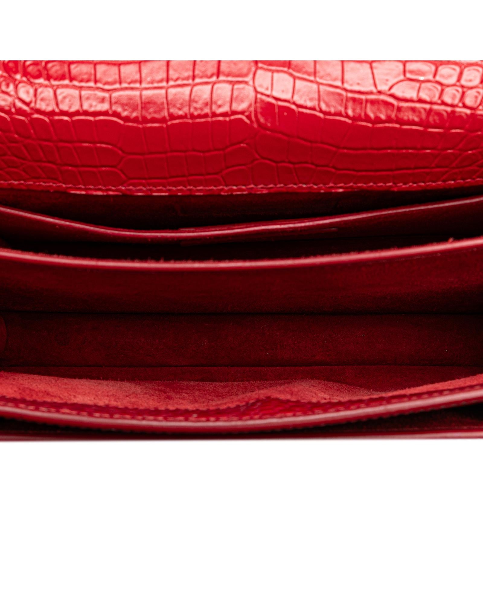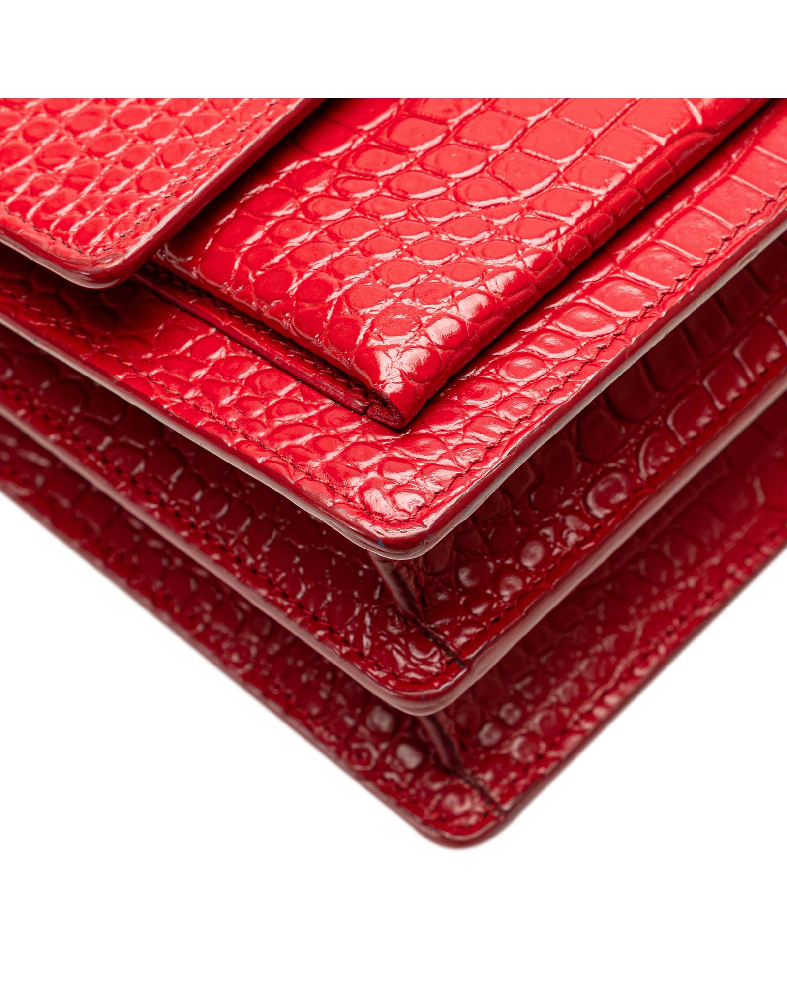 The Sunset features an embossed leather body s chain strap with leather guard a top flap with magnetic snap button closure and interior slip pockets.Brand: Saint Laurent