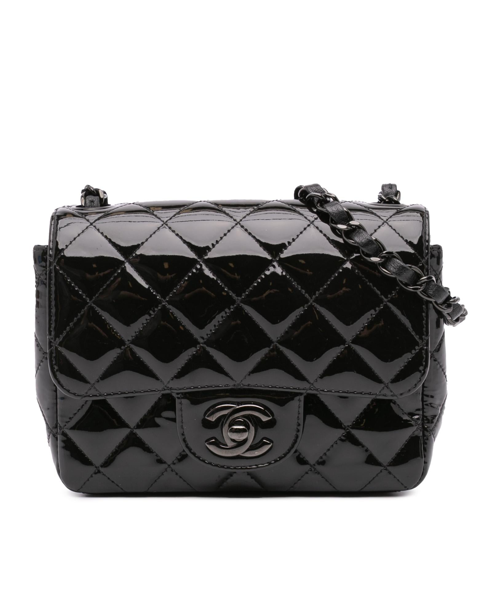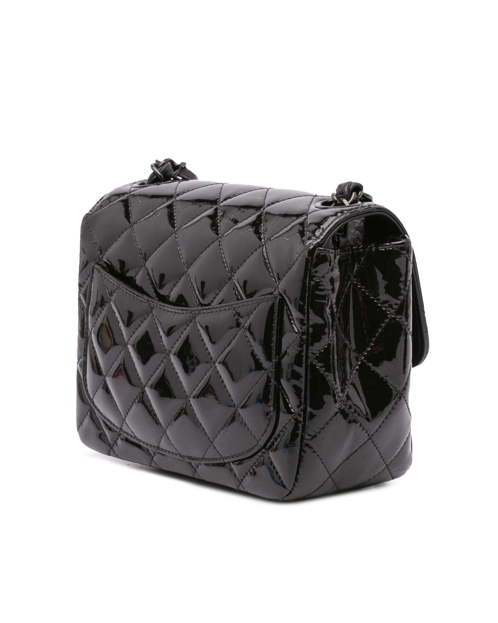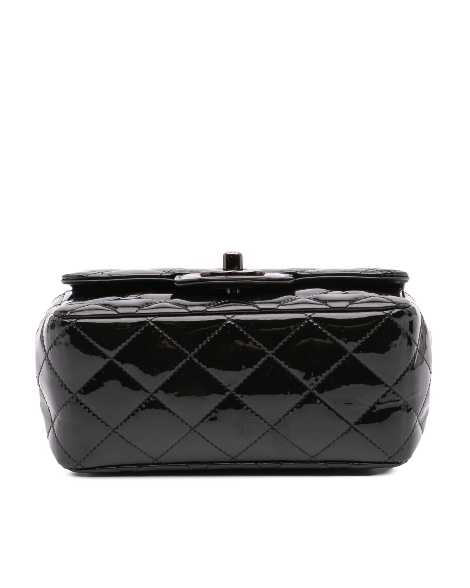 Mini Square Classic Patent Single Flap Bag with Black Hardware