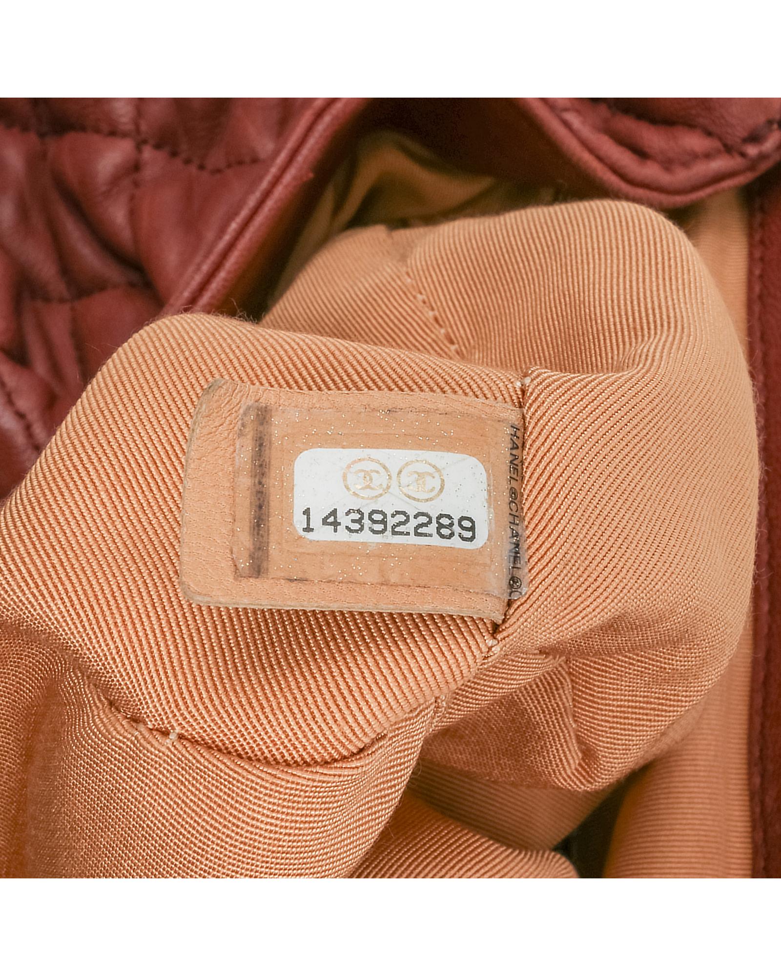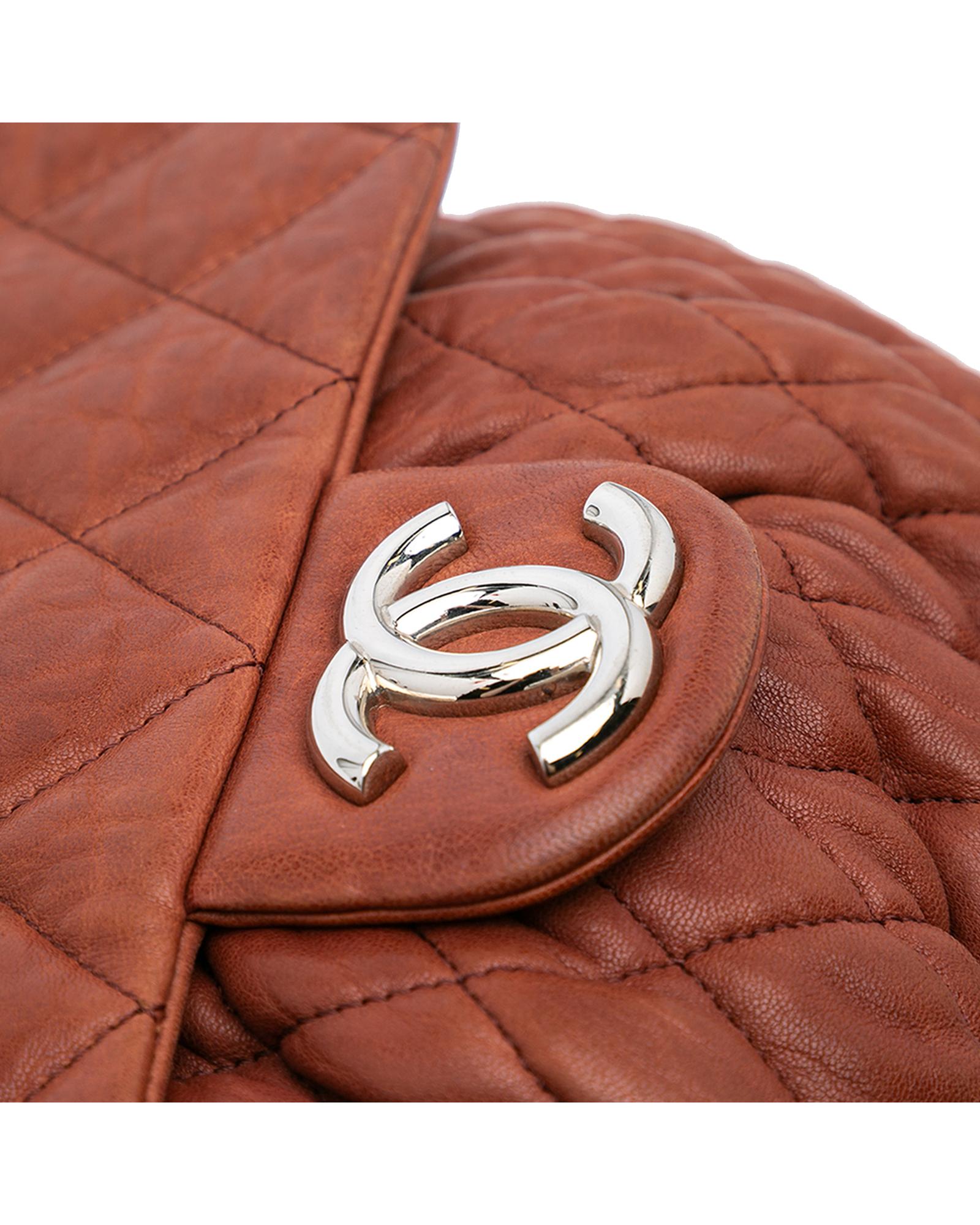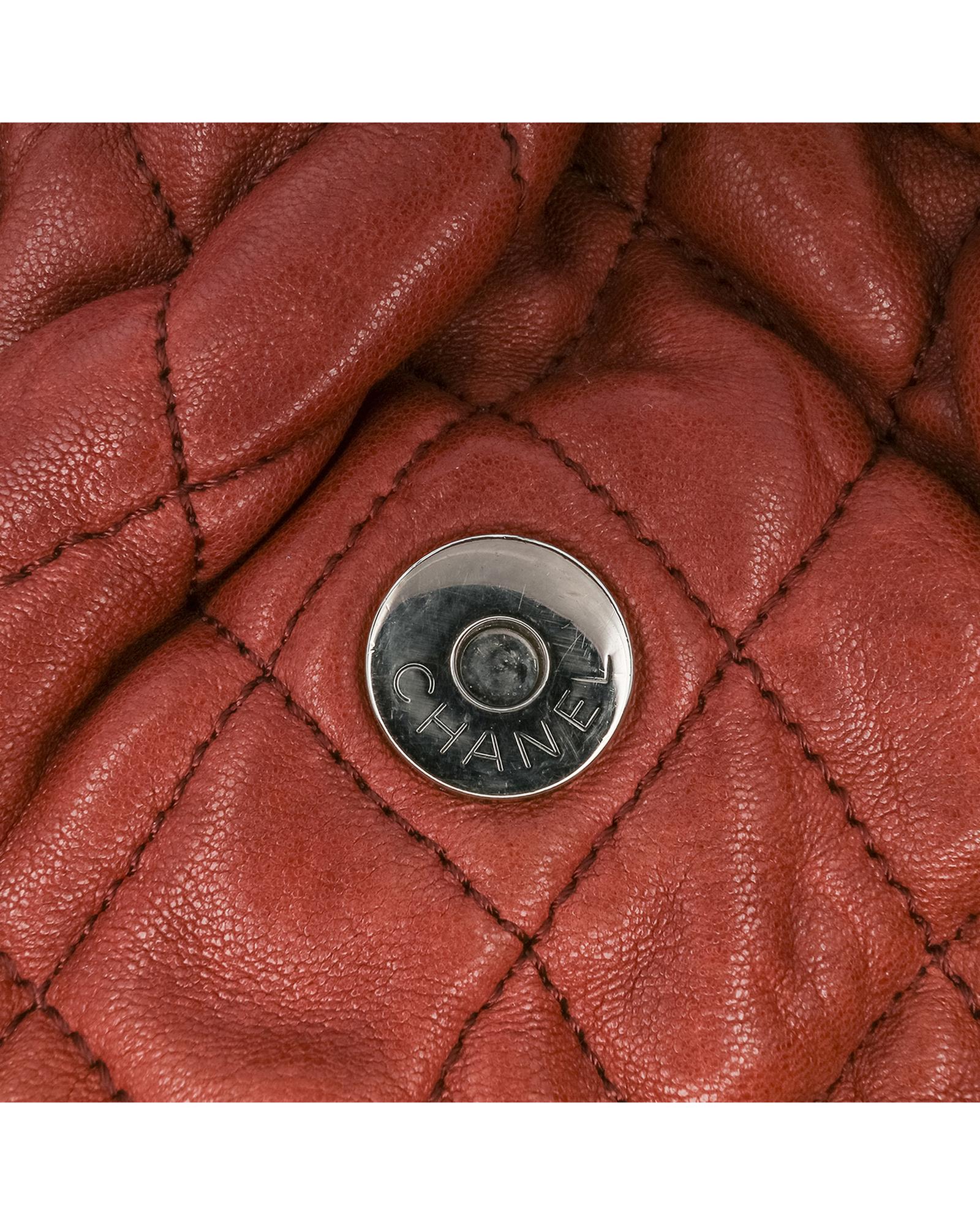 The Chain Around Flap features a lambskin leather body a leather woven chain link strap a front flap with magnetic snap closure and interior zip and slip pockets.