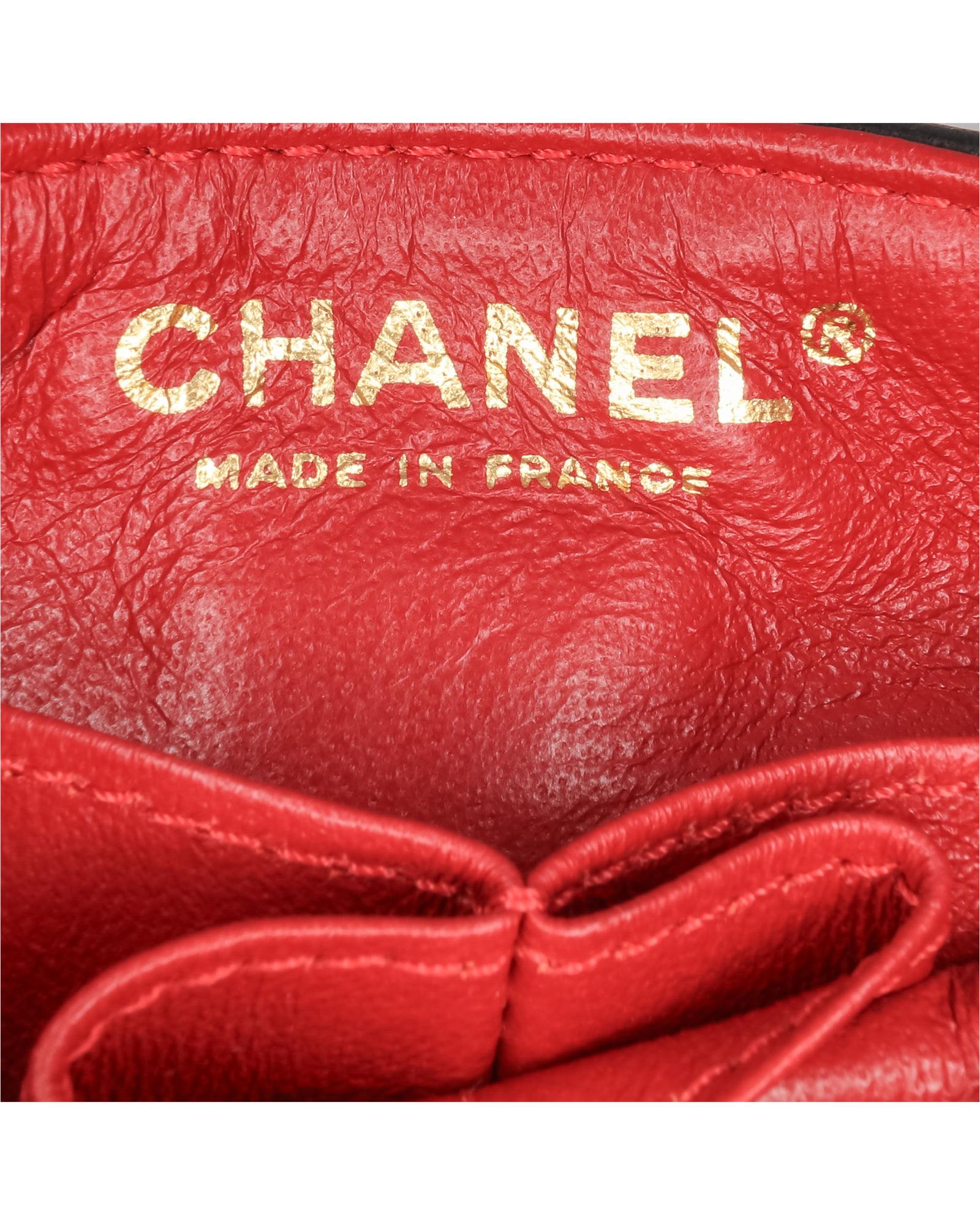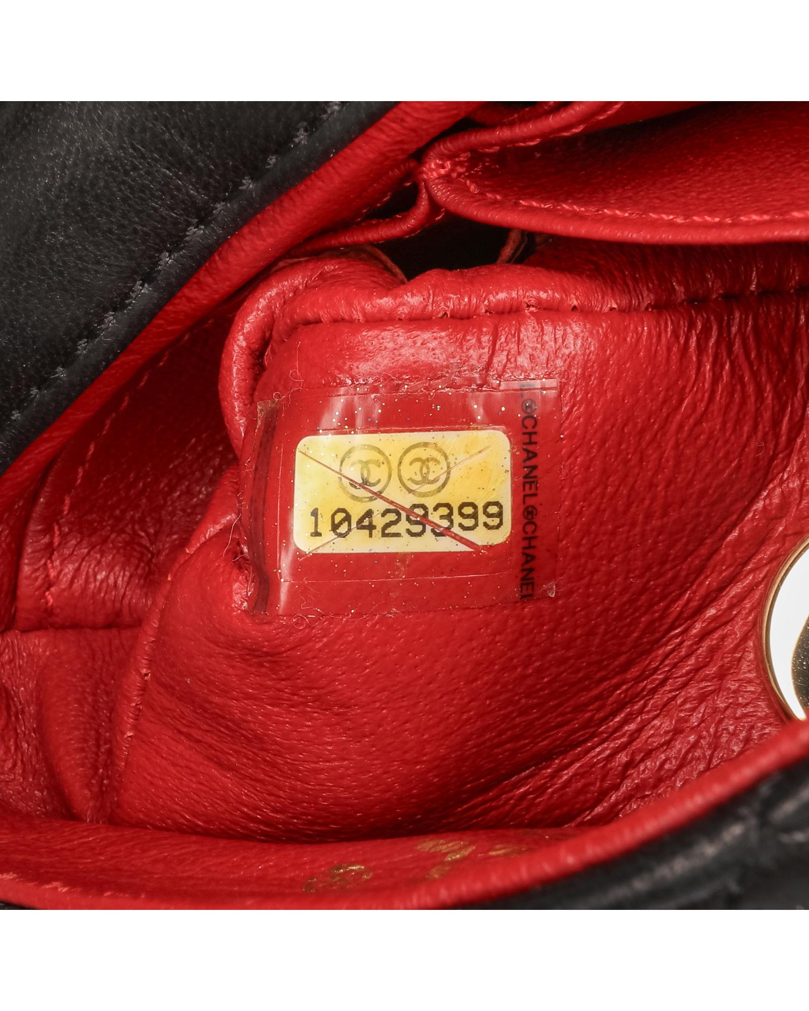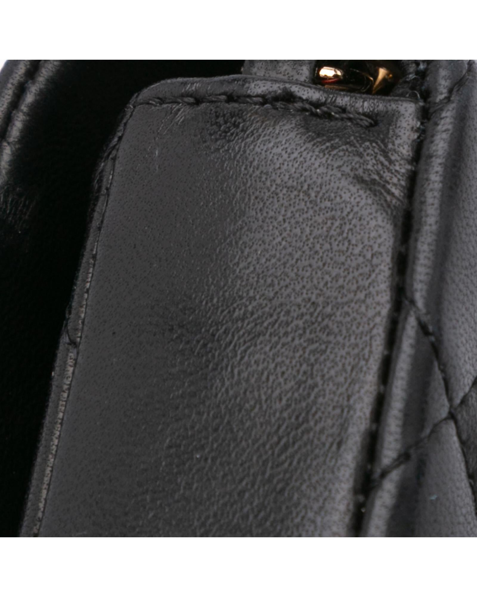 This flap bag features a quilted lambskin leather body a leather-woven chain strap a front flap with CC turn lock closure and interior slip pockets.