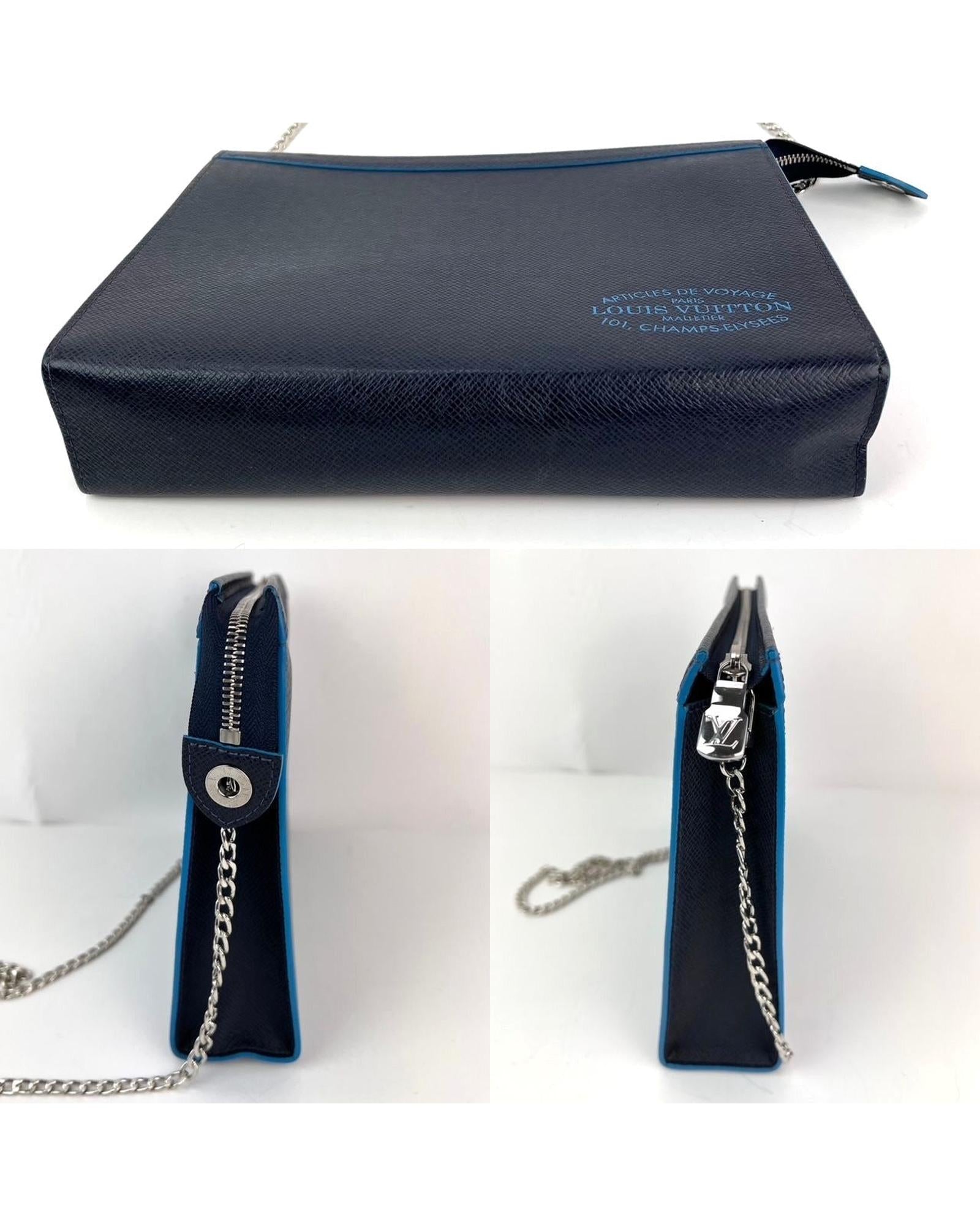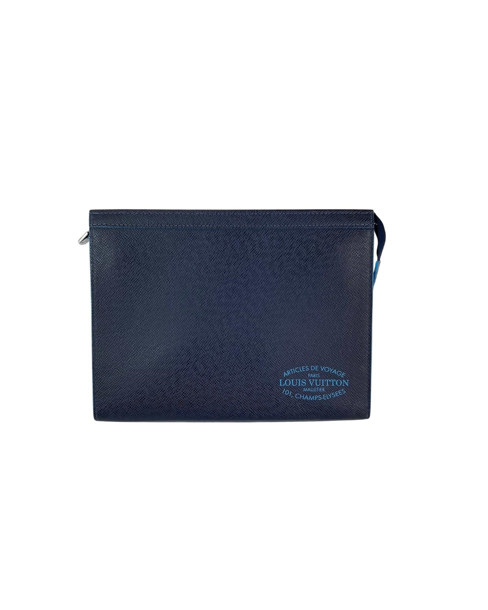 - Louis Vuitton Pochette Voyage MM Taiga Dark Blue Leather Hand Bag Limited Edition