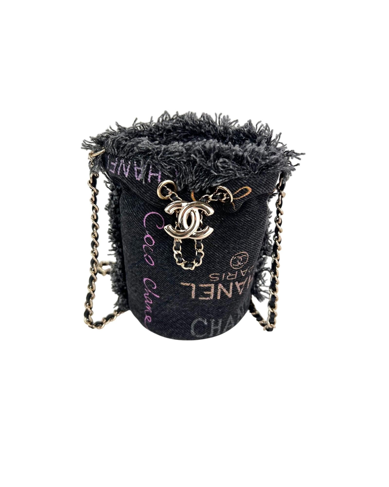 - Chanel Denim Quilted Mood Mini Bucket With Chain Black