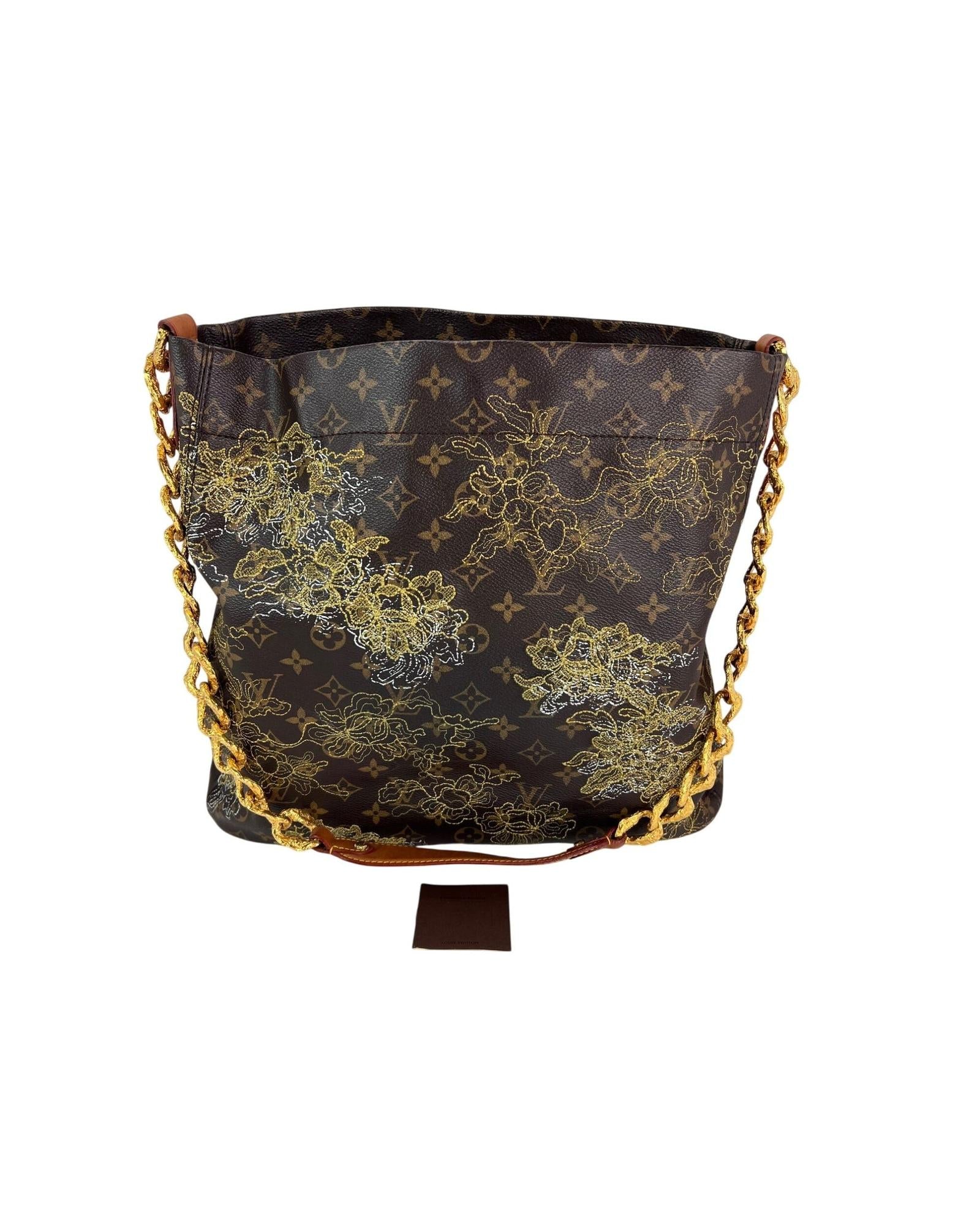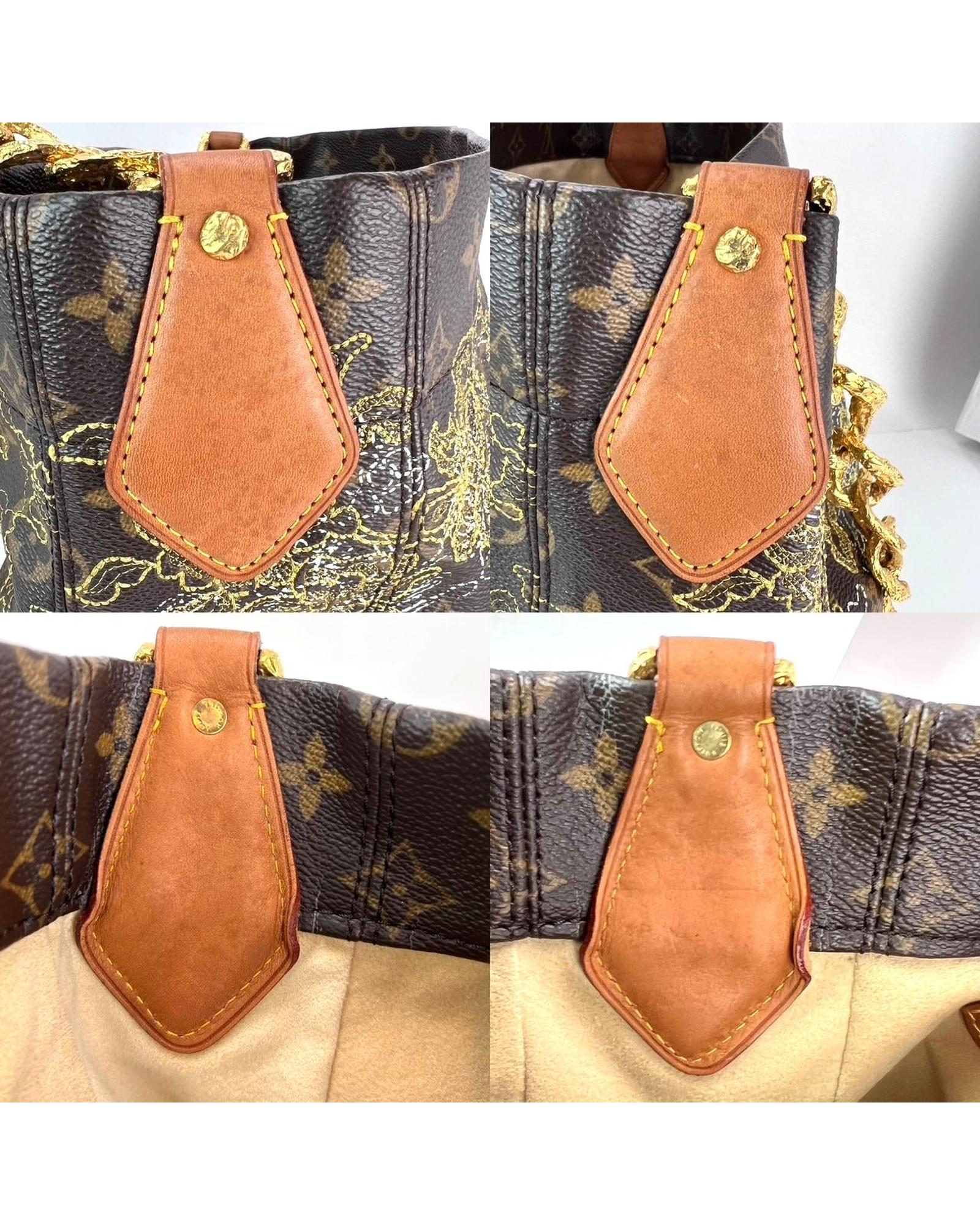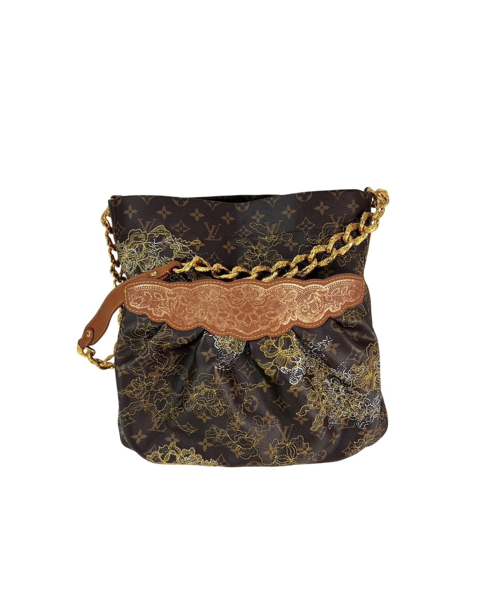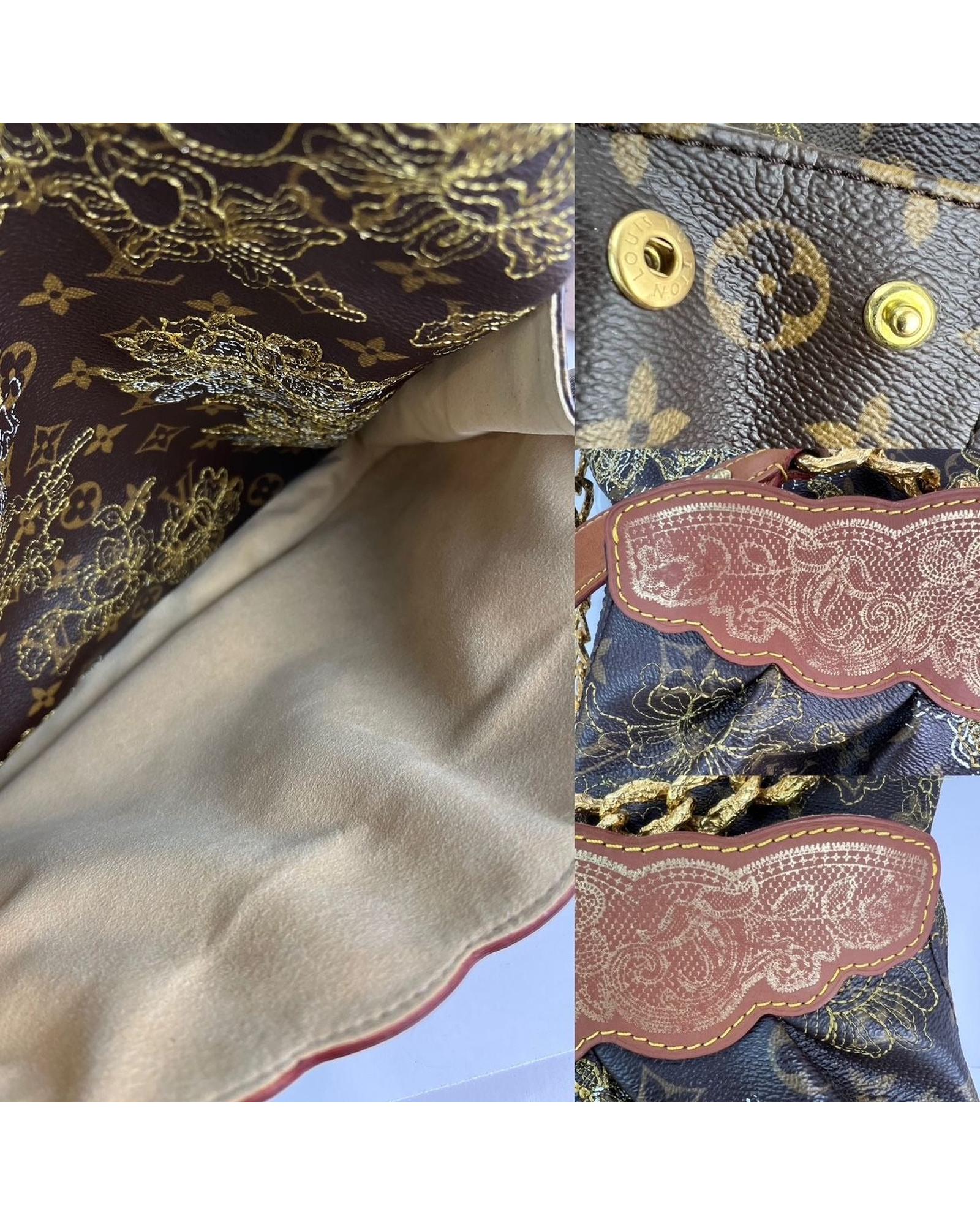 - Material: Monogram canvas fine embroidered gold lace pattern