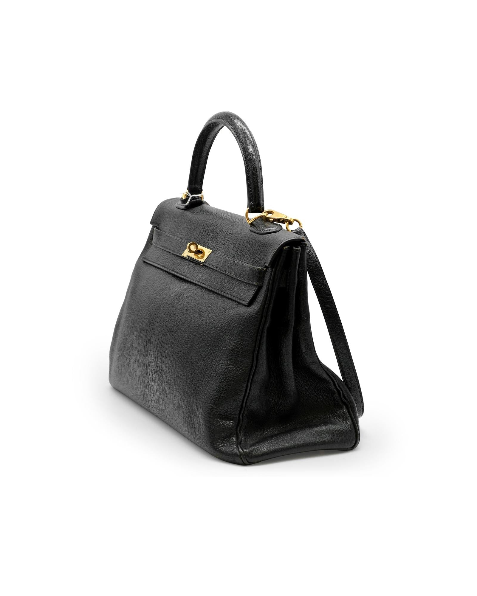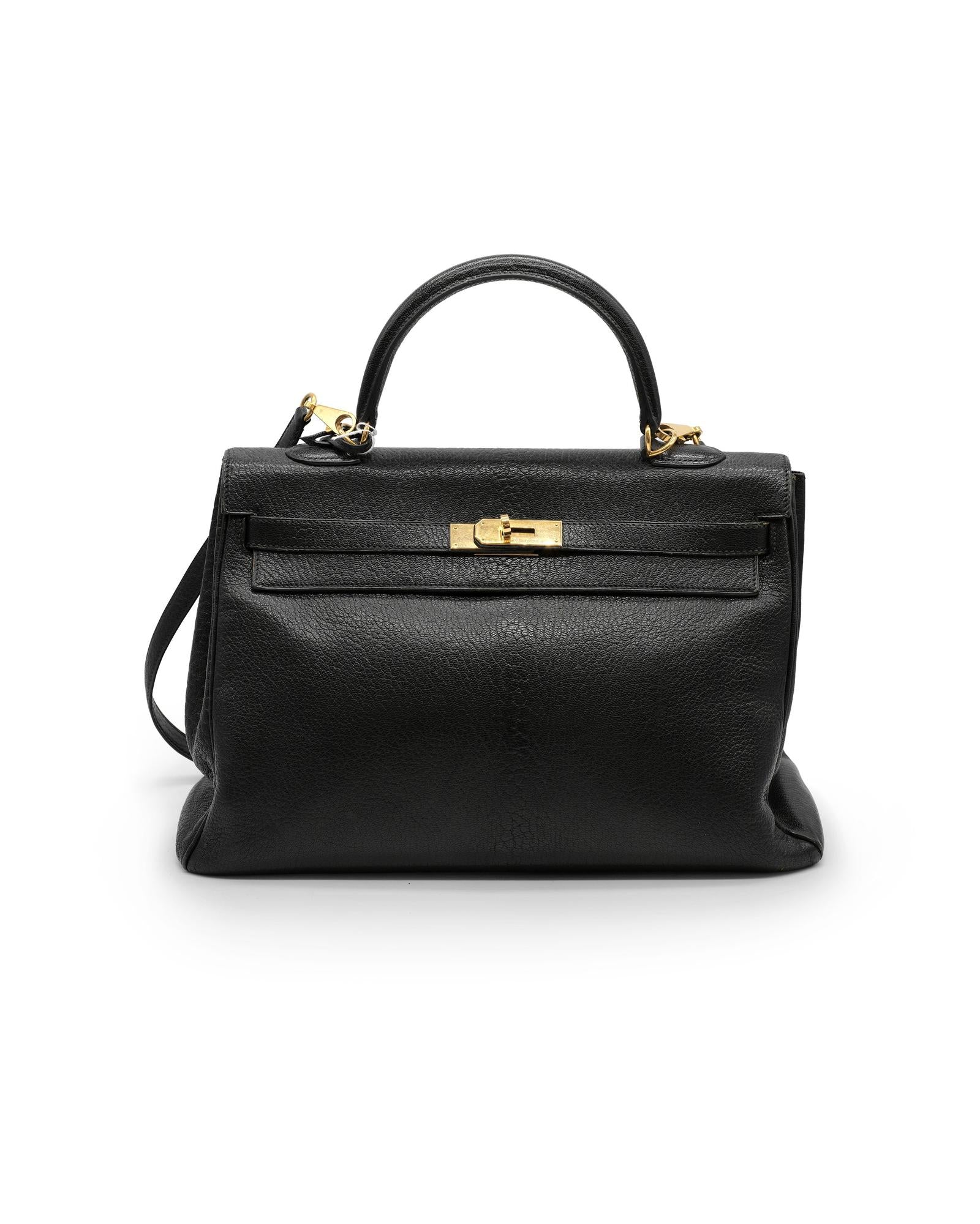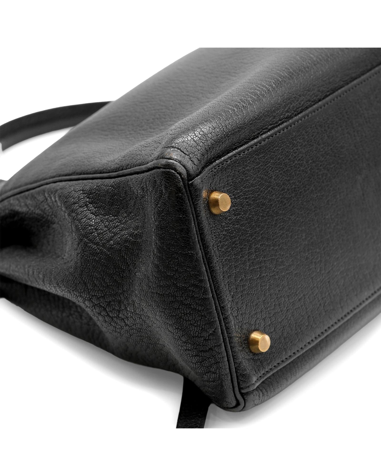 Elegant Leather Bag with Gold Hardware and Multiple Pockets