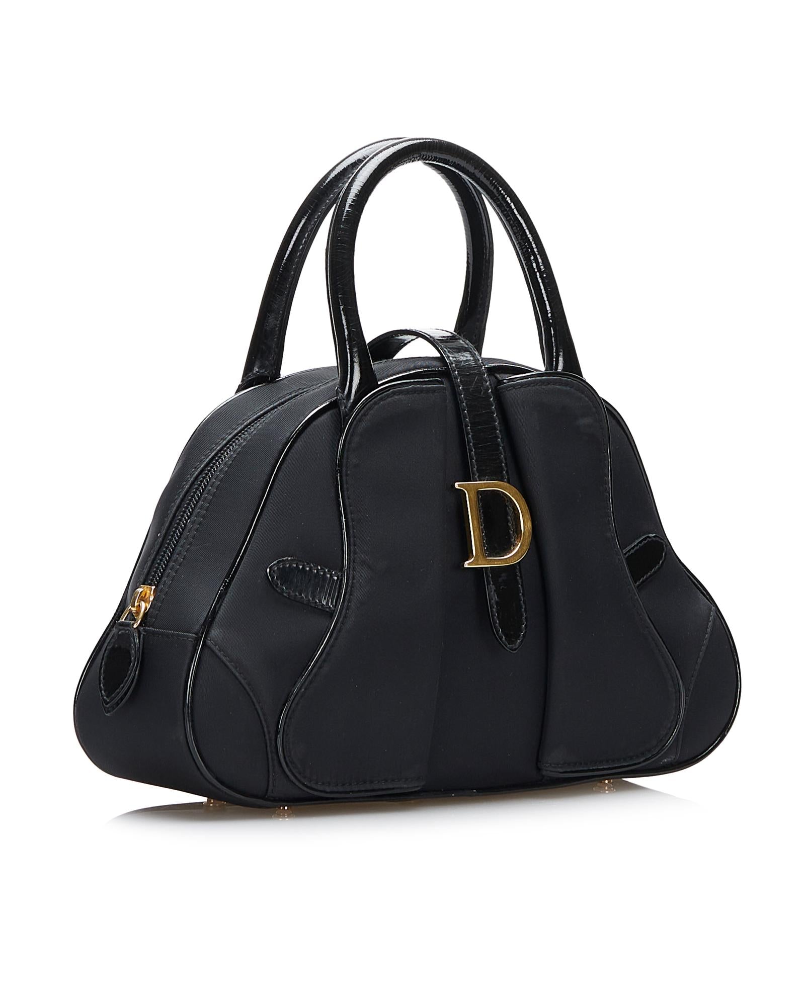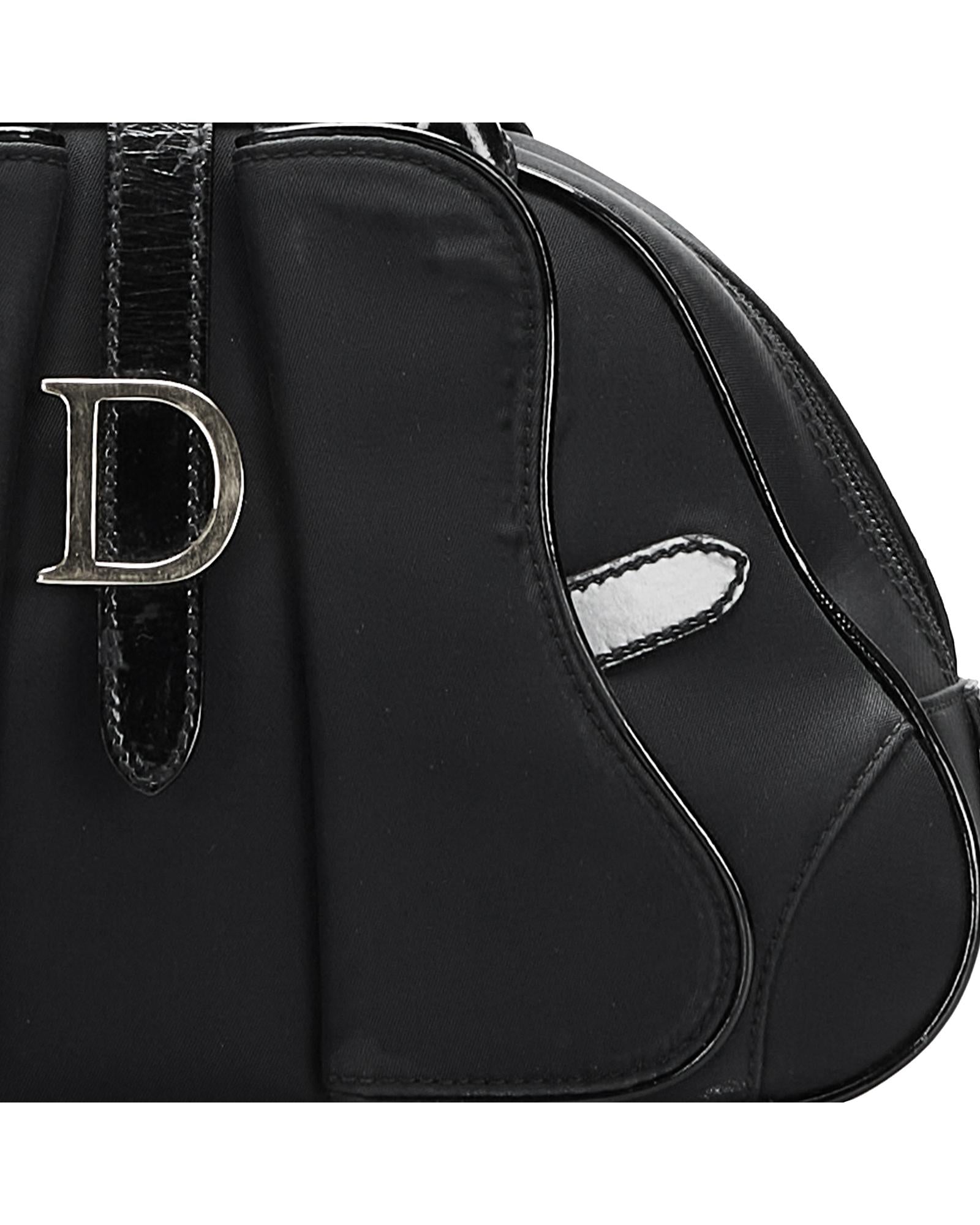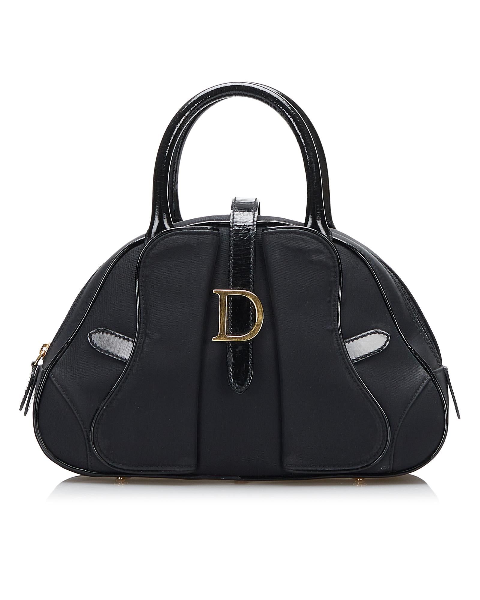 The Double Saddle Dome features a nylon body with leather trim rolled leather handles a top zip closure exterior flap saddle pockets an exterior back pocket and an interior zip pocket.Brand: Dior