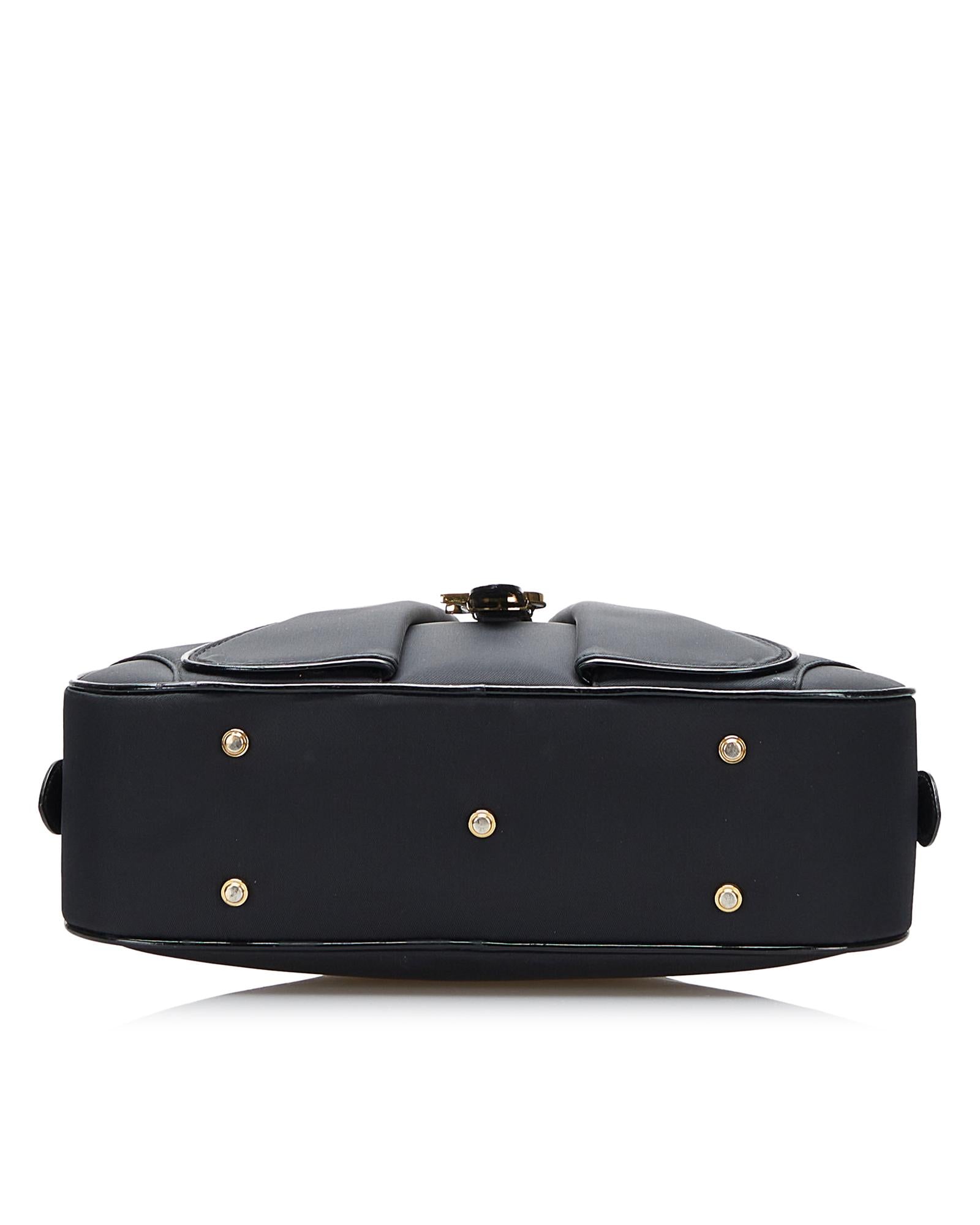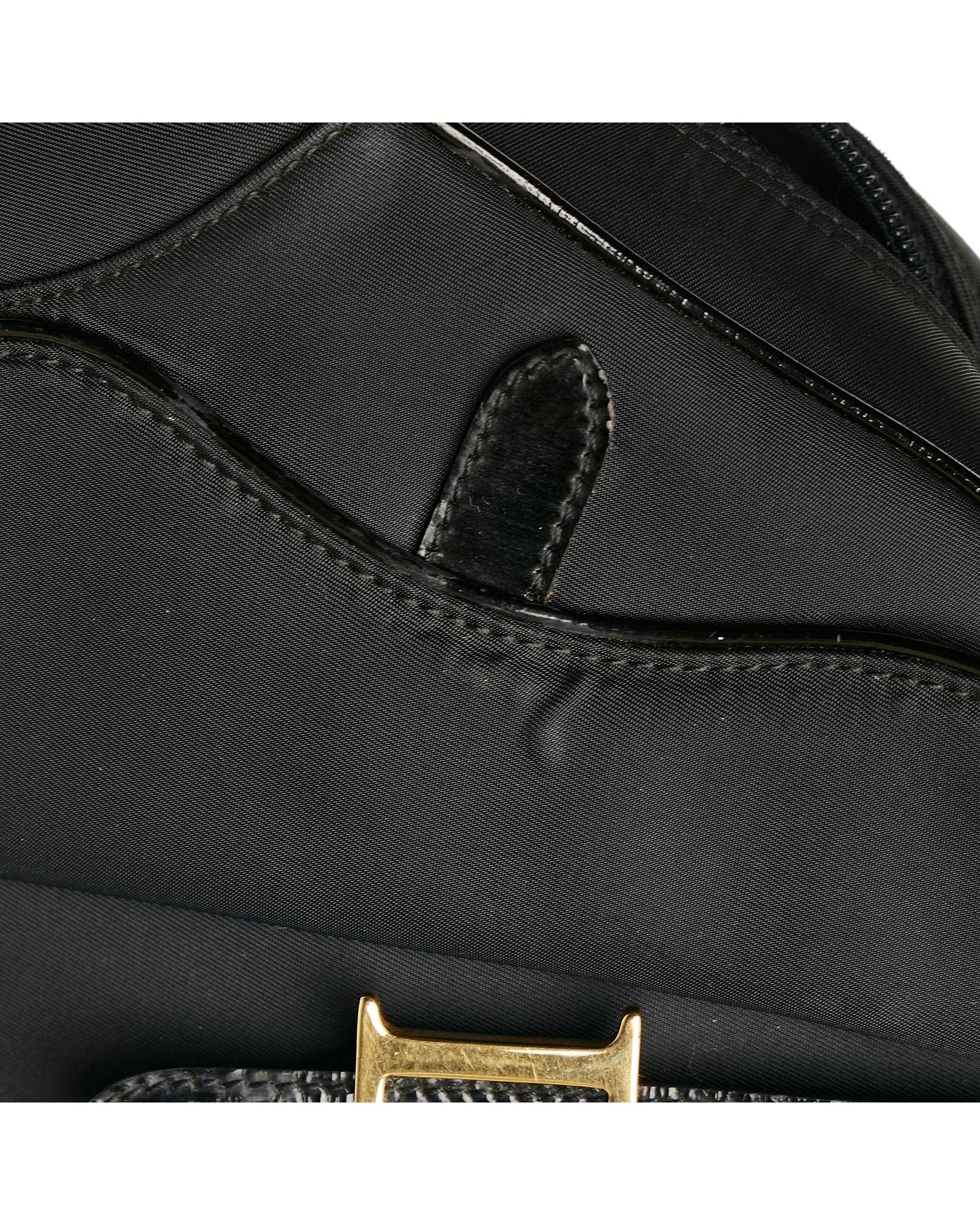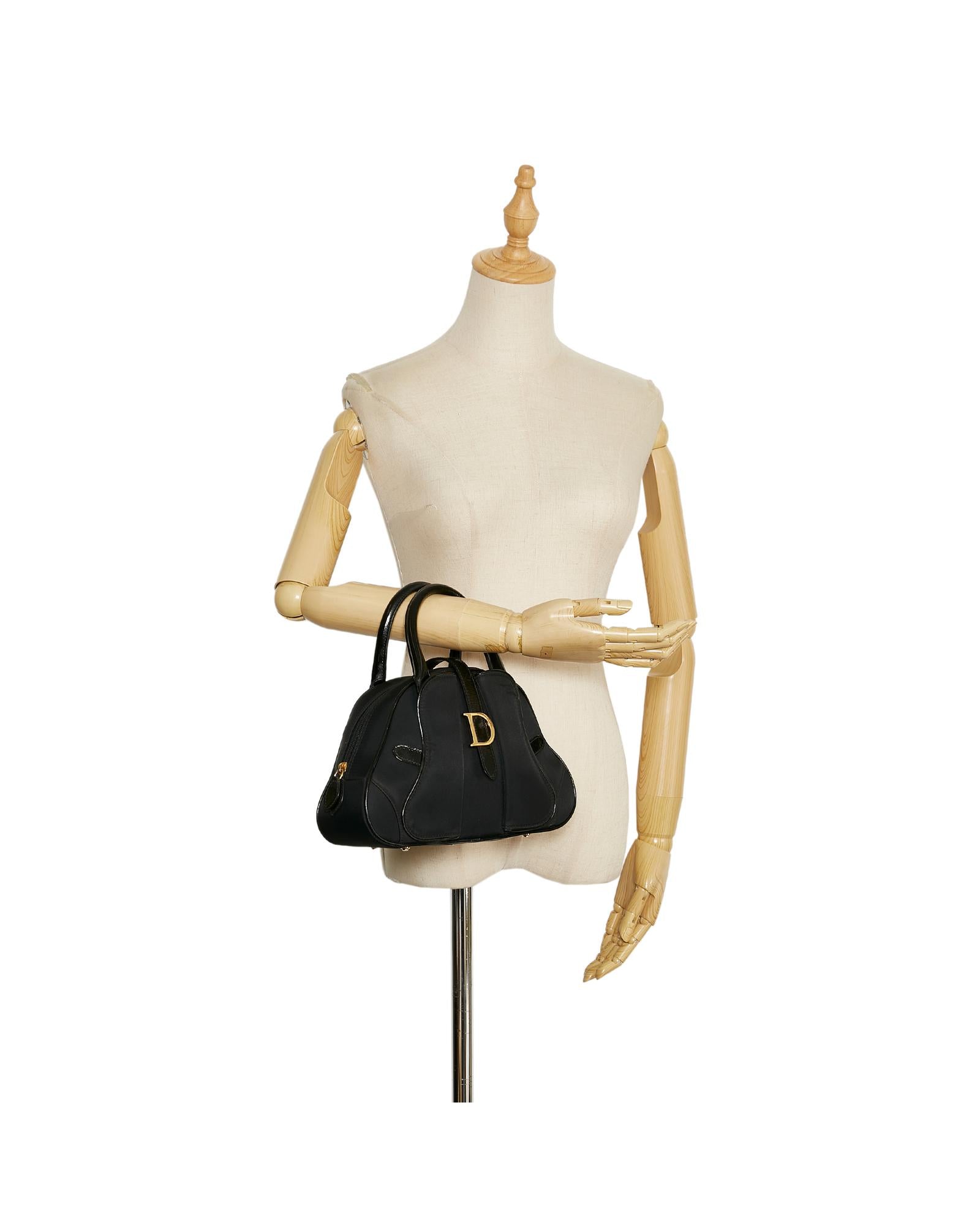 The Double Saddle Dome features a nylon body with leather trim rolled leather handles a top zip closure exterior flap saddle pockets an exterior back pocket and an interior zip pocket.Brand: Dior