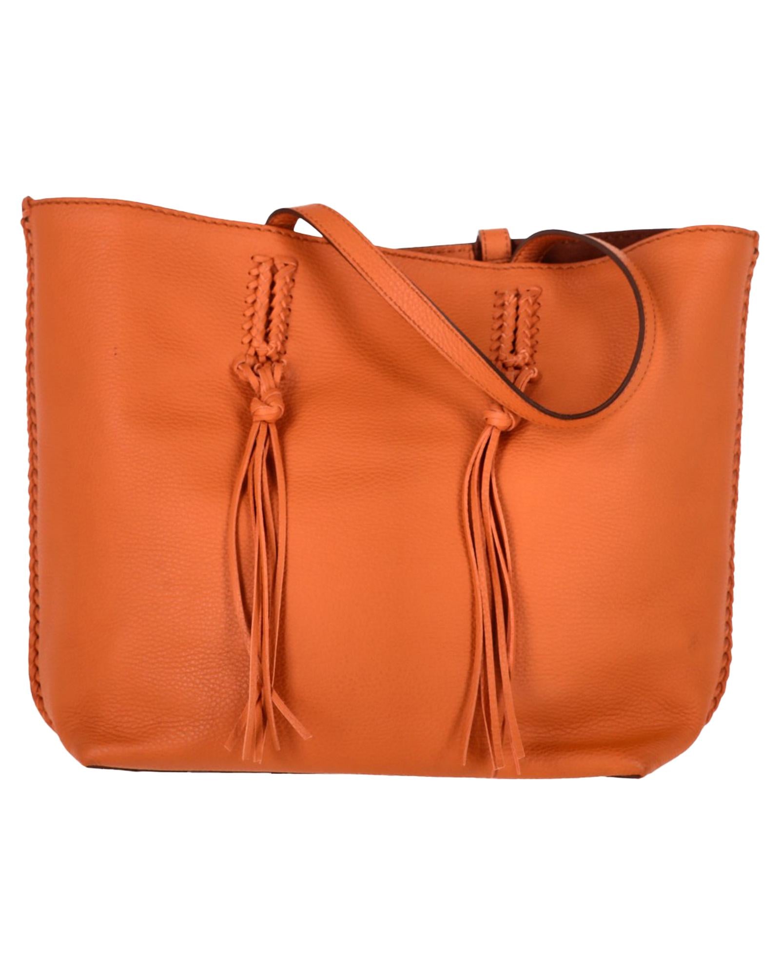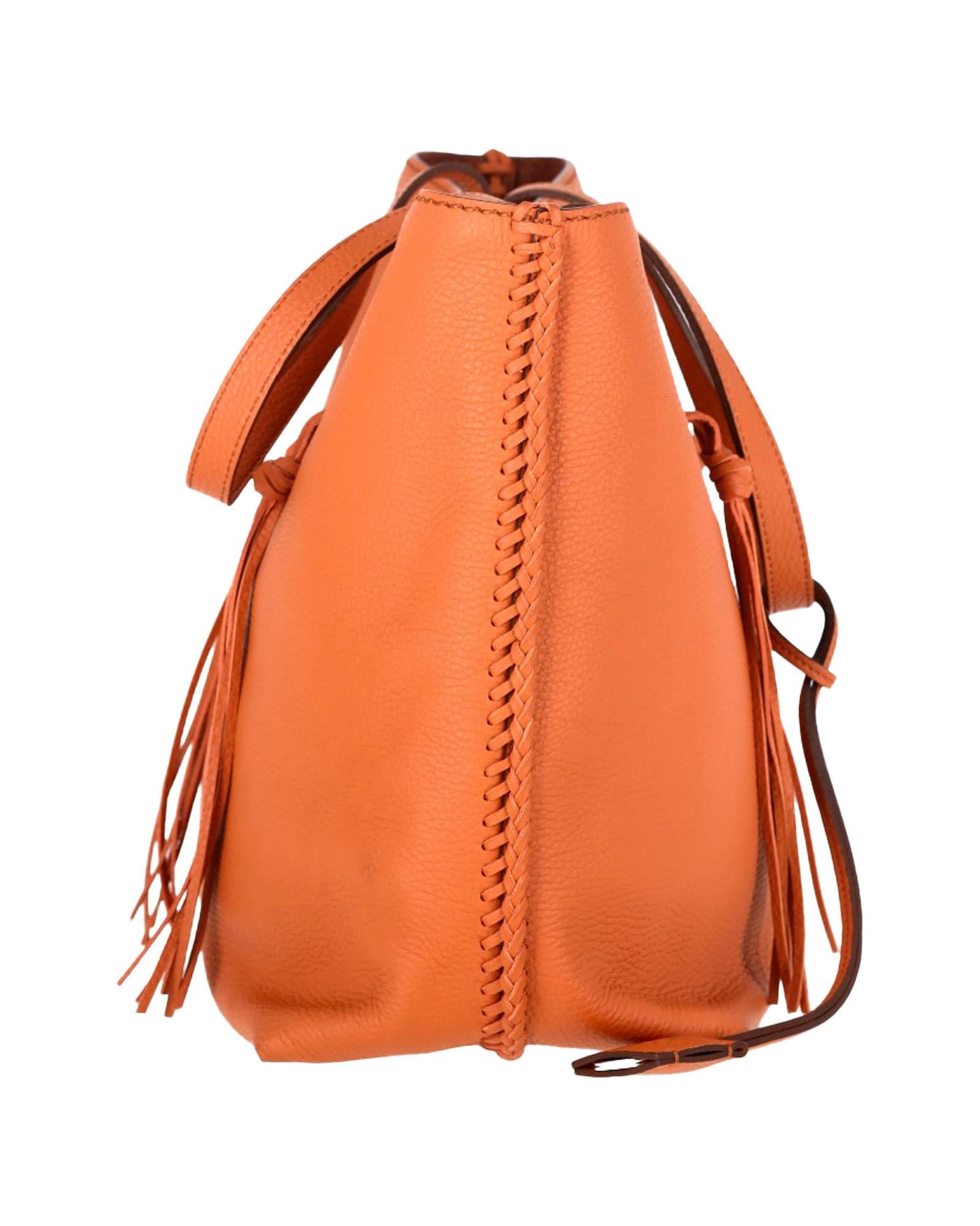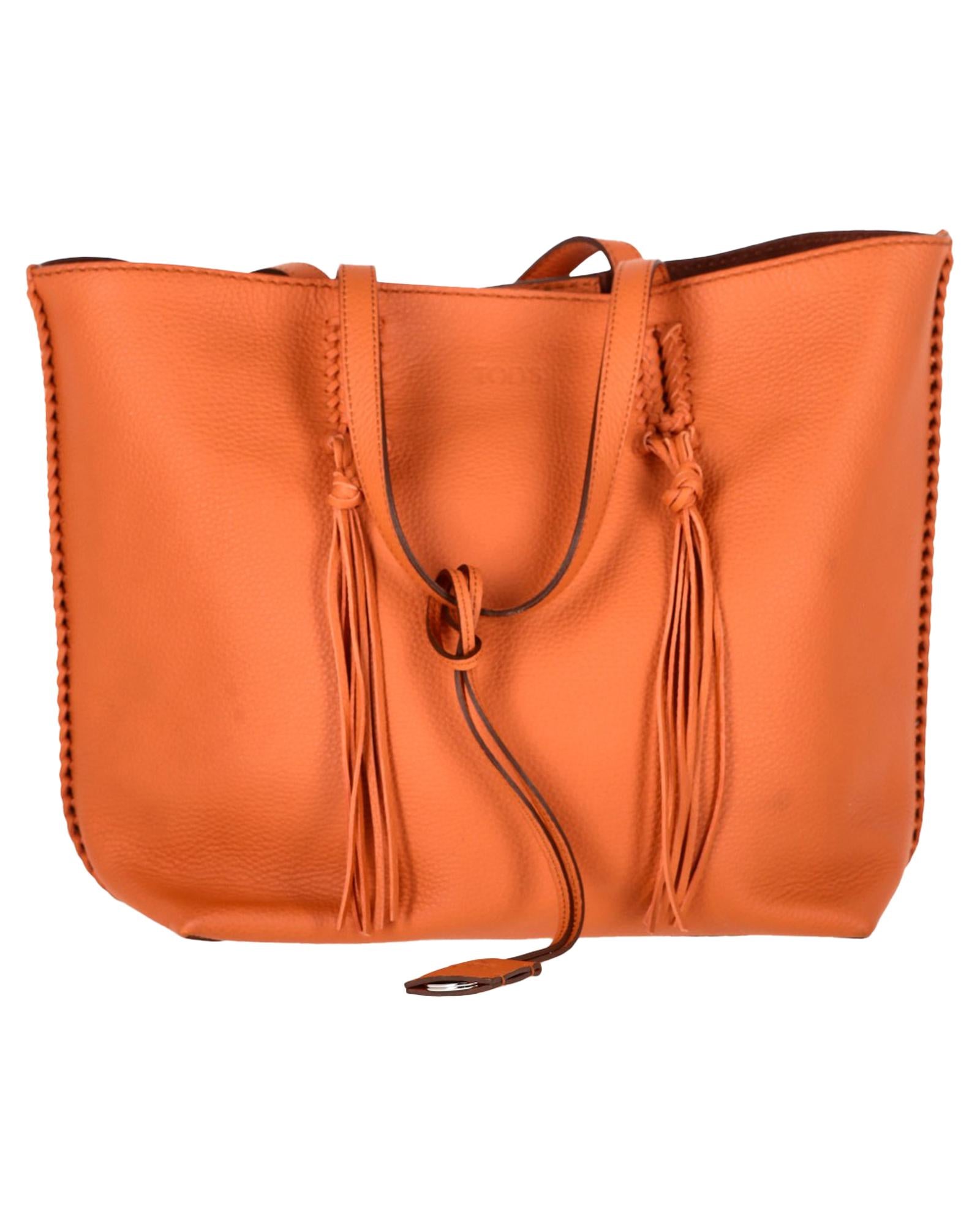 • Tods Gipsy Tasseled Tote Bag in Orange Leather
