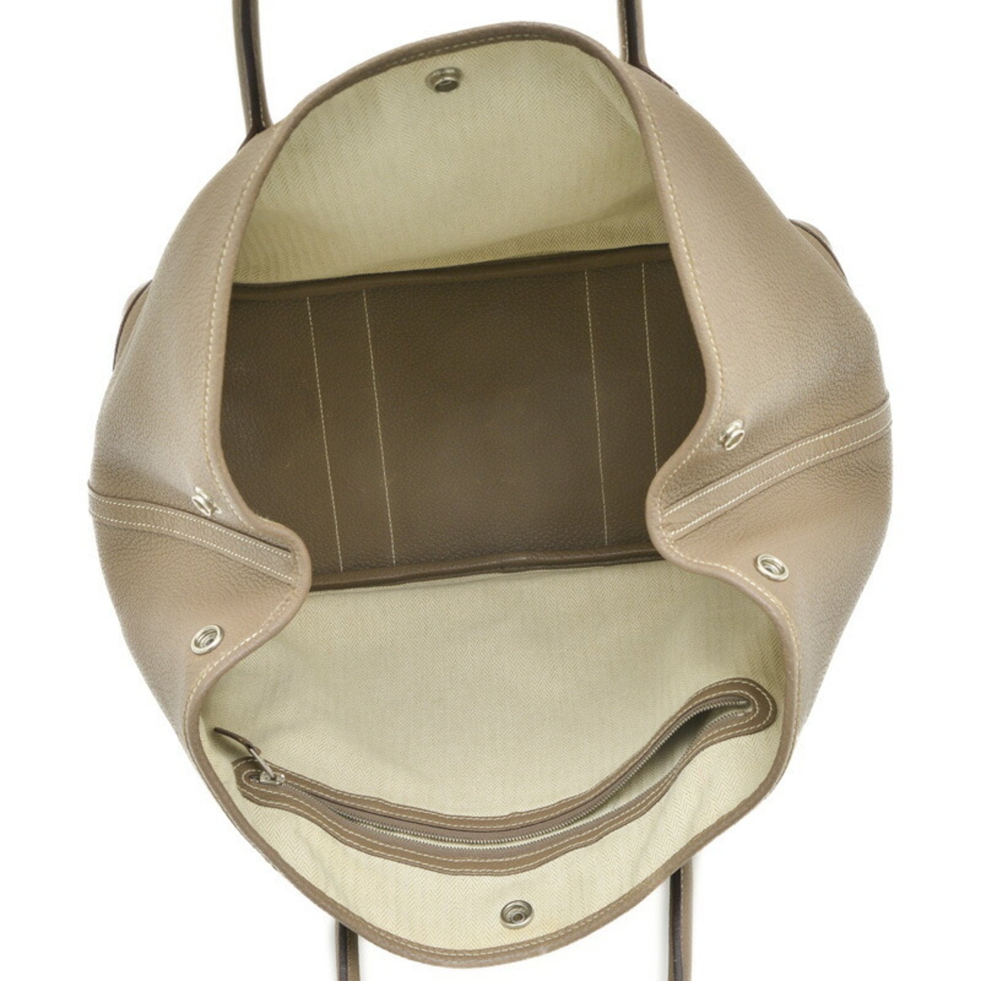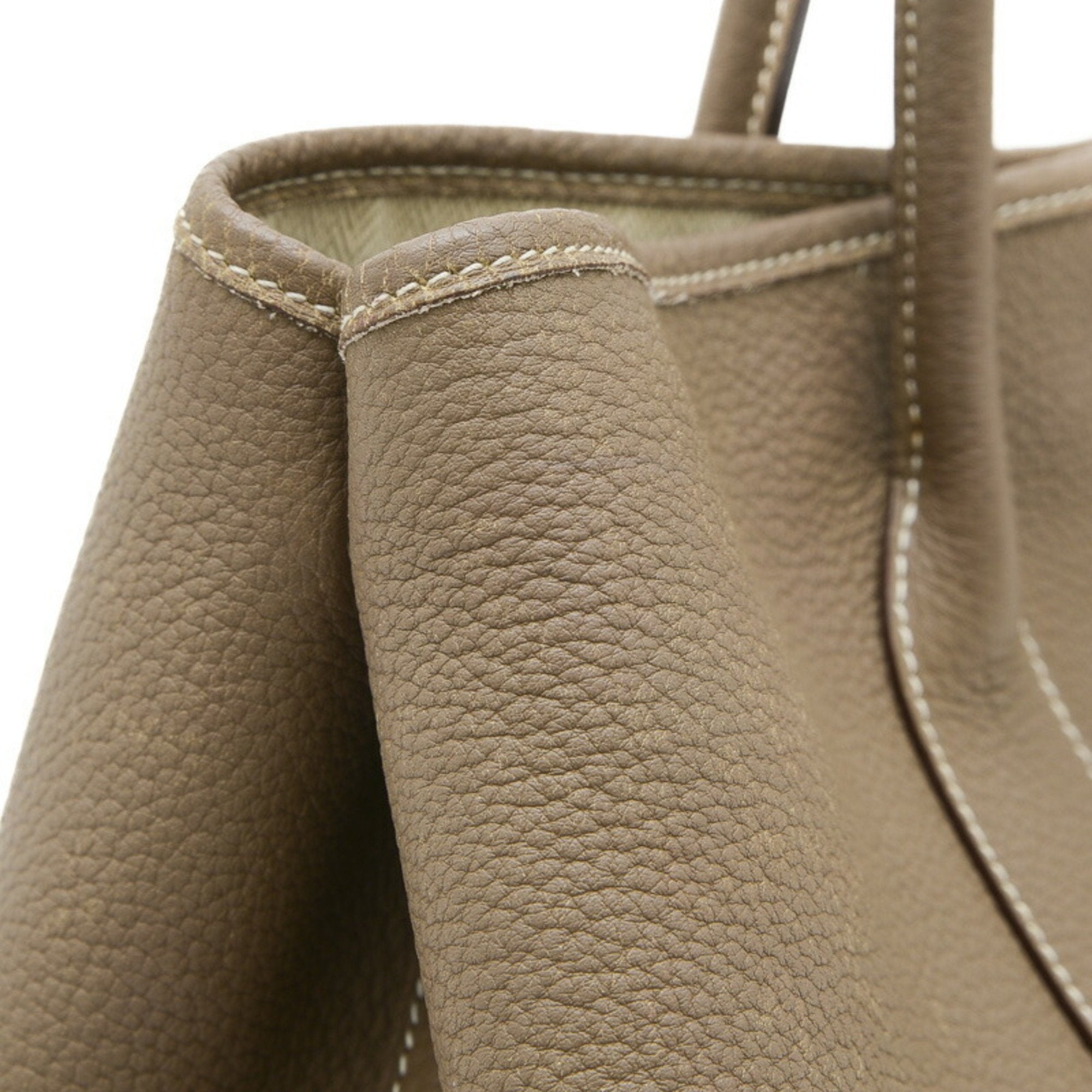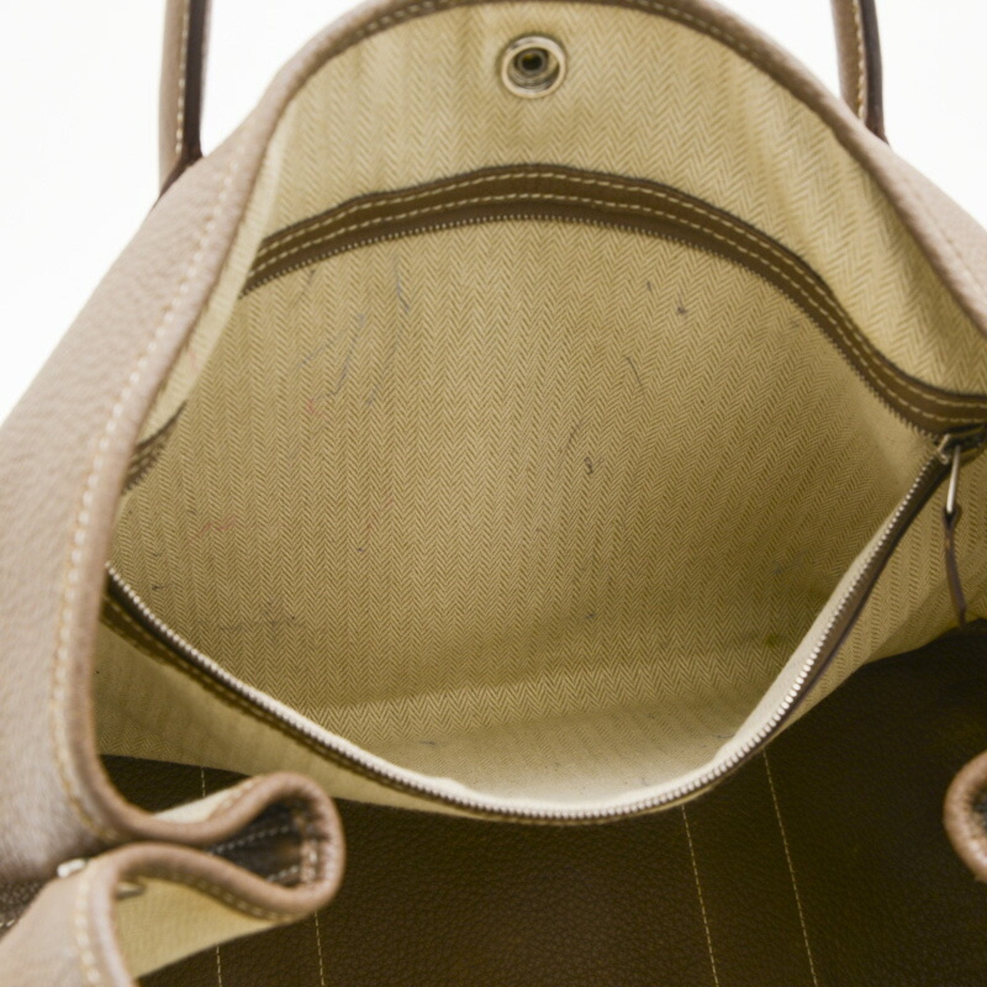 Brand: Hermes Model: Garden Party Color: Brown Material: Leather Inclusions: Dimensions: 26cm x 36cm x 18cm / Serial number: Square M Country of origin: France Condition: B - good condition. Outside condition : Misshapen Inside condition : Pen mark Handle condition : slight scratches Corner condition : minor scratches Metal fittings condition : good