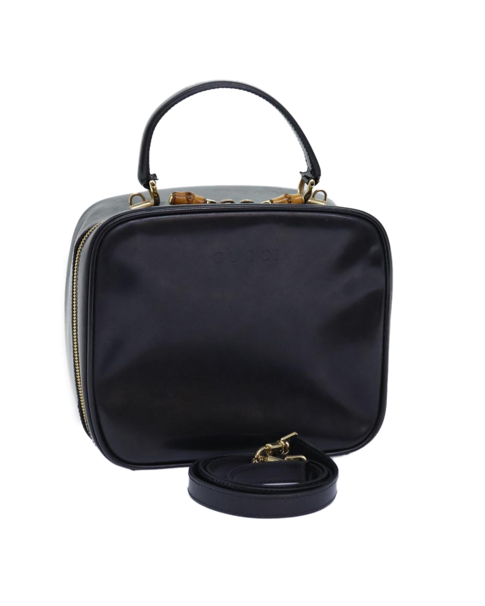 Black Patent Leather 2-Way Hand Bag with Shoulder Strap